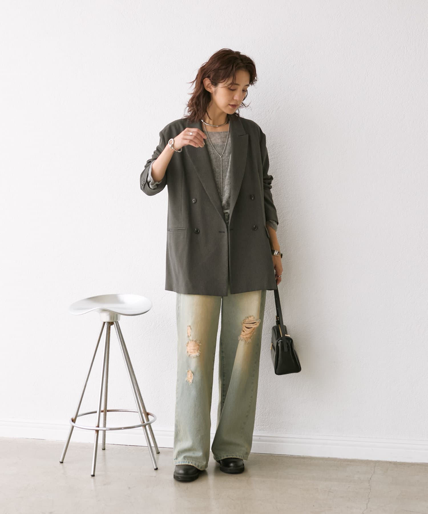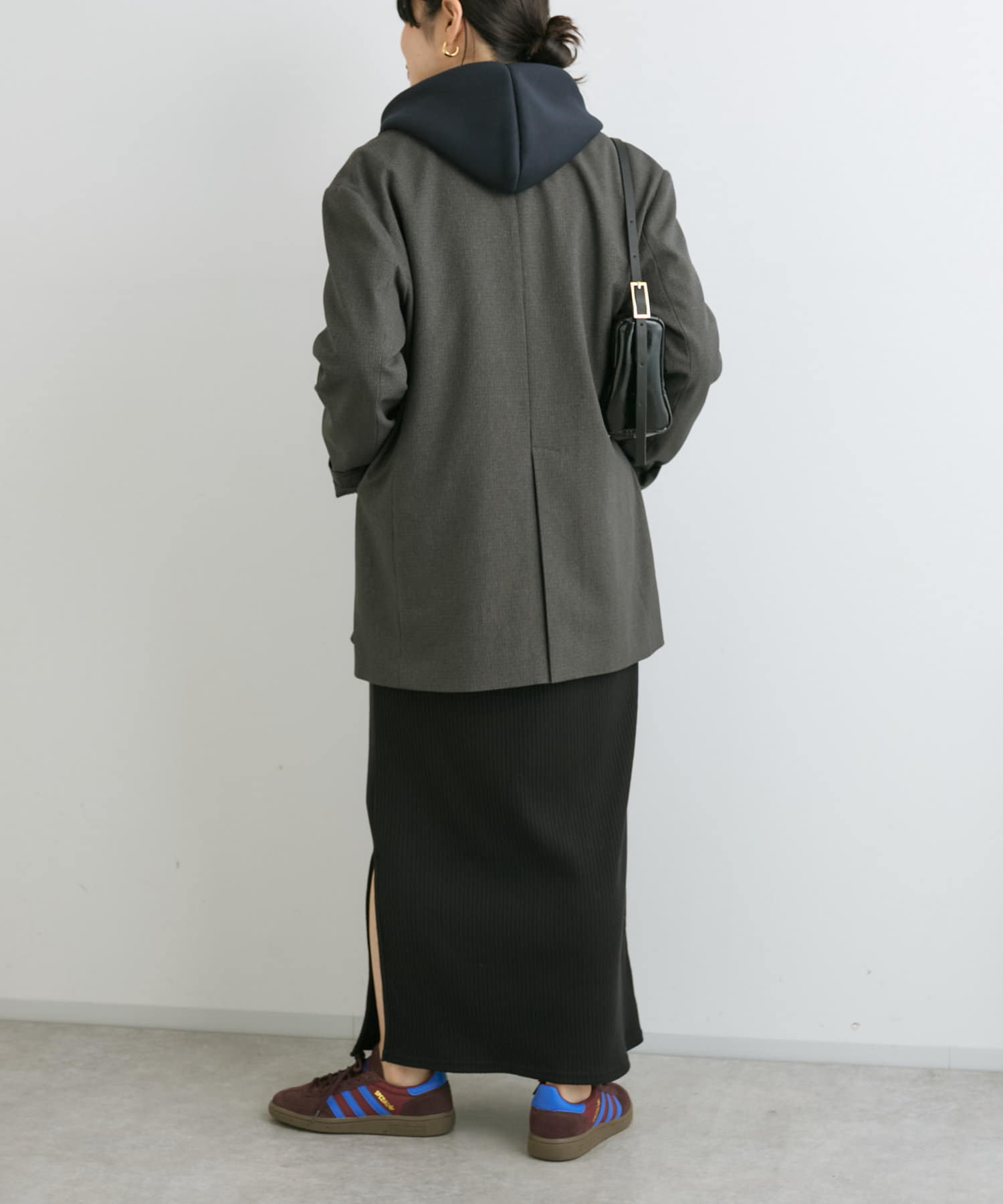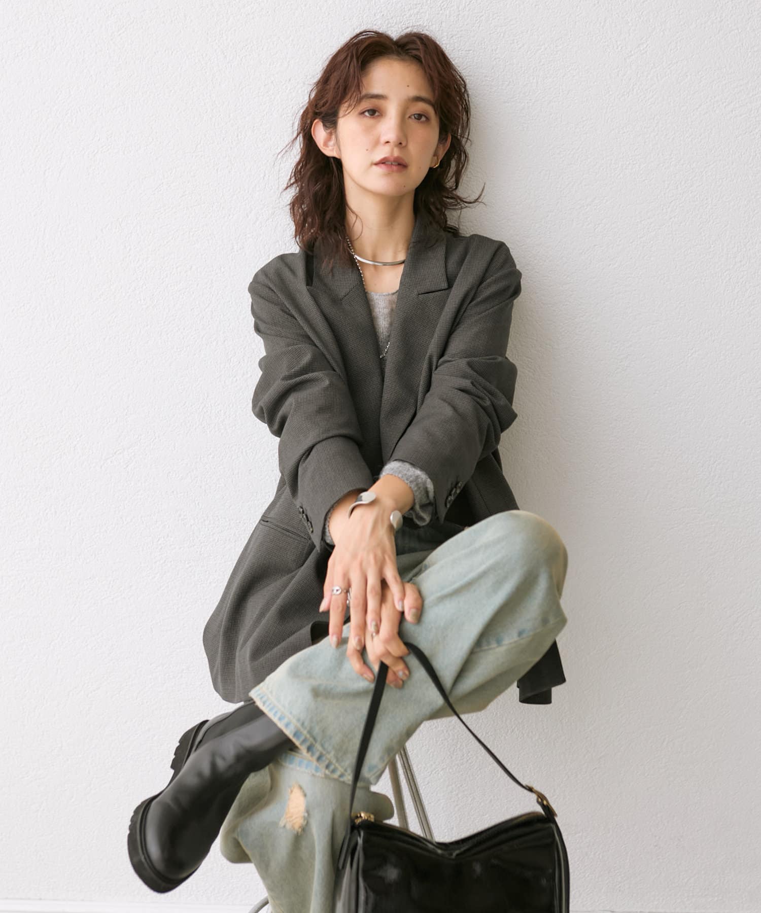 オーバーサイズなインナーや厚みのあるニットの上に重ねる事でシーズンの移り変わりにも対応しやすいアイテムです。