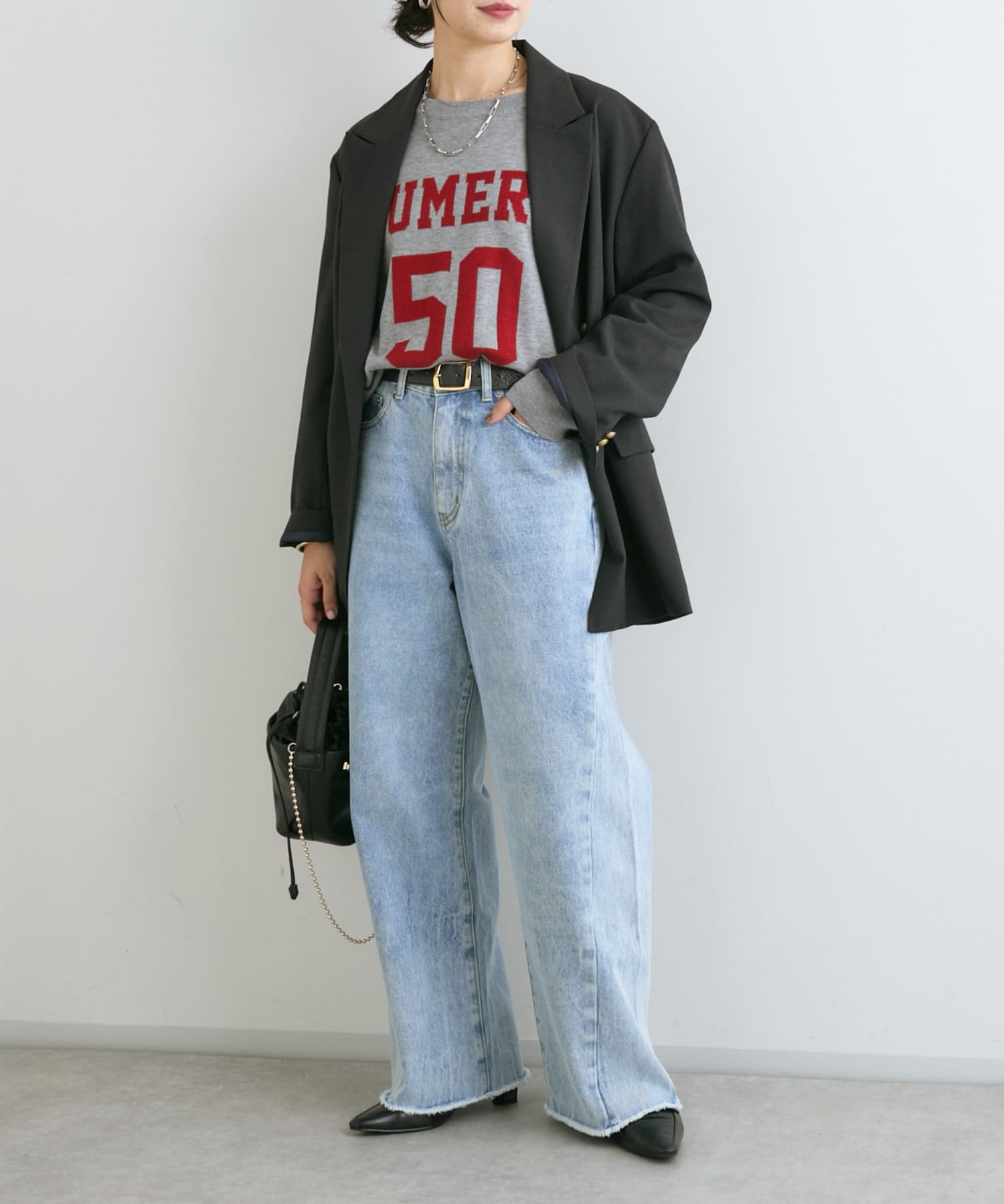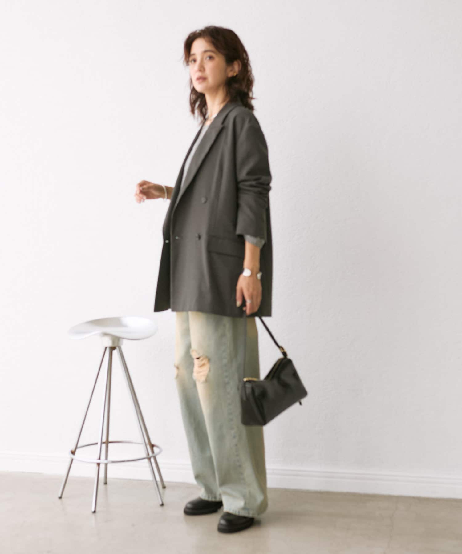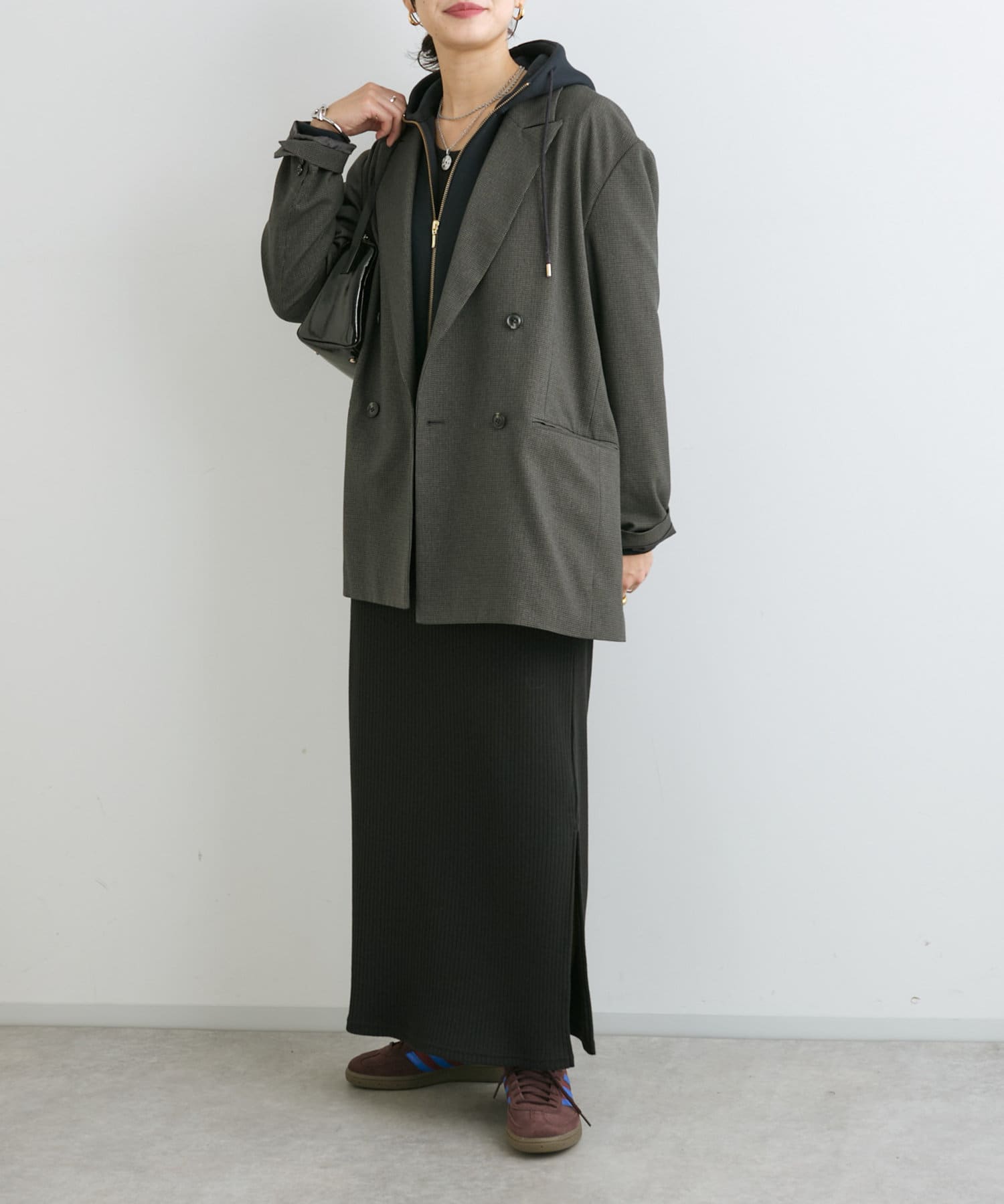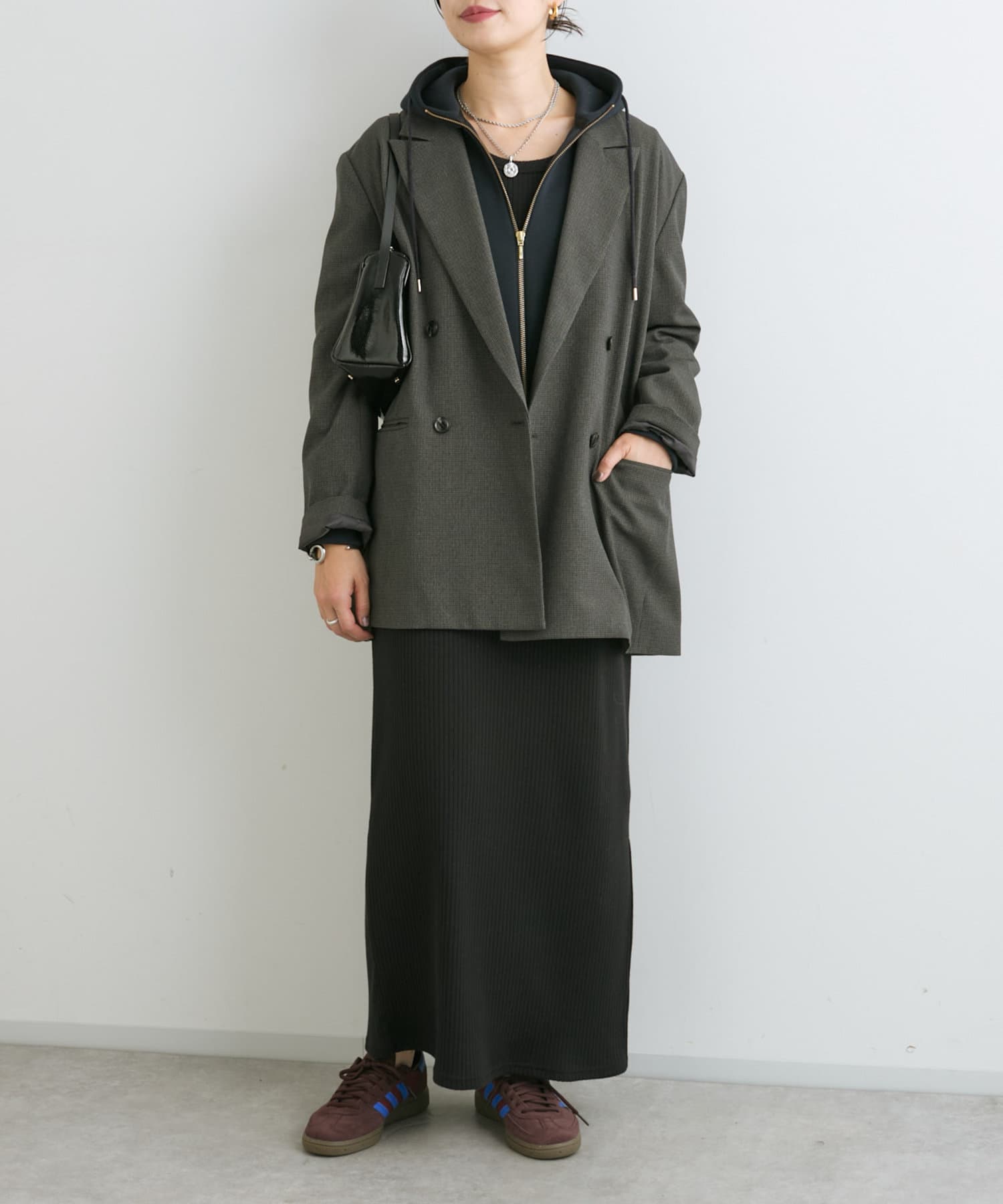 オーバーサイズなインナーや厚みのあるニットの上に重ねる事でシーズンの移り変わりにも対応しやすいアイテムです。