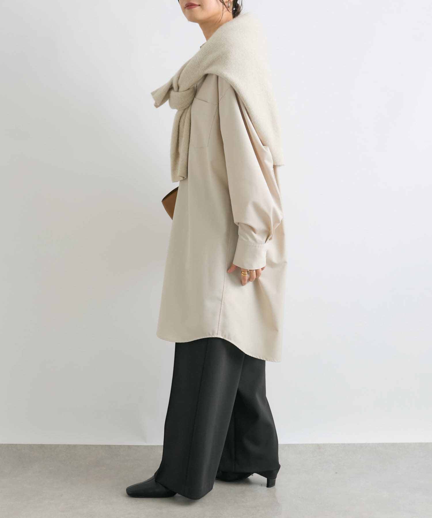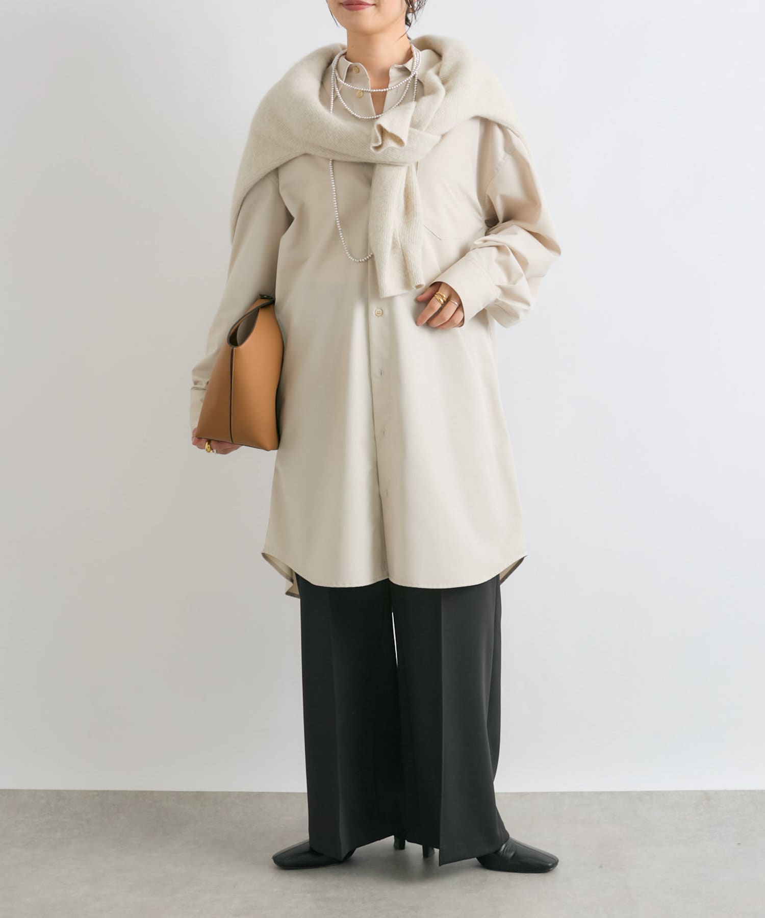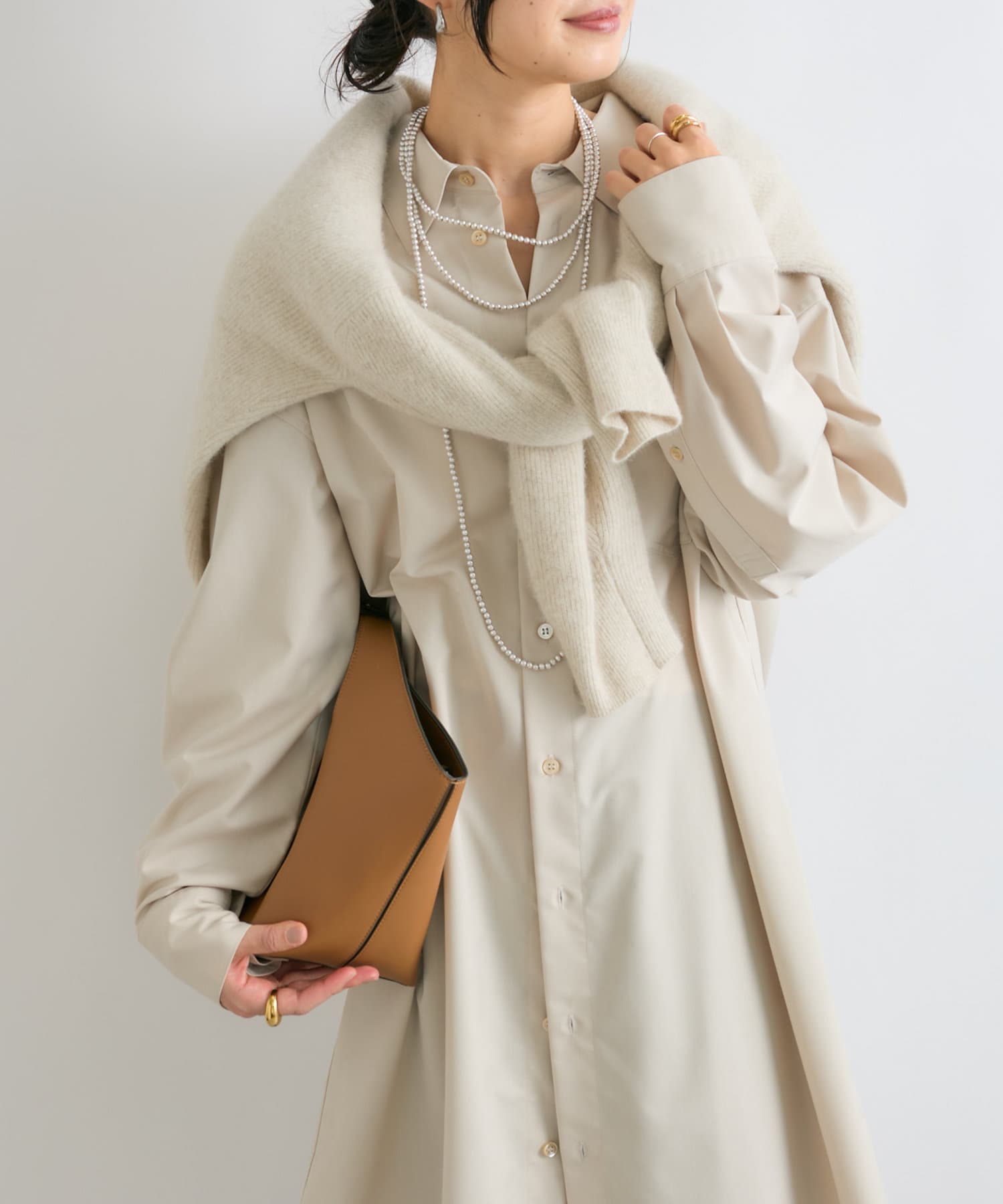 デコルテが見えるインナーに合わせて頂くと抜け感がでて素敵です。