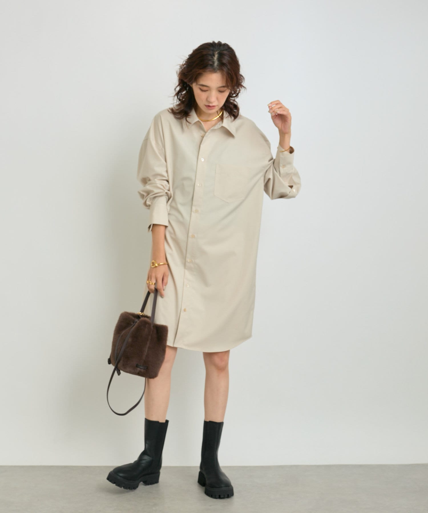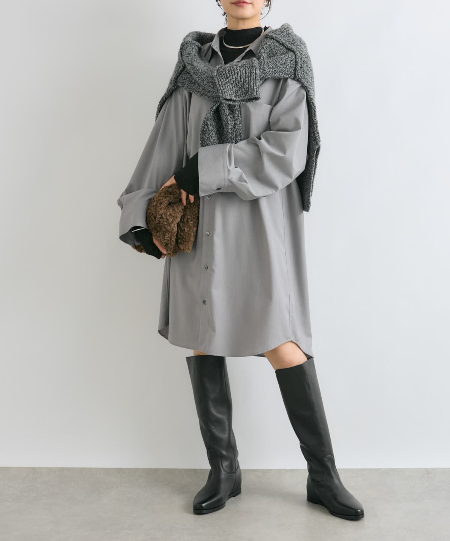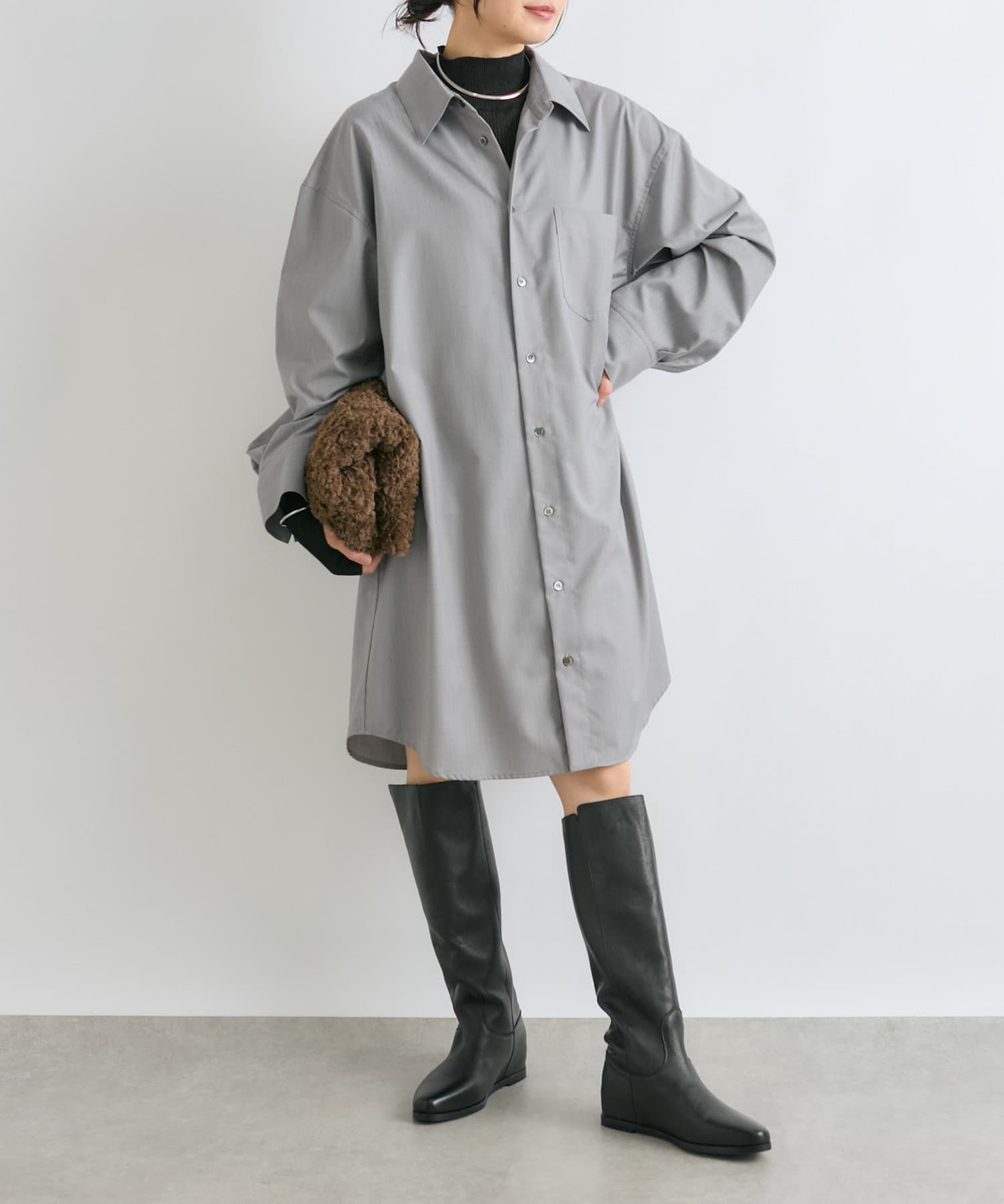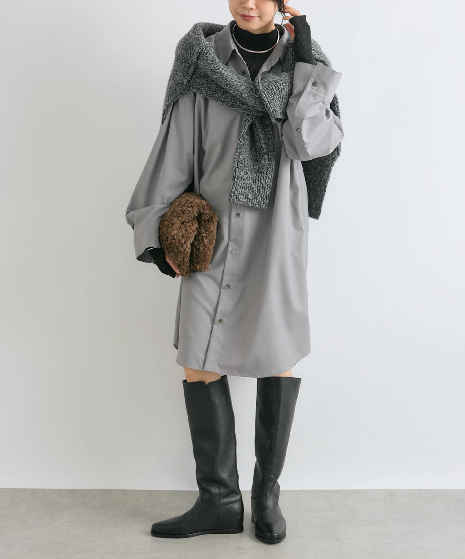 羽織としても着れるシャツワンピース