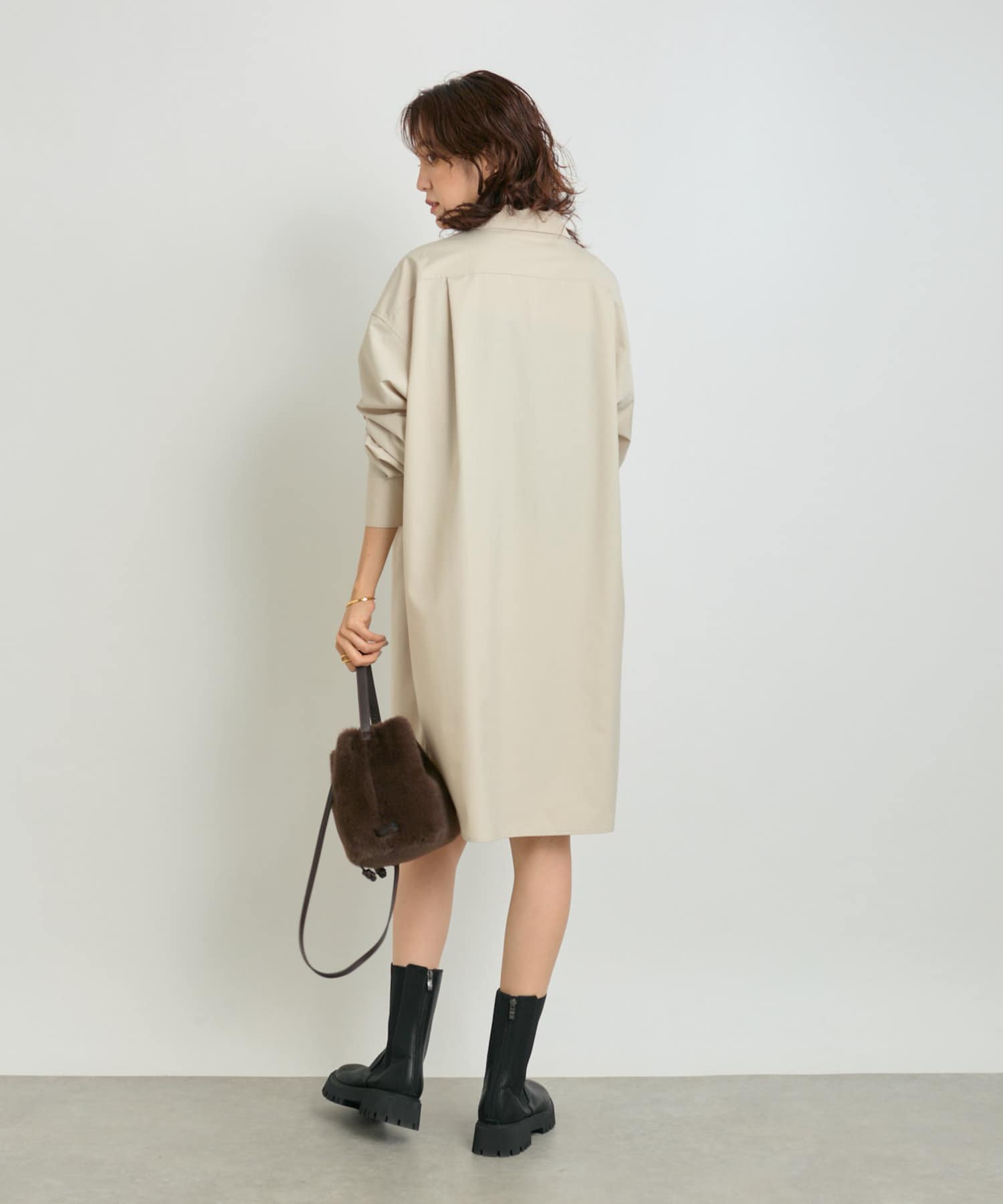 梳毛調に見える素材を使用したシャツワンピースになります。