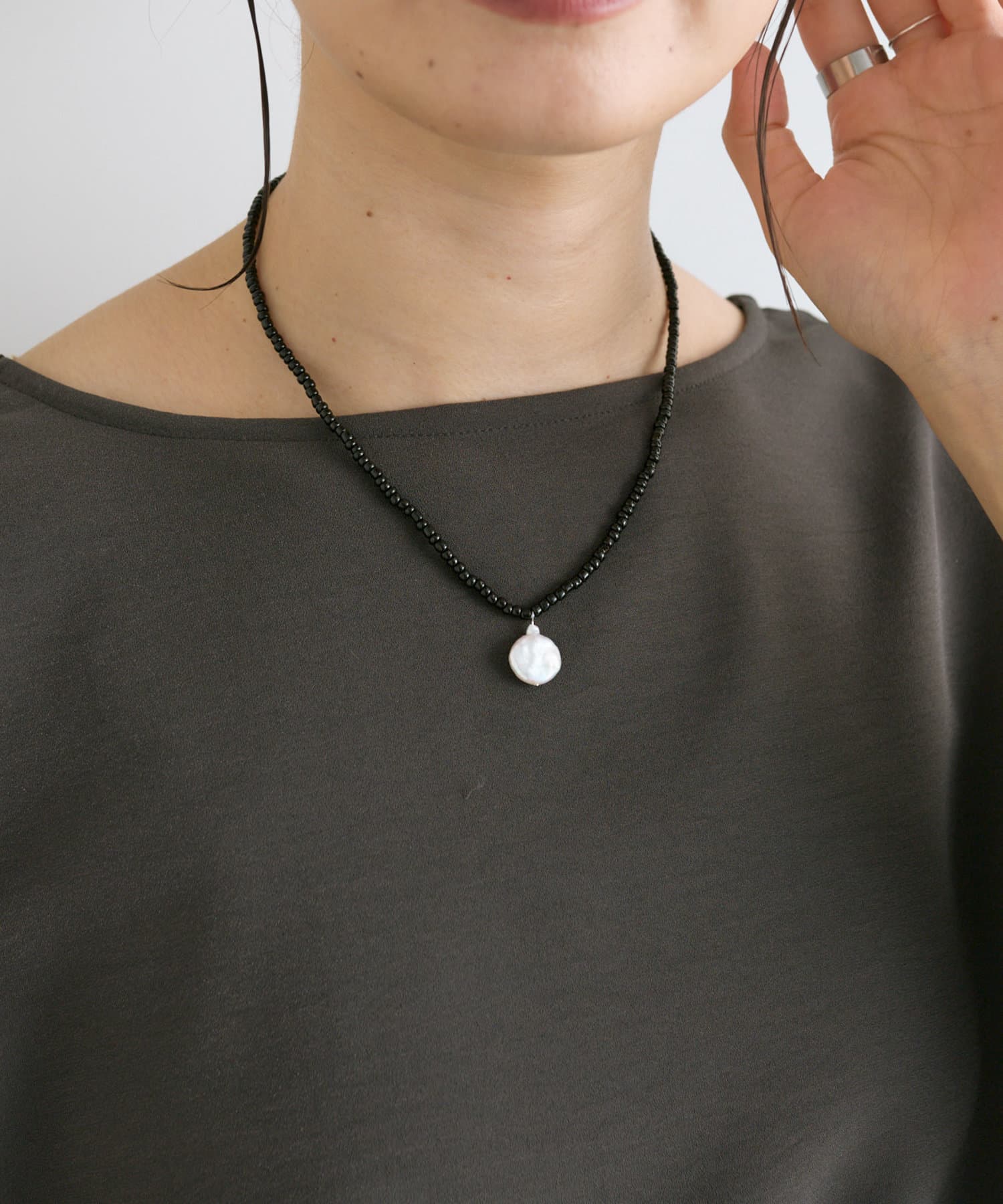ブラックビーズと淡水パールのコントラストがポイントのネックレス。