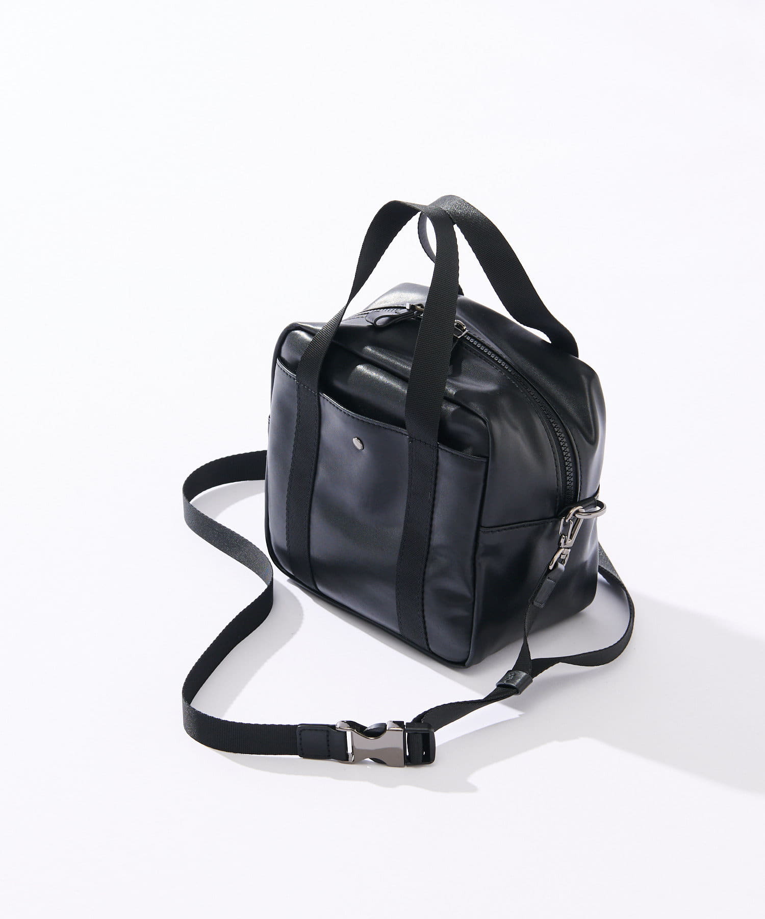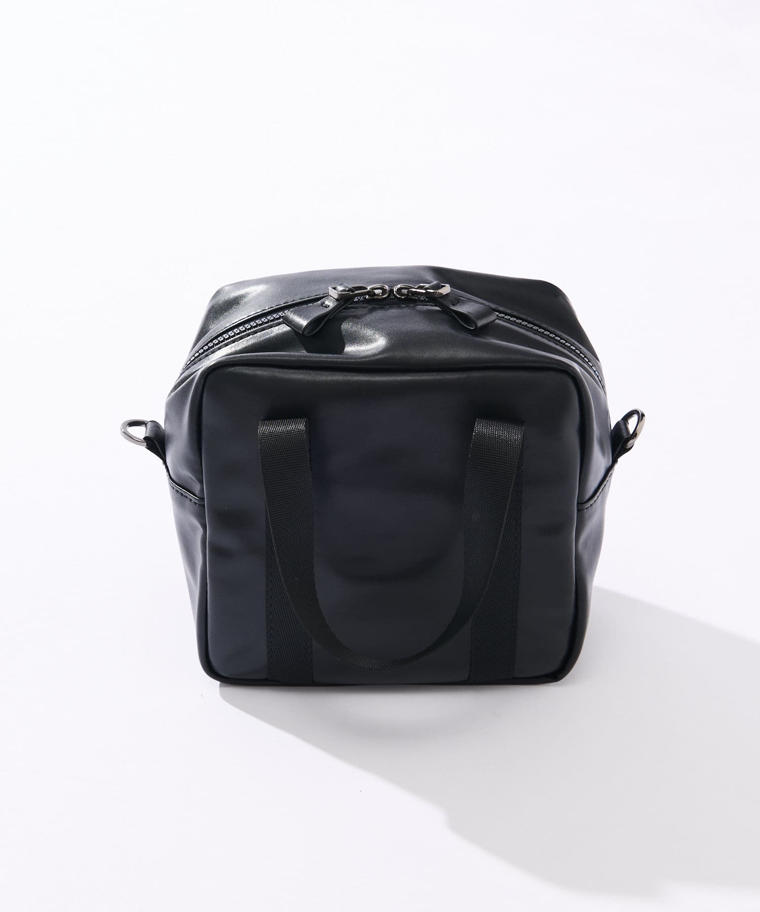 正方形のコロンとしたフォルムがポイントのミニバッグ。
