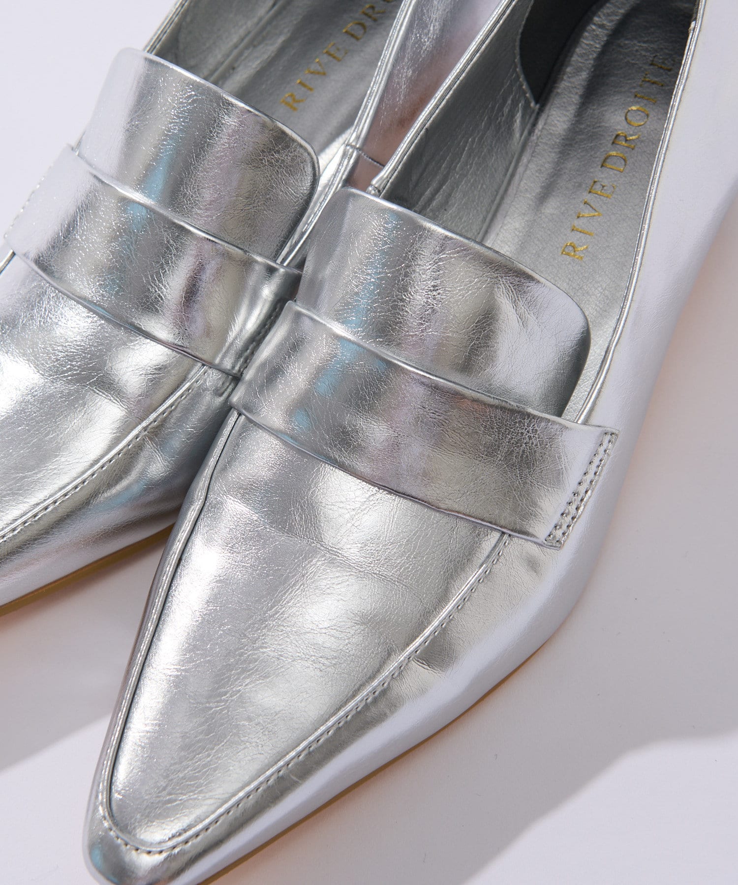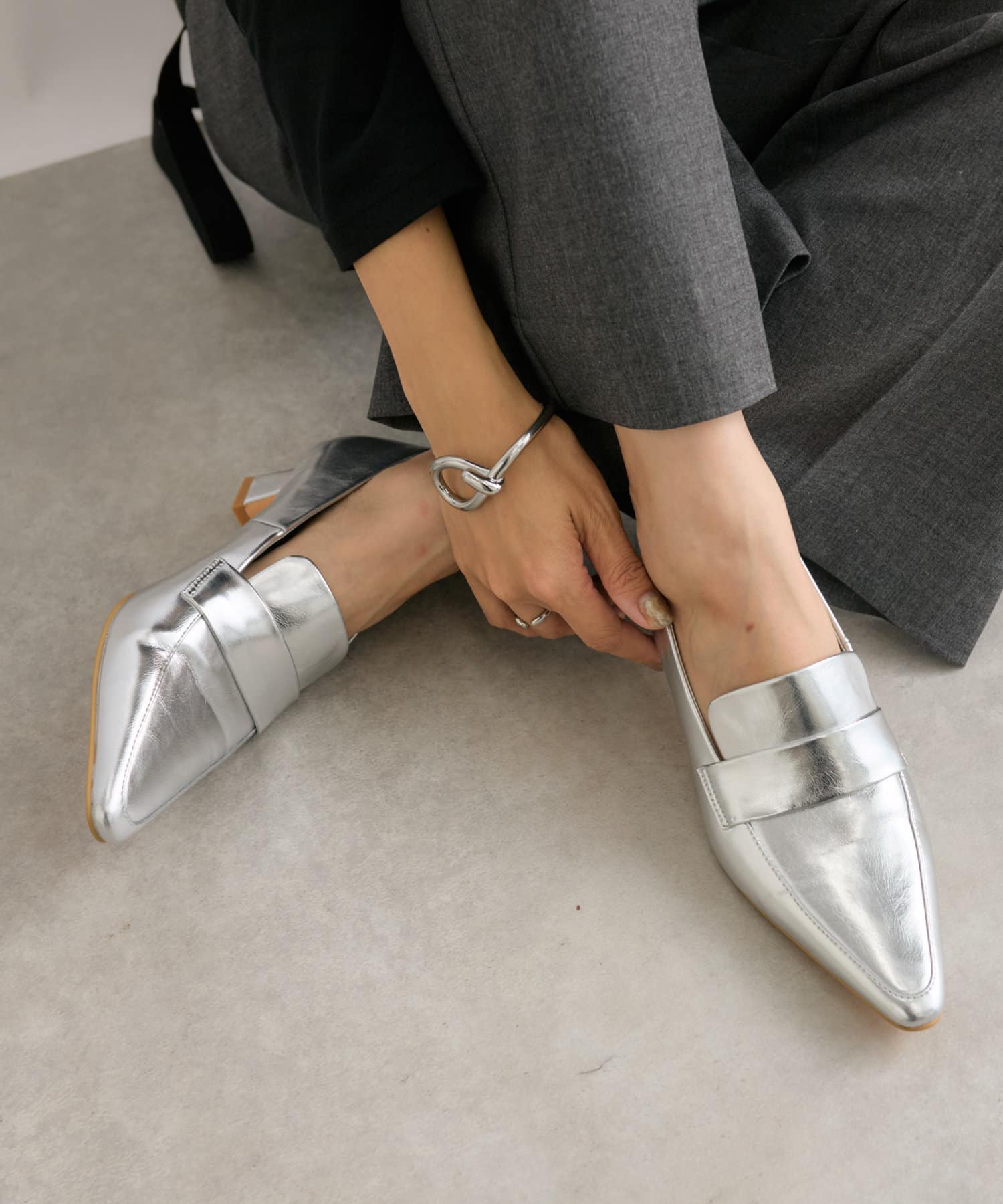 ポインテッドトゥがスタイリッシュな印象のローファー。