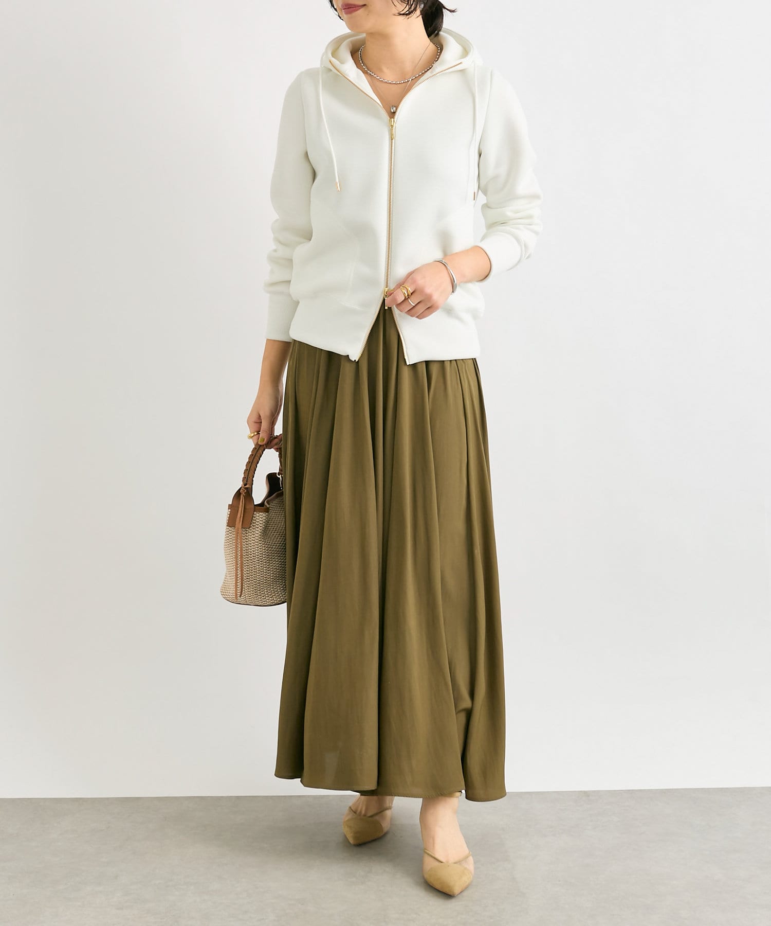 合わせるアイテムを選ばず、カジュアルにも上品にも幅広くあわせていただけます。