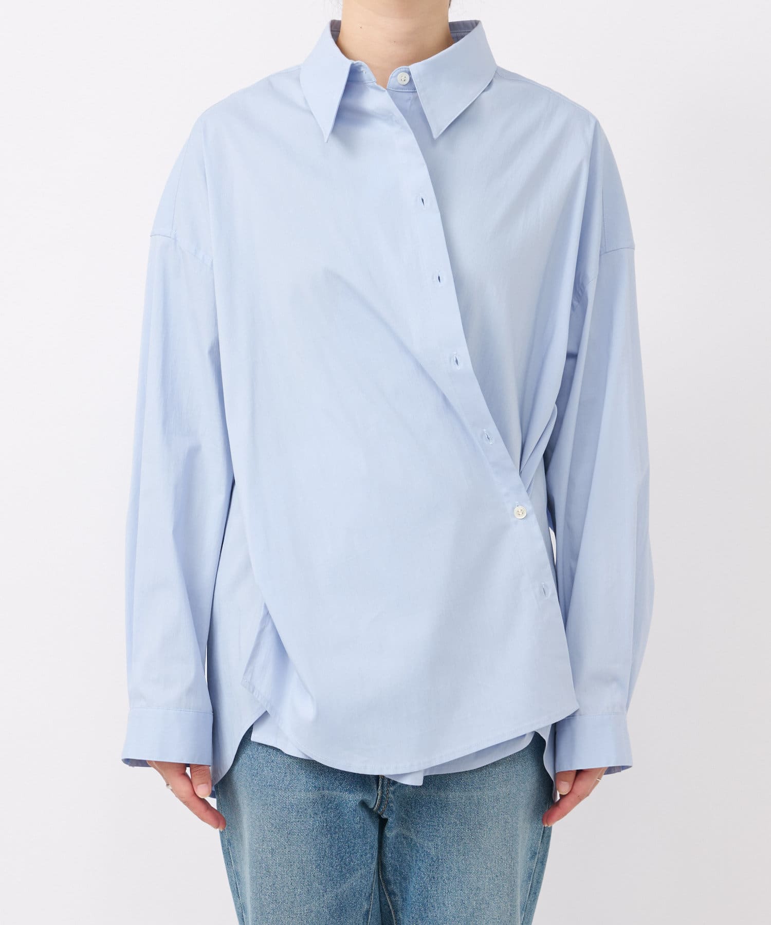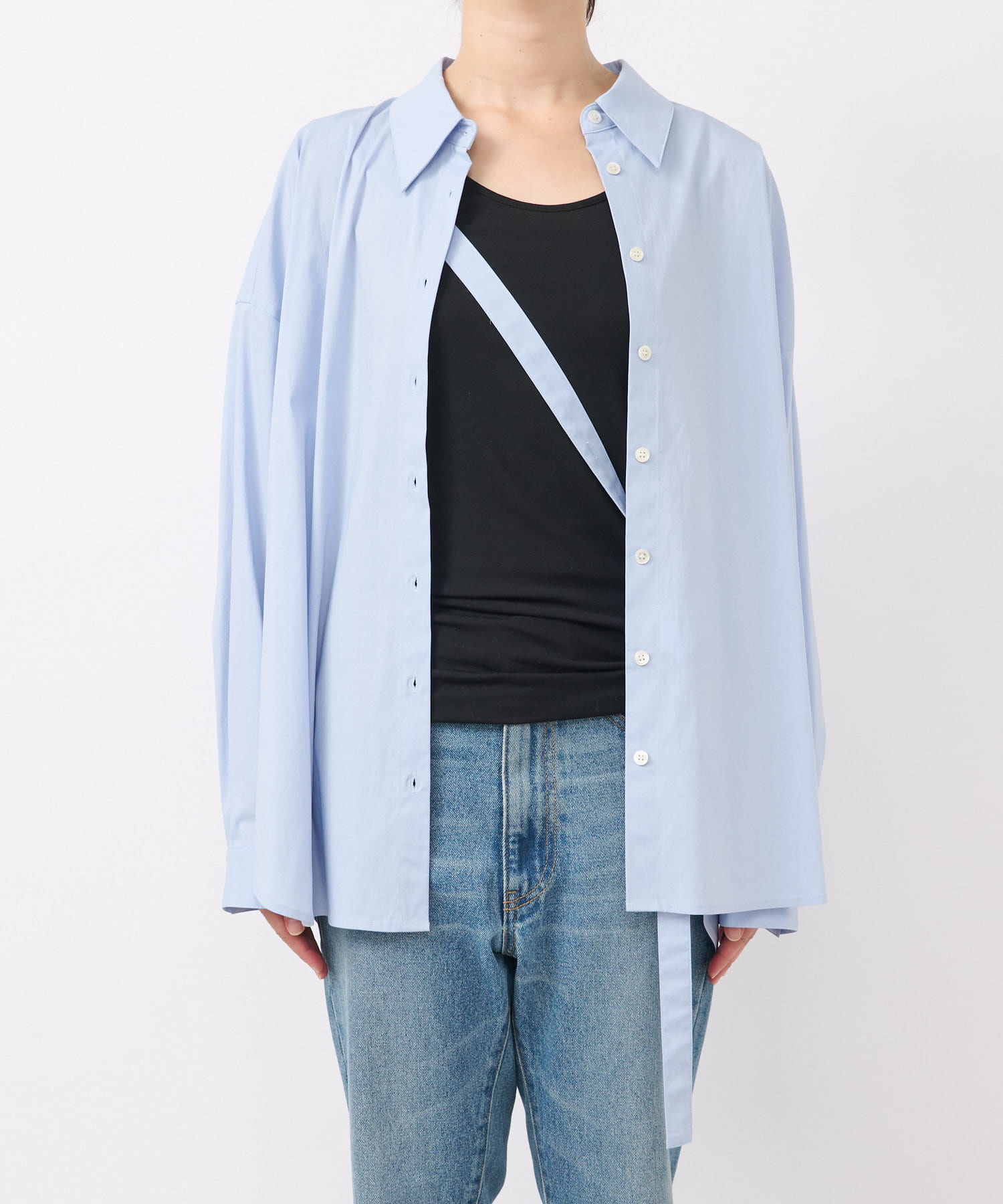取り外し可能な共布のテープやサイドのボタンで、色々な着方を楽しんでいただけるシャツ。
