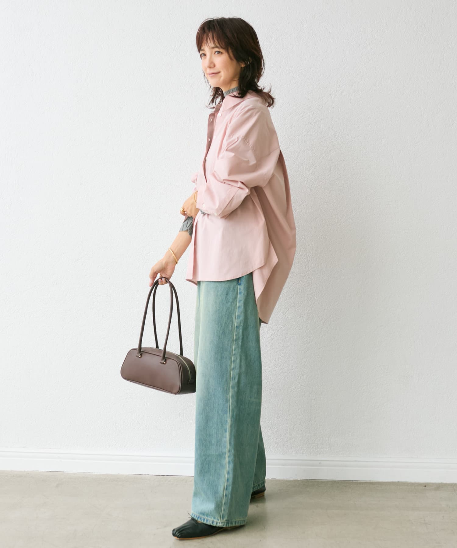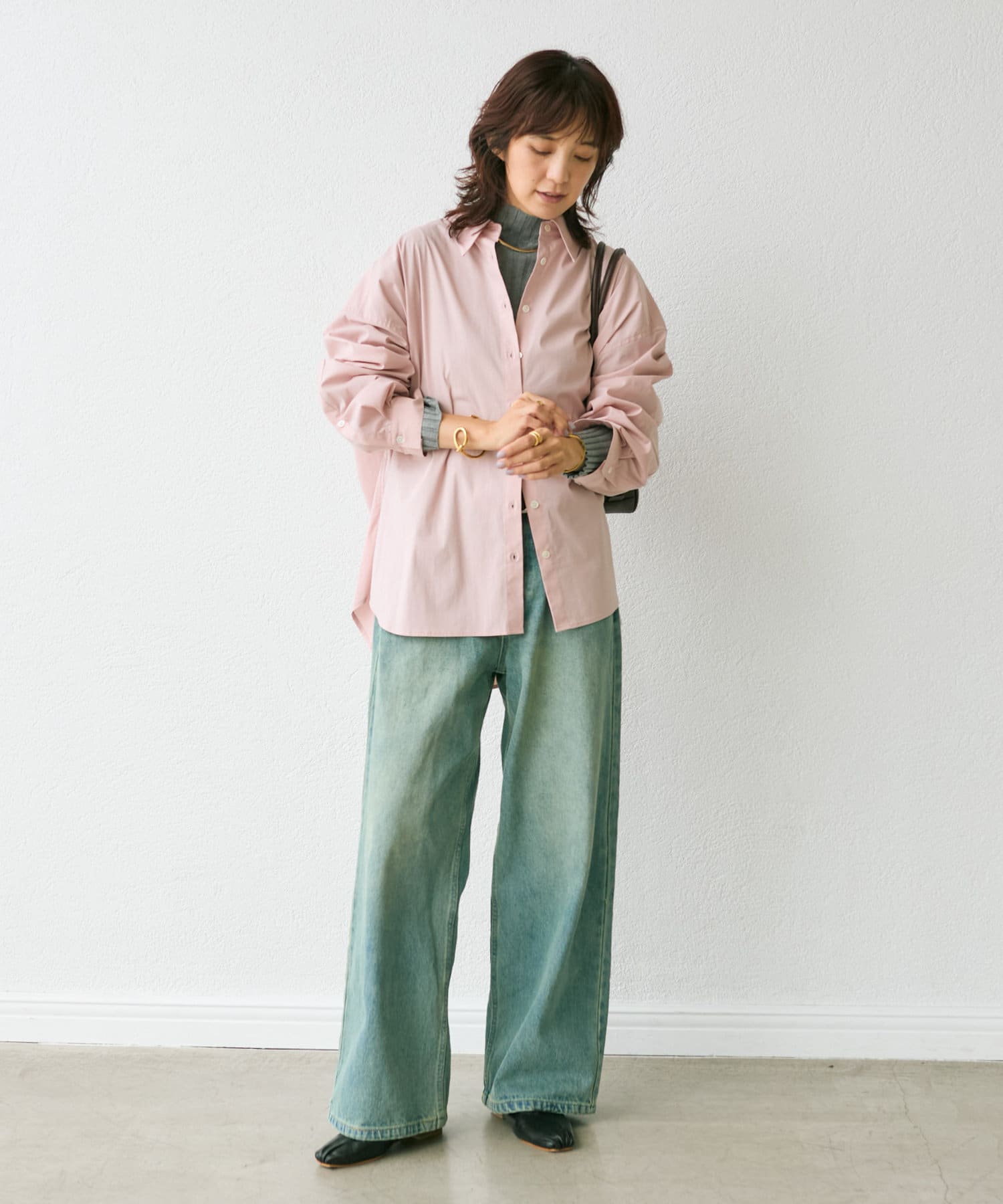 オーバーサイズのゆったりしたシルエットで、アレンジせず着ていただいても綺麗なシルエットになっております。