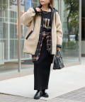 正面はすっきり見えるようにしつつ、抜いた時の後ろのシルエットが立体的にでるようにしているので、バサッと羽織るだけでこなれ感を演出。