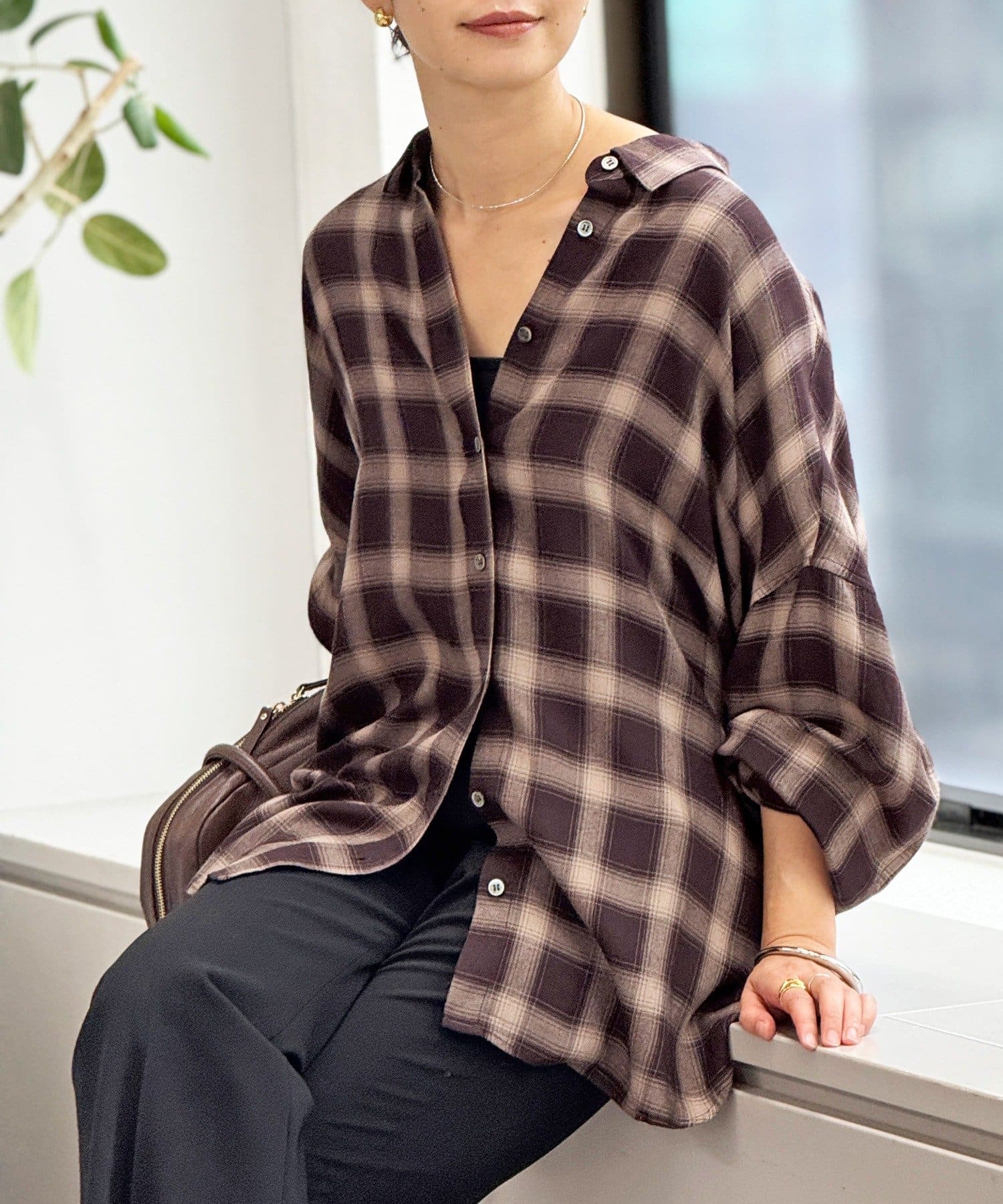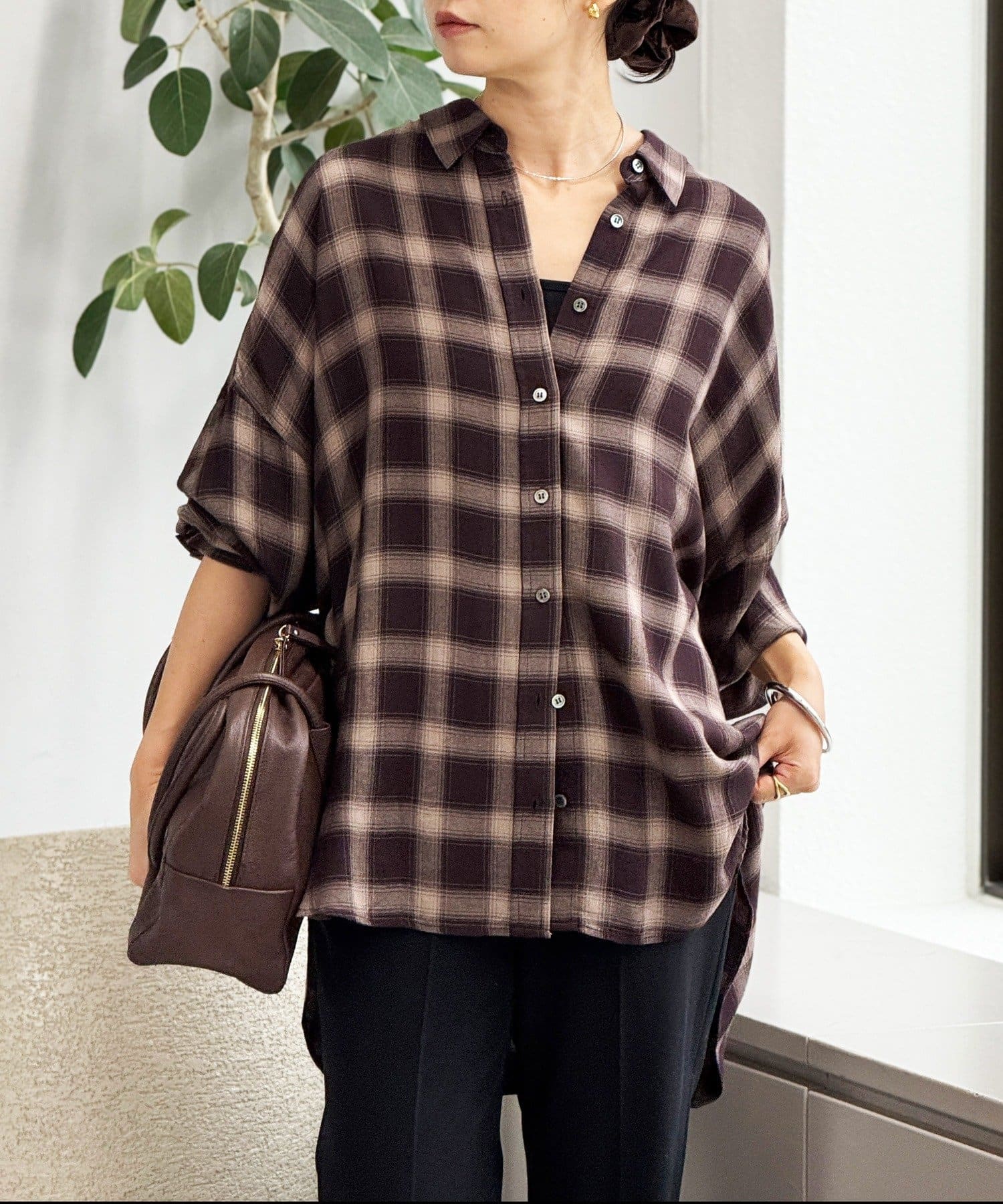 トロミのあるレーヨン素材を使用したチェック柄のシャツ。