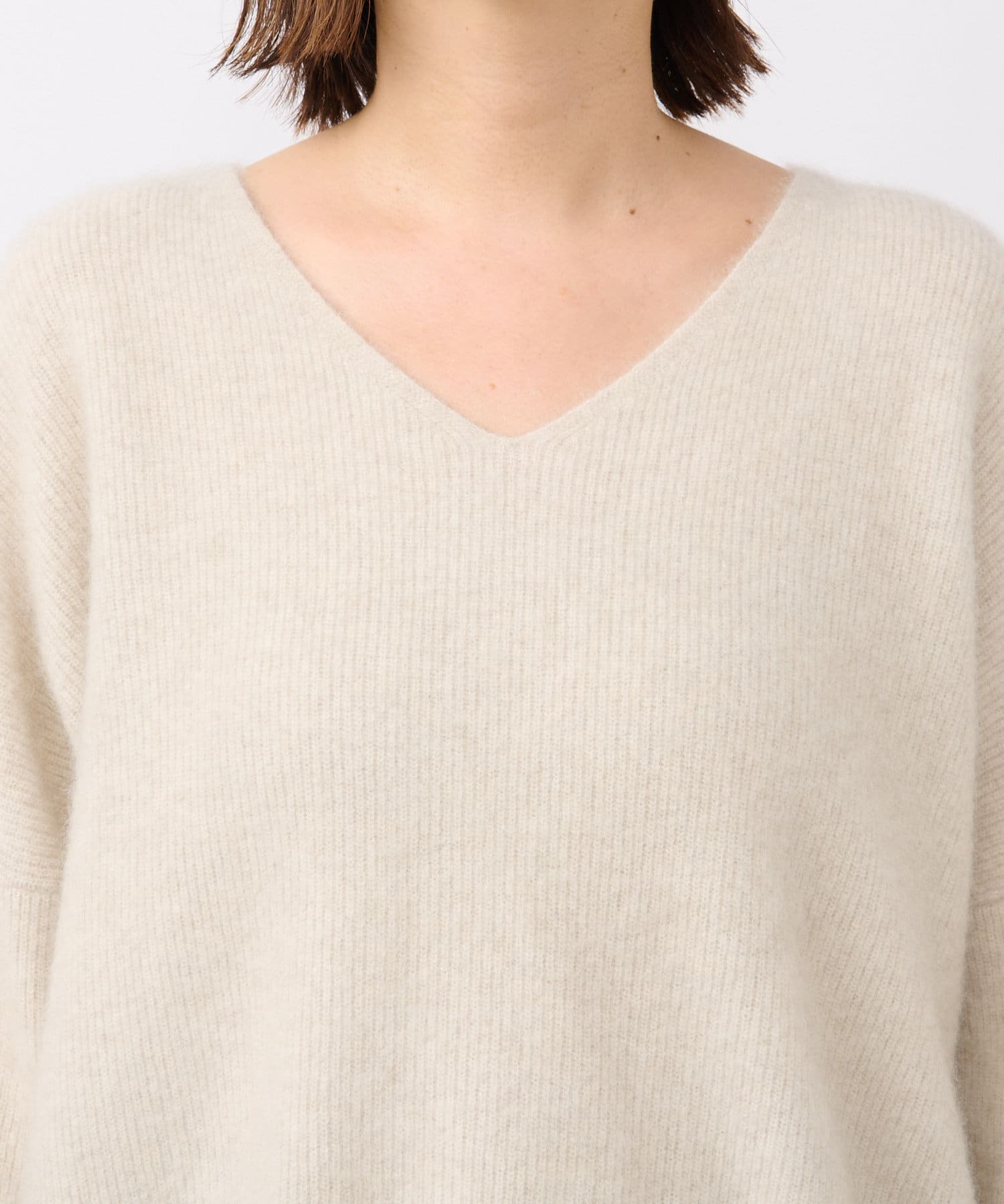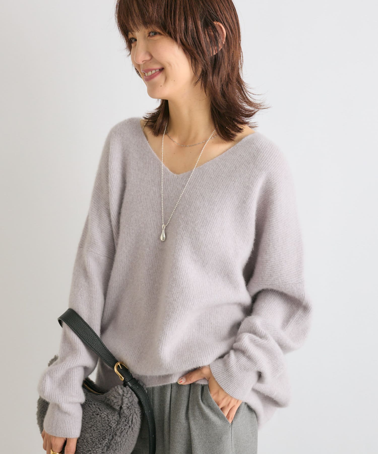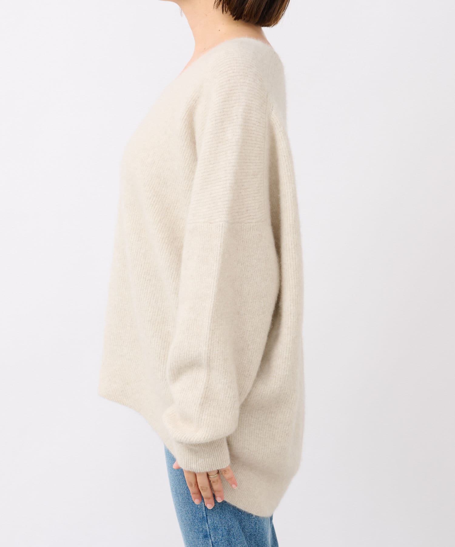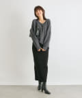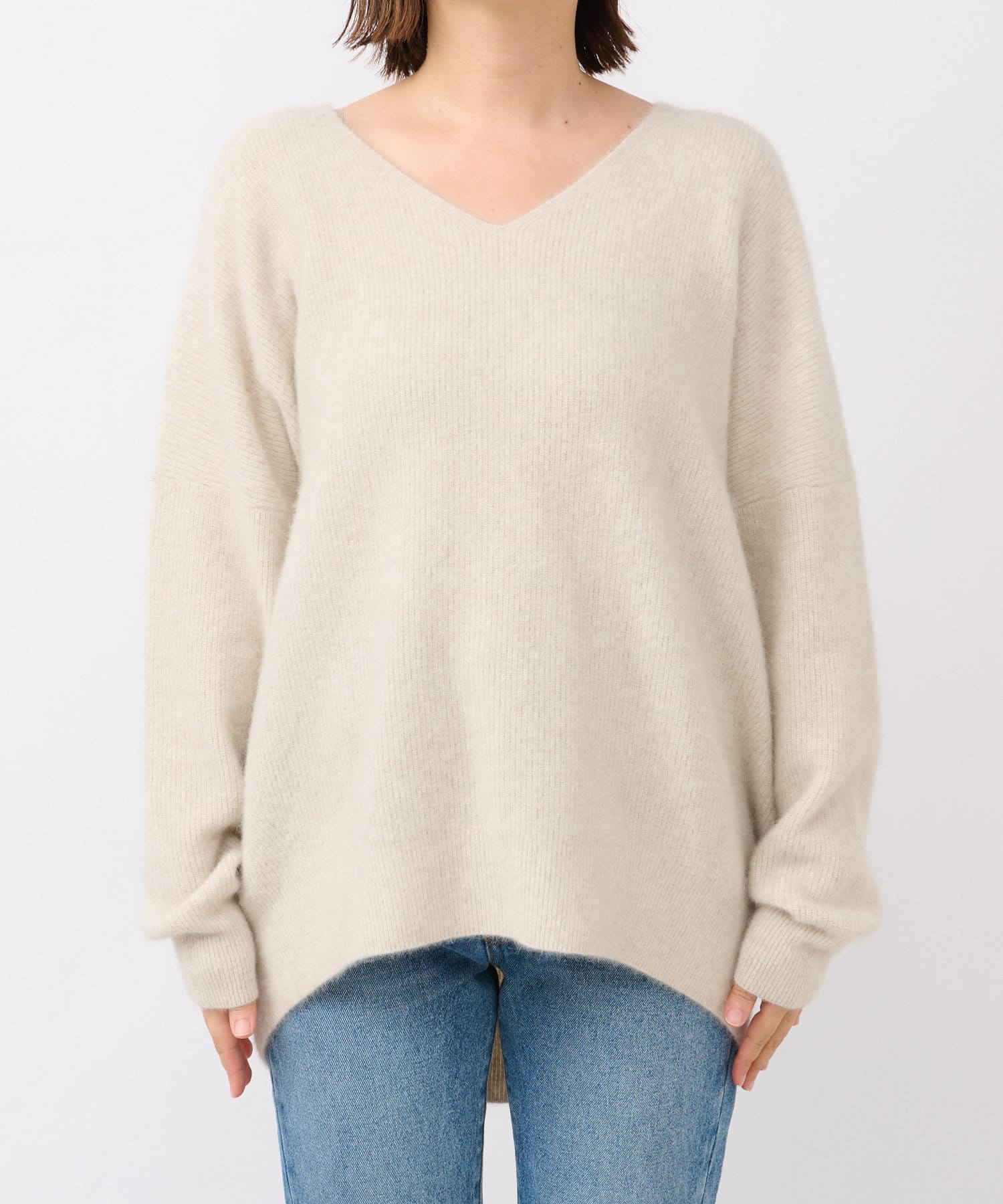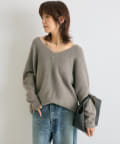 【抜け感シルエット】ヘアリーウール片畦Vネックニット
