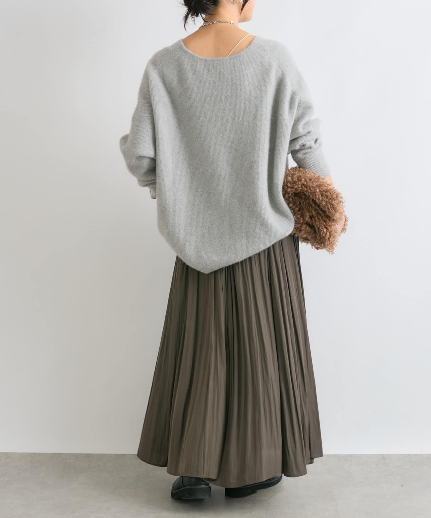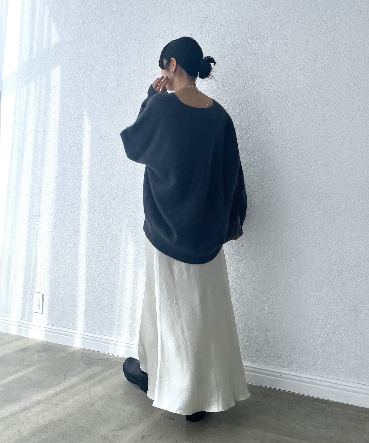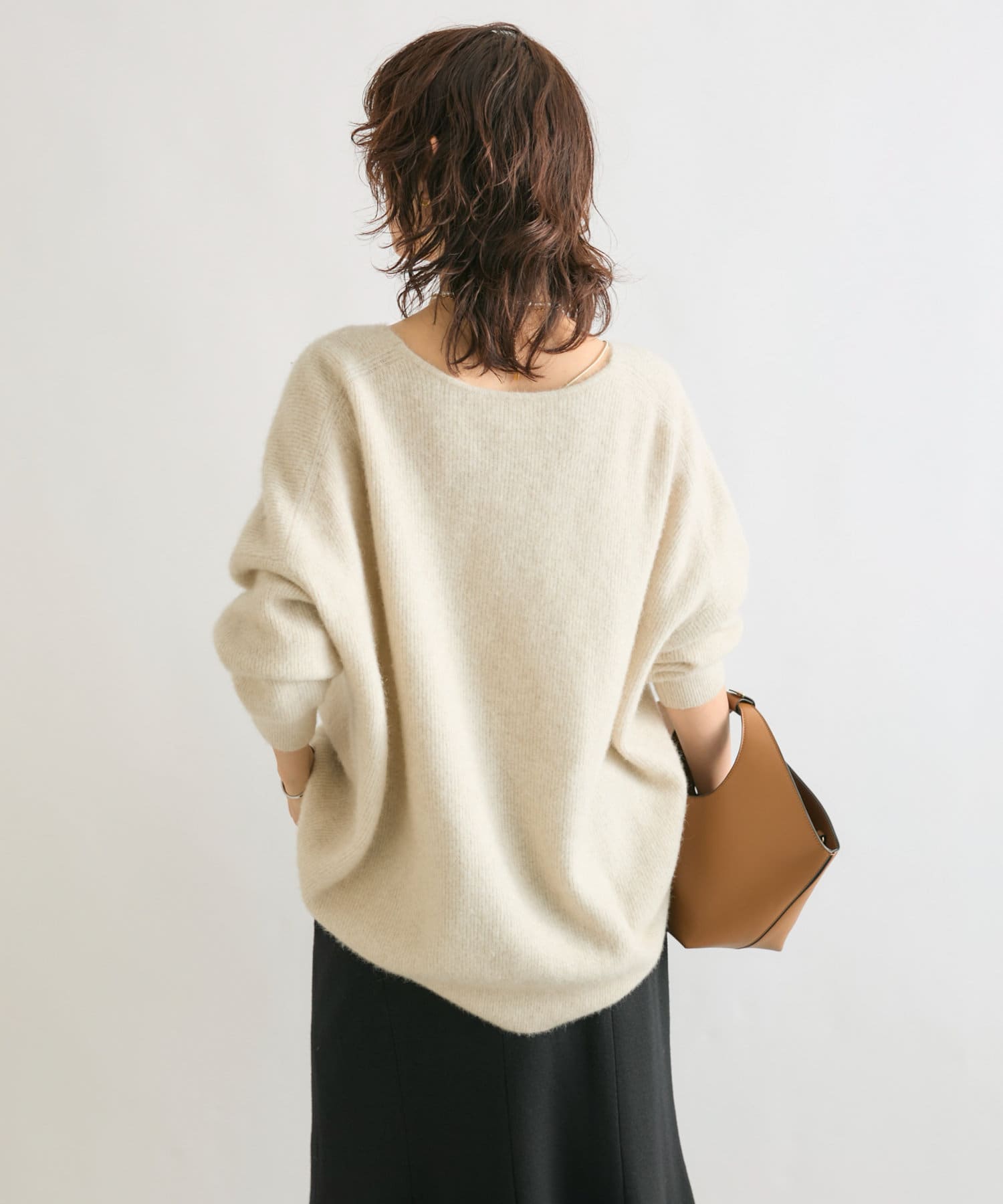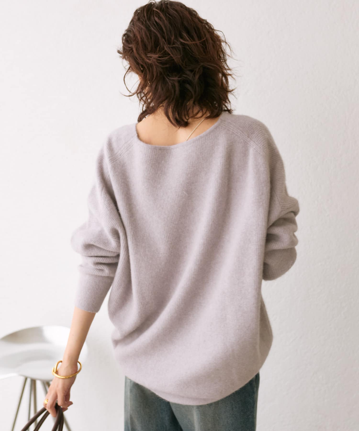 ※敏感肌の方は、ニットが直接肌に触れることでチクチク感じる場合がございますので、その場合はインナーにカットソーなどを合わせていただくことをおすすめいたします。