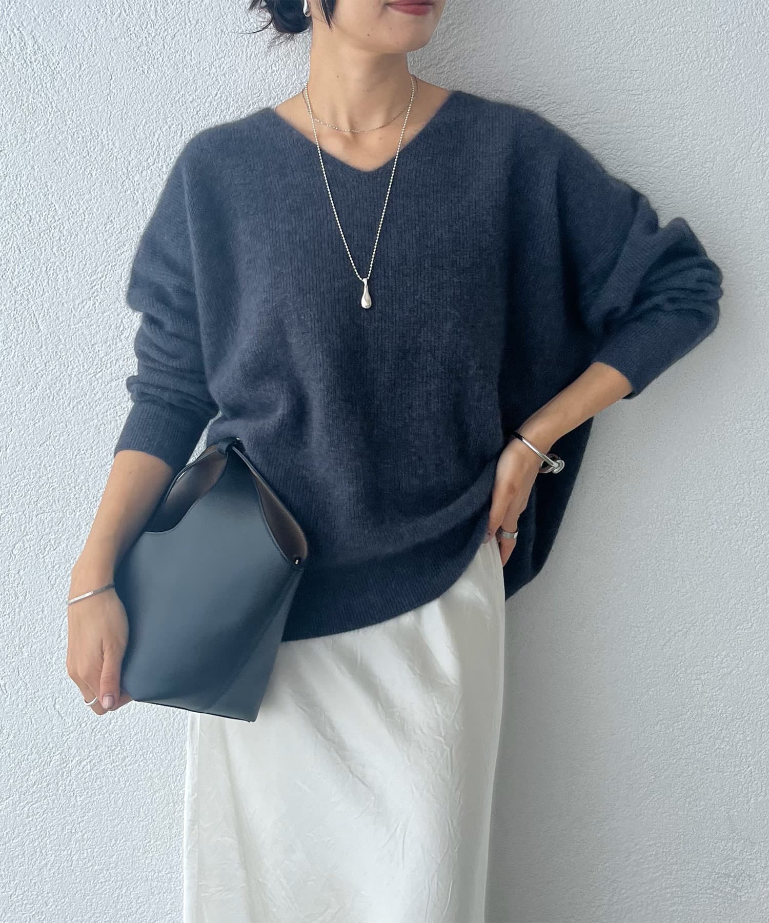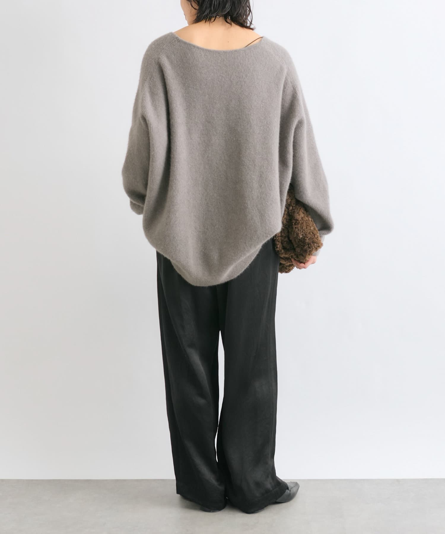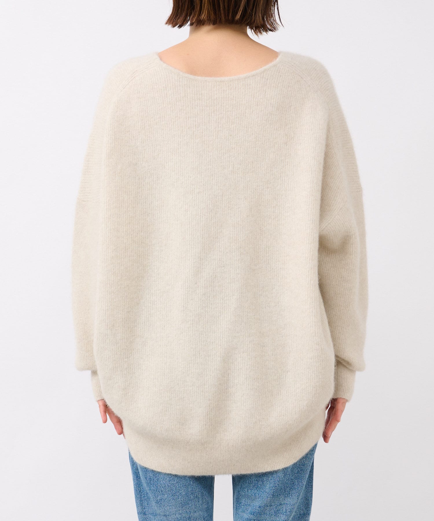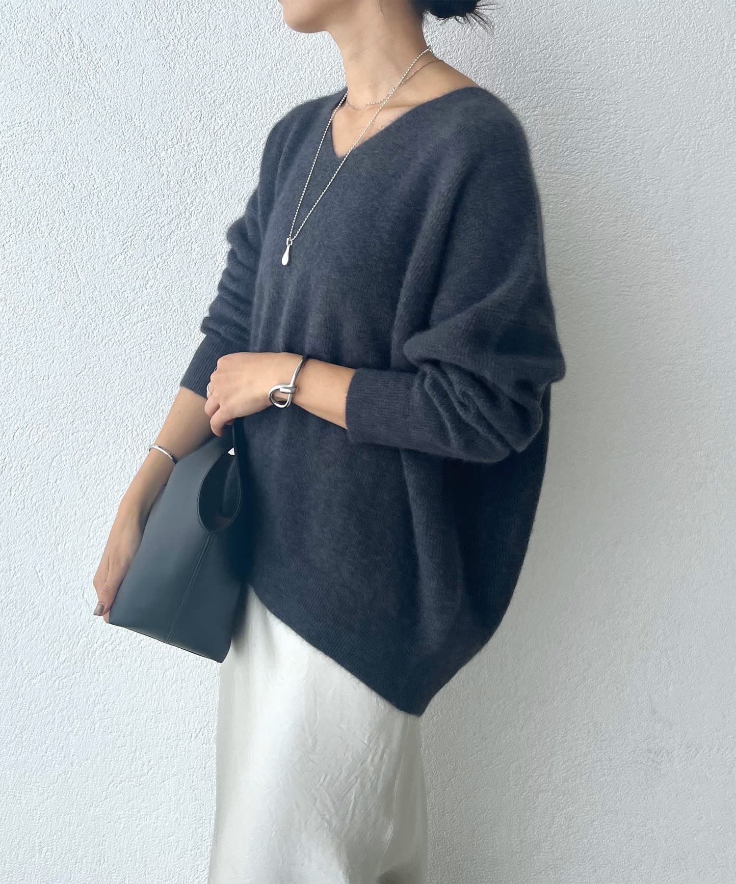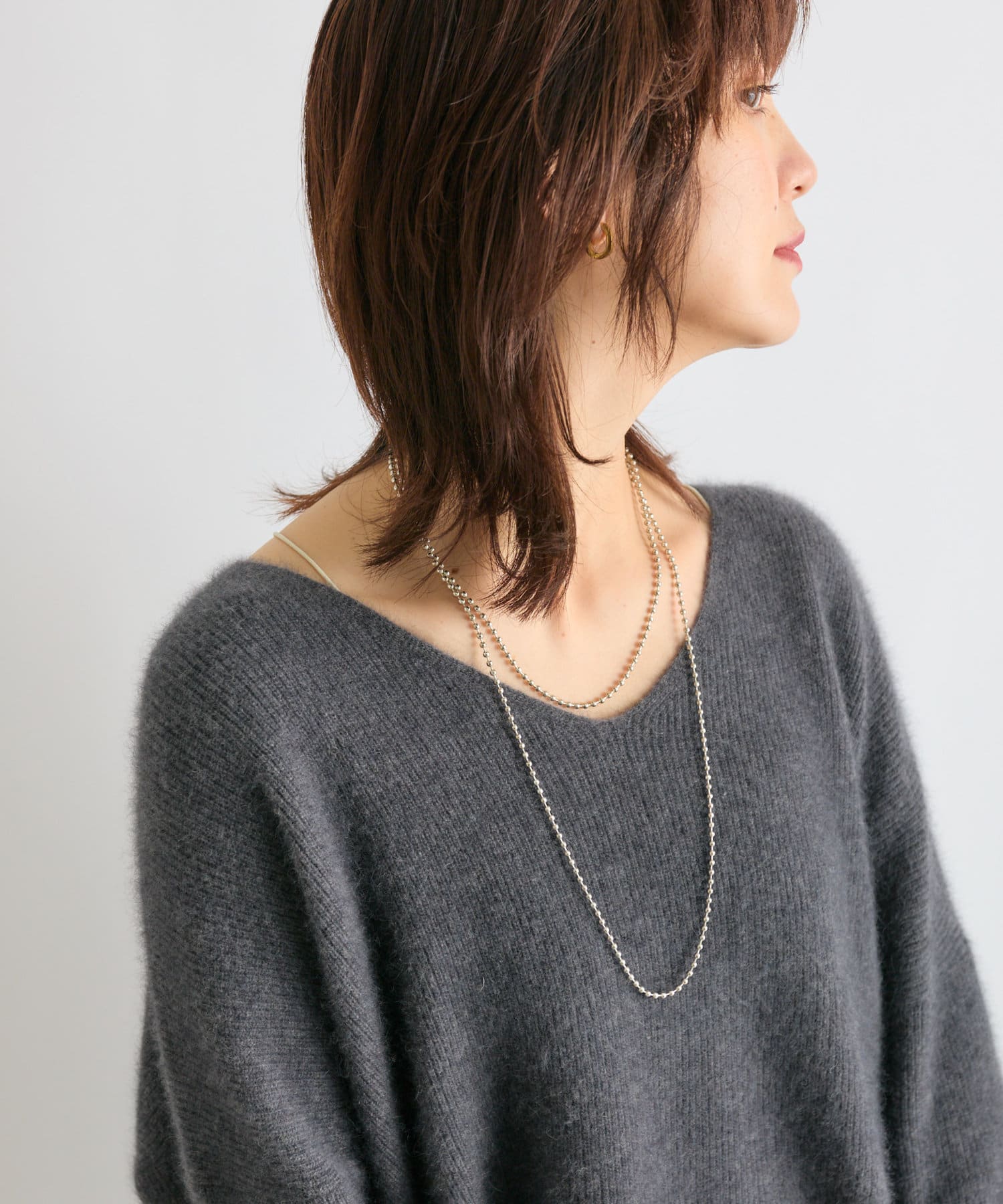 ※敏感肌の方は、ニットが直接肌に触れることでチクチク感じる場合がございますので、その場合はインナーにカットソーなどを合わせていただくことをおすすめいたします。