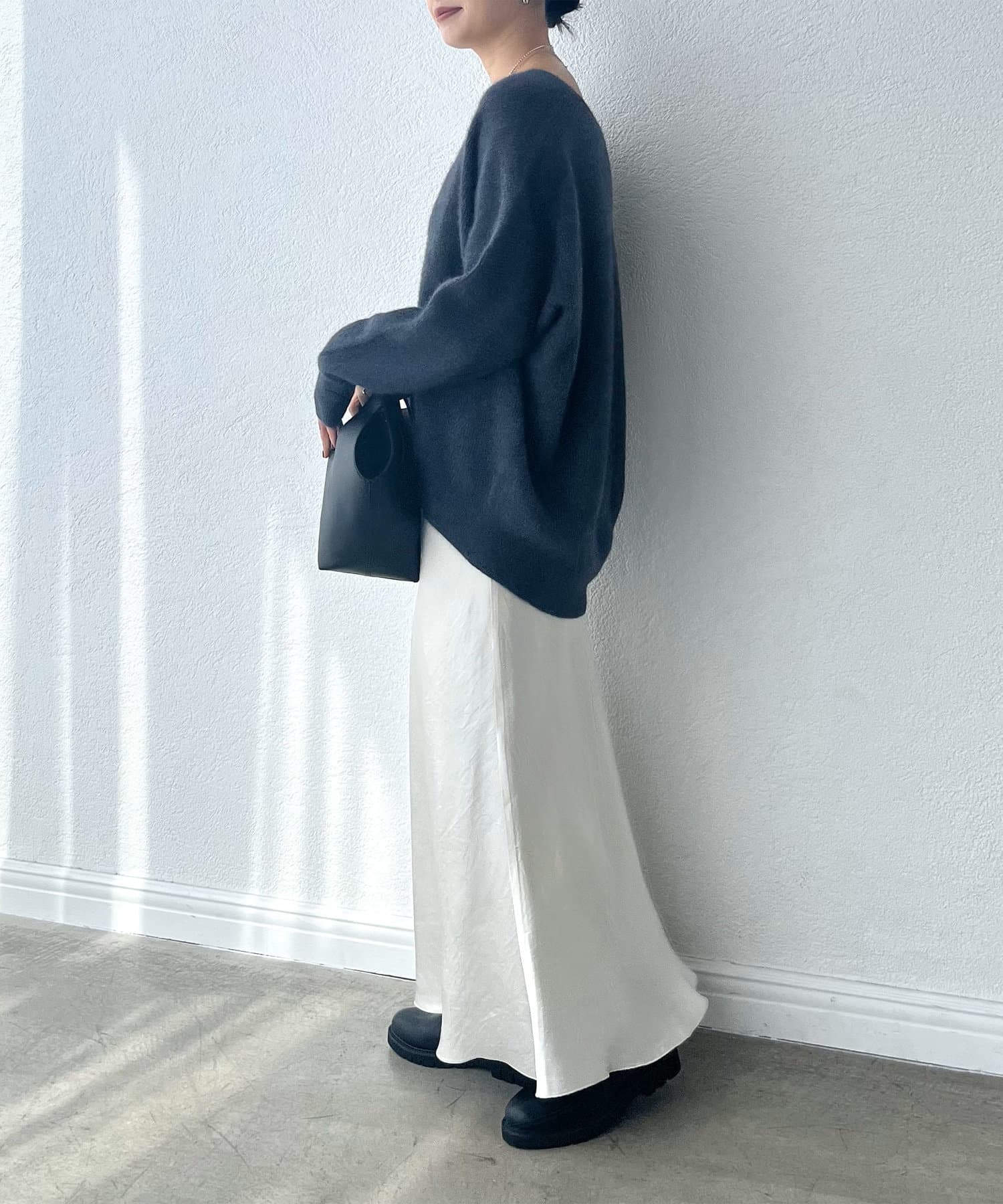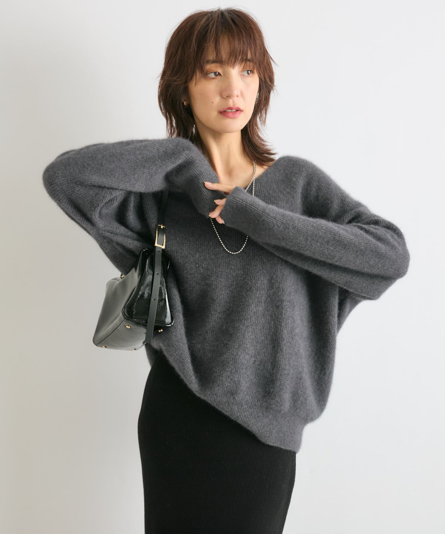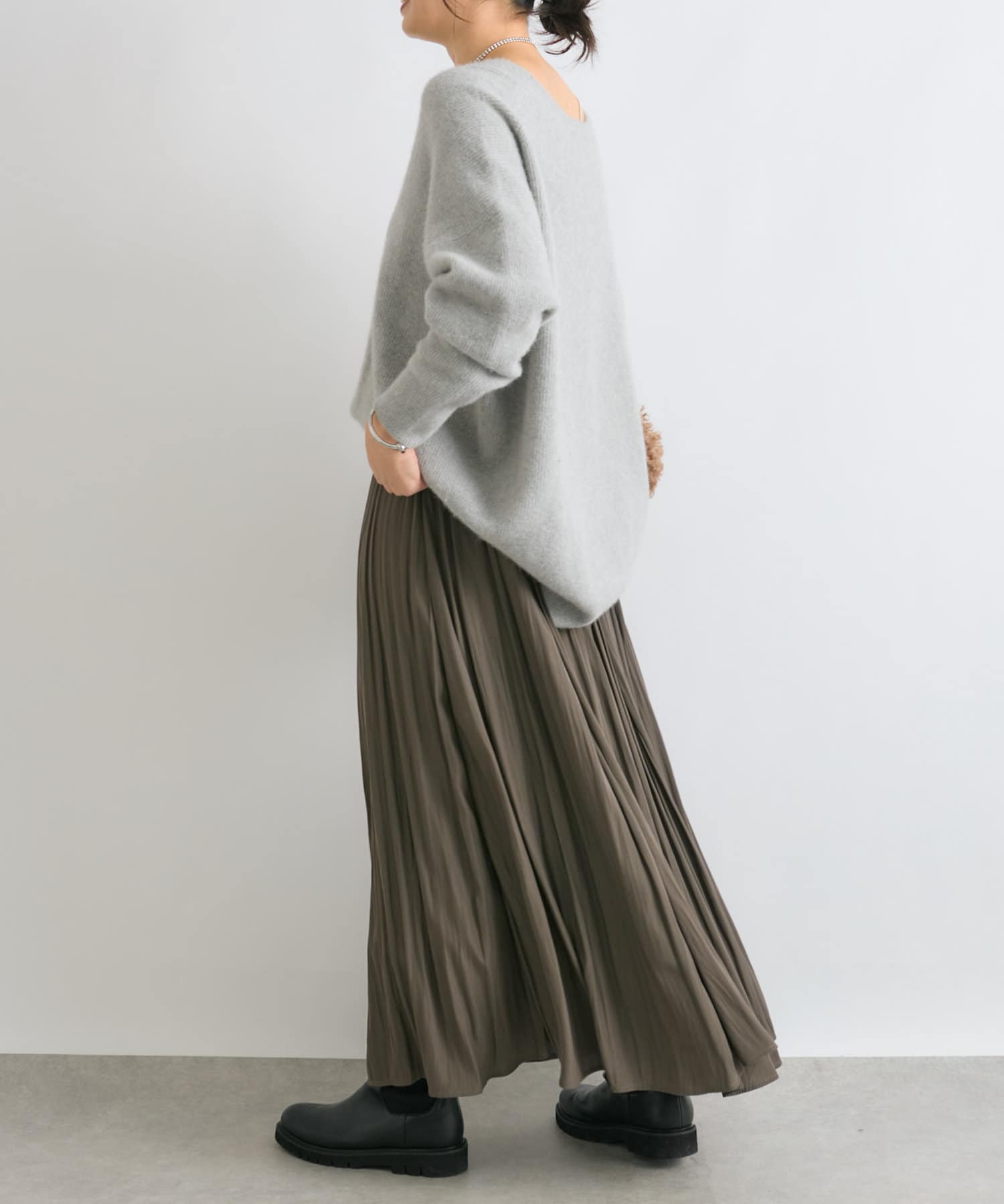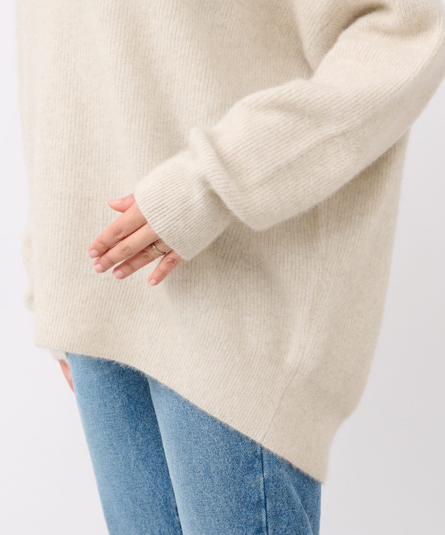 ※敏感肌の方は、ニットが直接肌に触れることでチクチク感じる場合がございますので、その場合はインナーにカットソーなどを合わせていただくことをおすすめいたします。