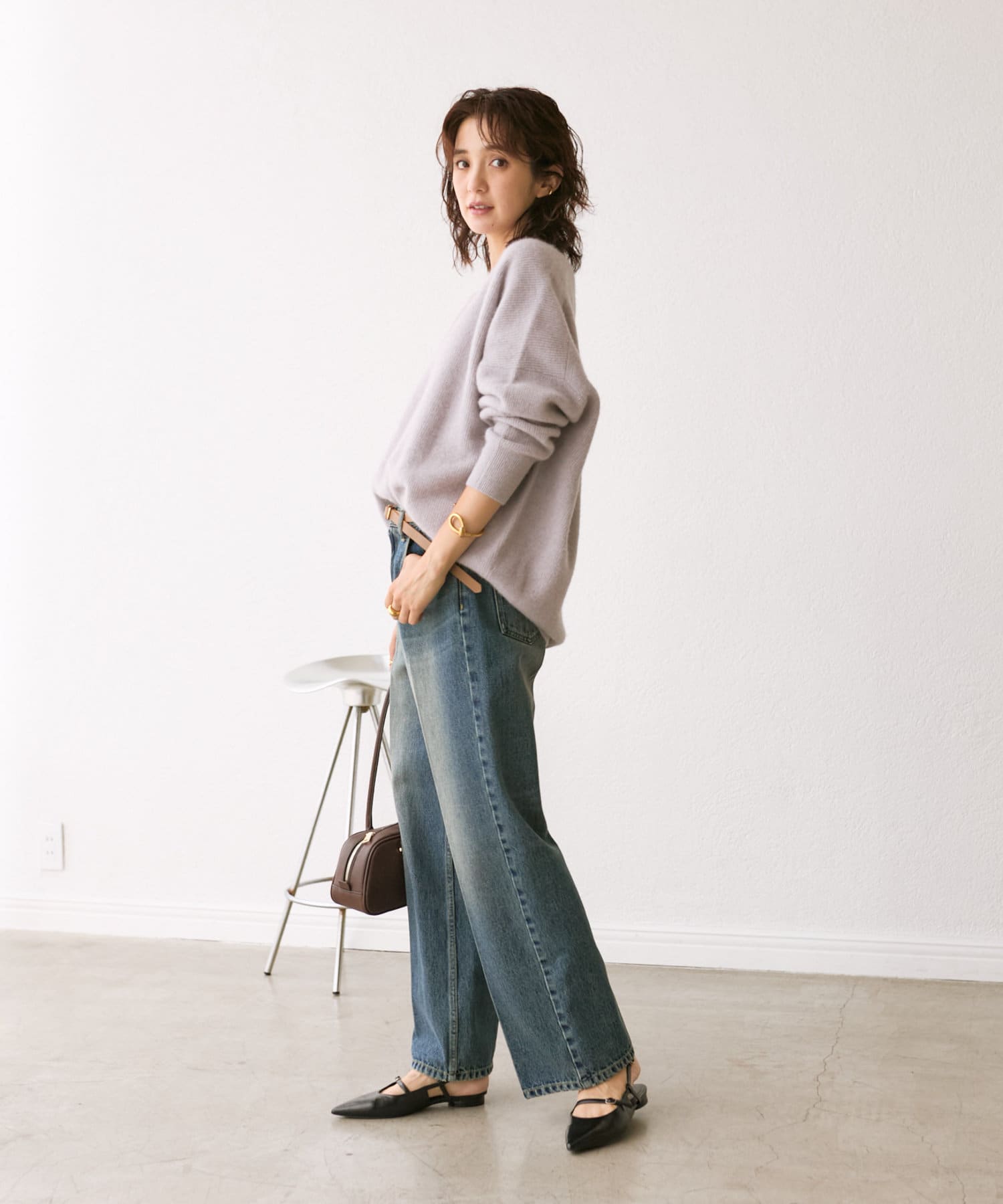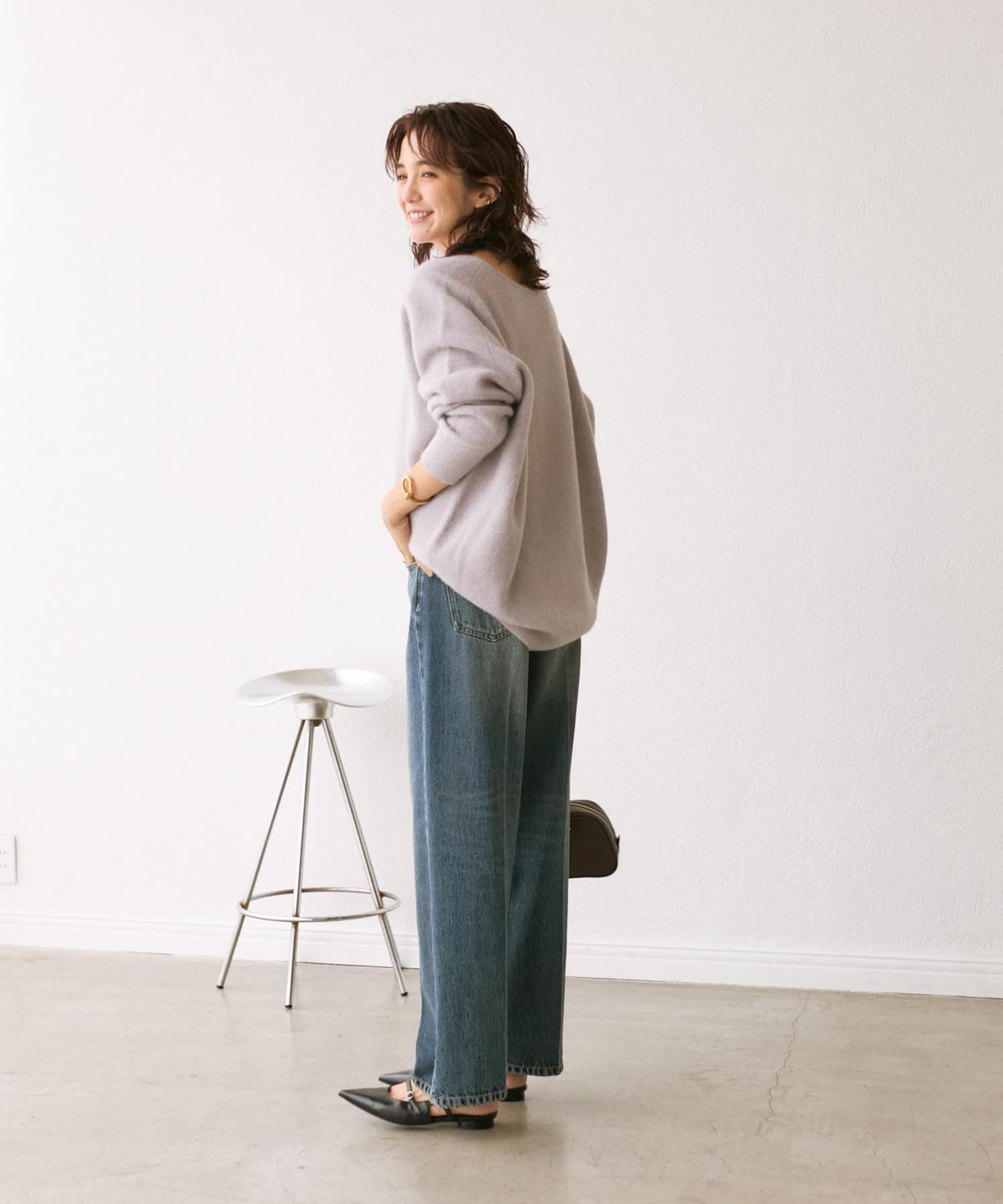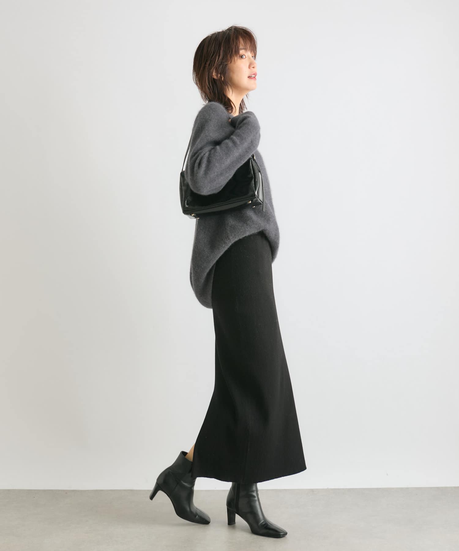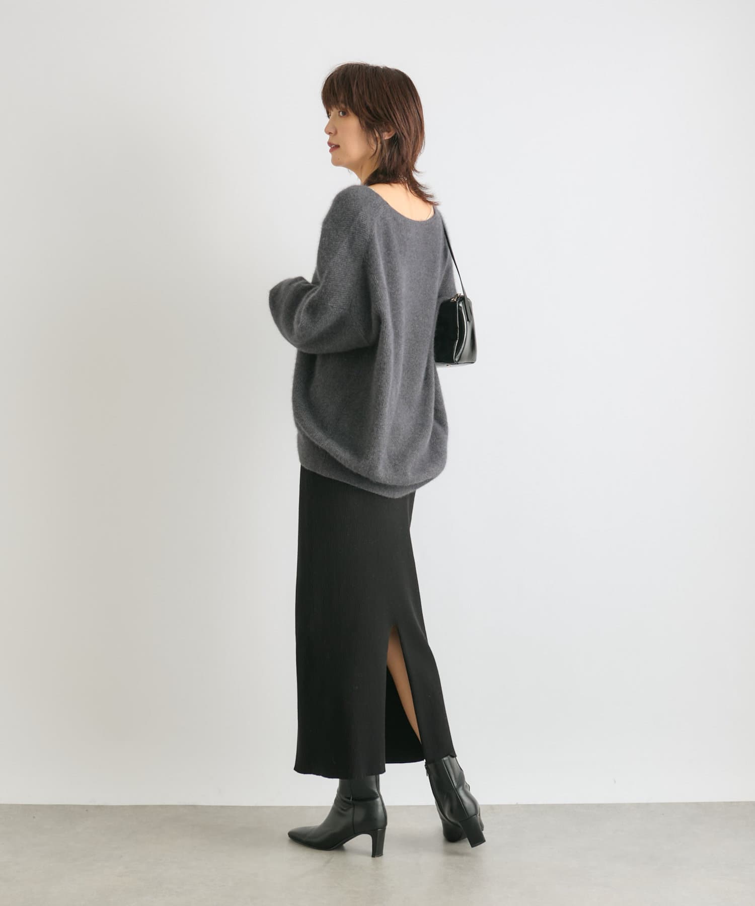※敏感肌の方は、ニットが直接肌に触れることでチクチク感じる場合がございますので、その場合はインナーにカットソーなどを合わせていただくことをおすすめいたします。