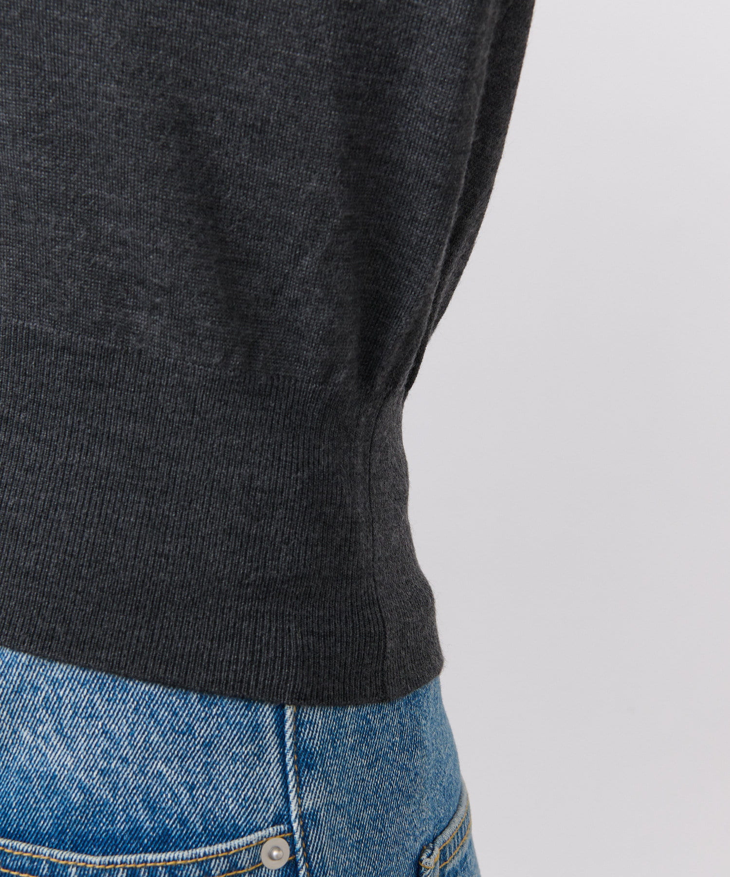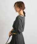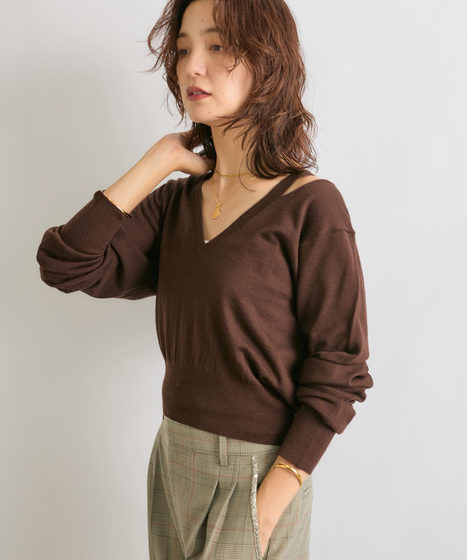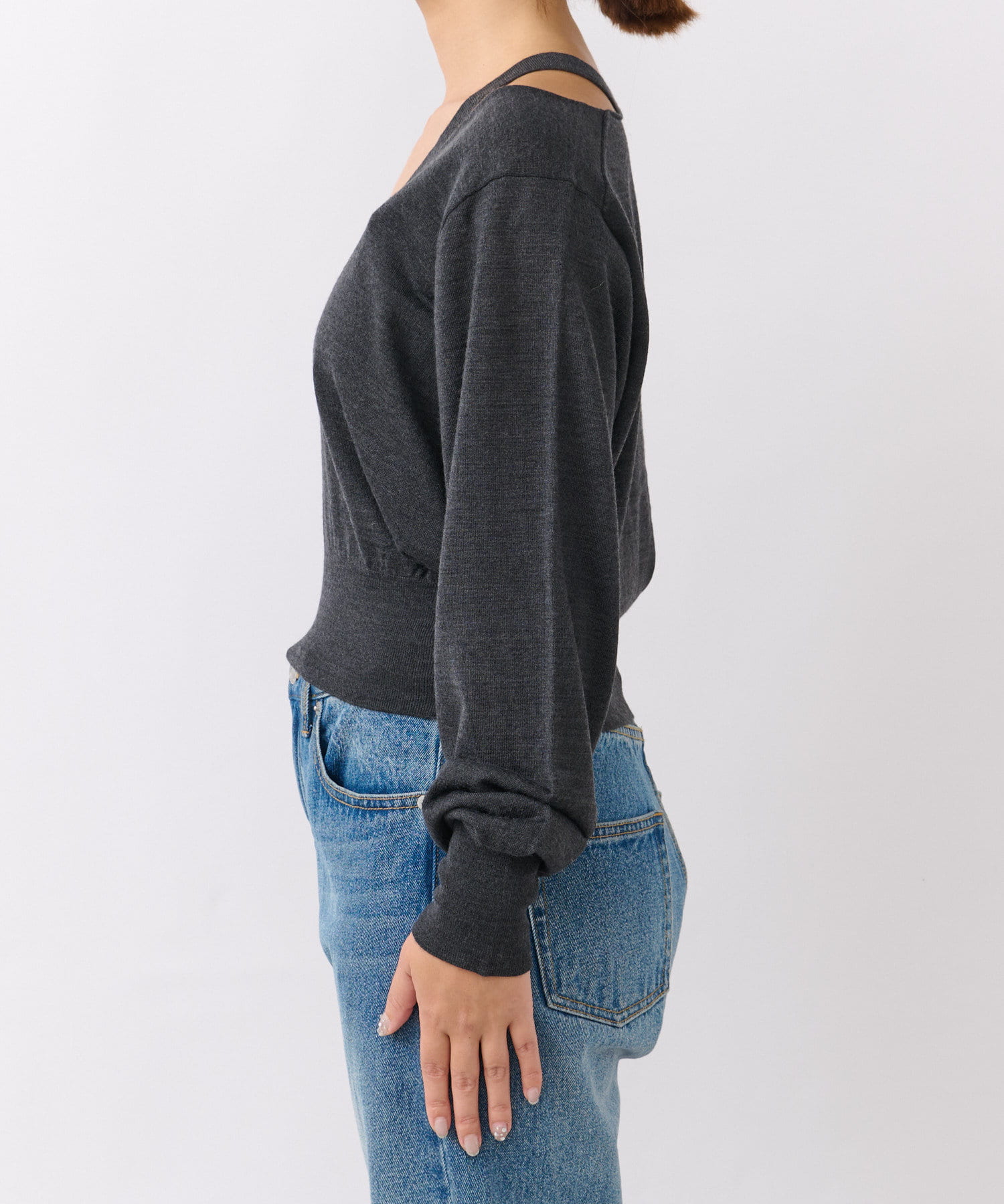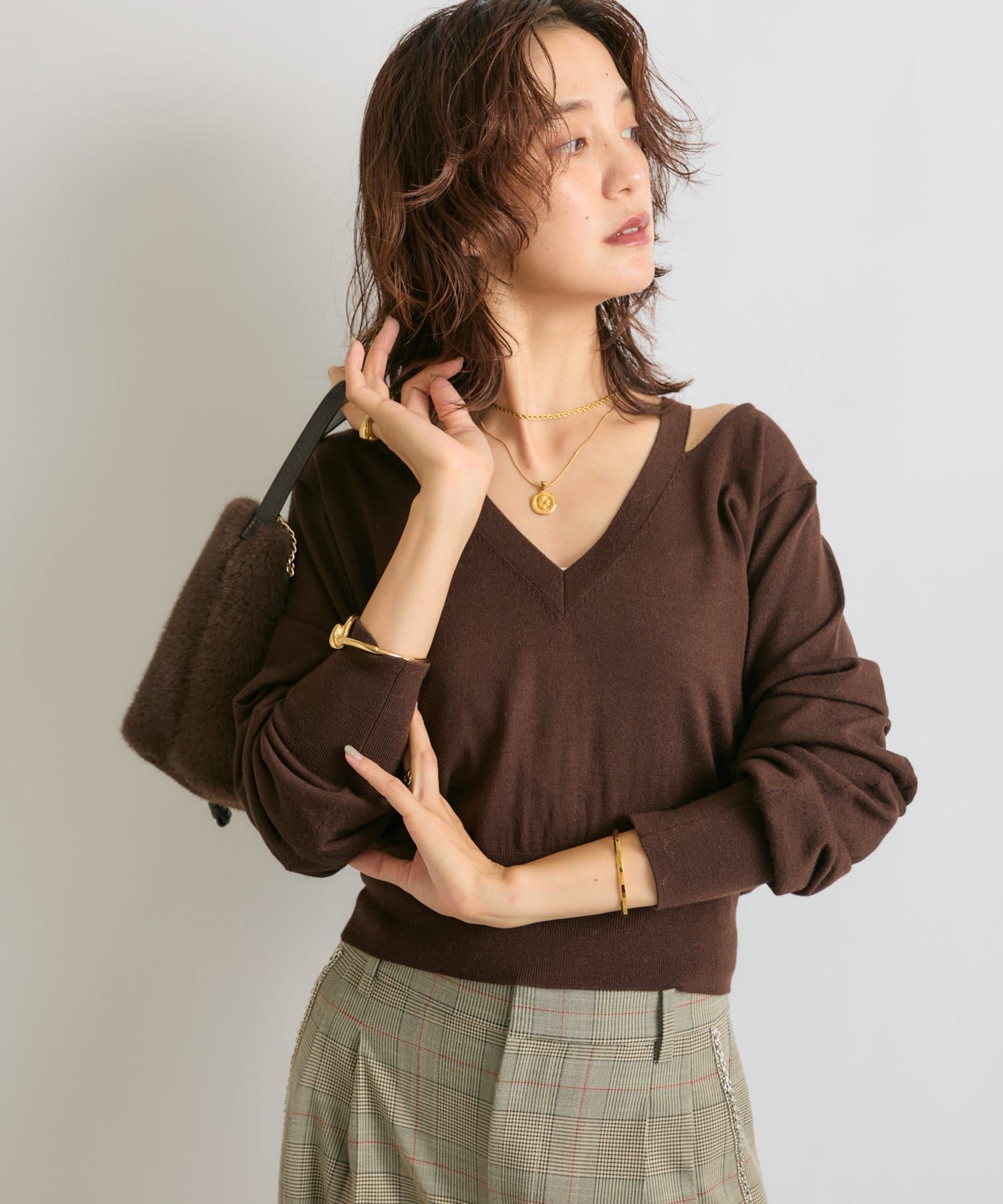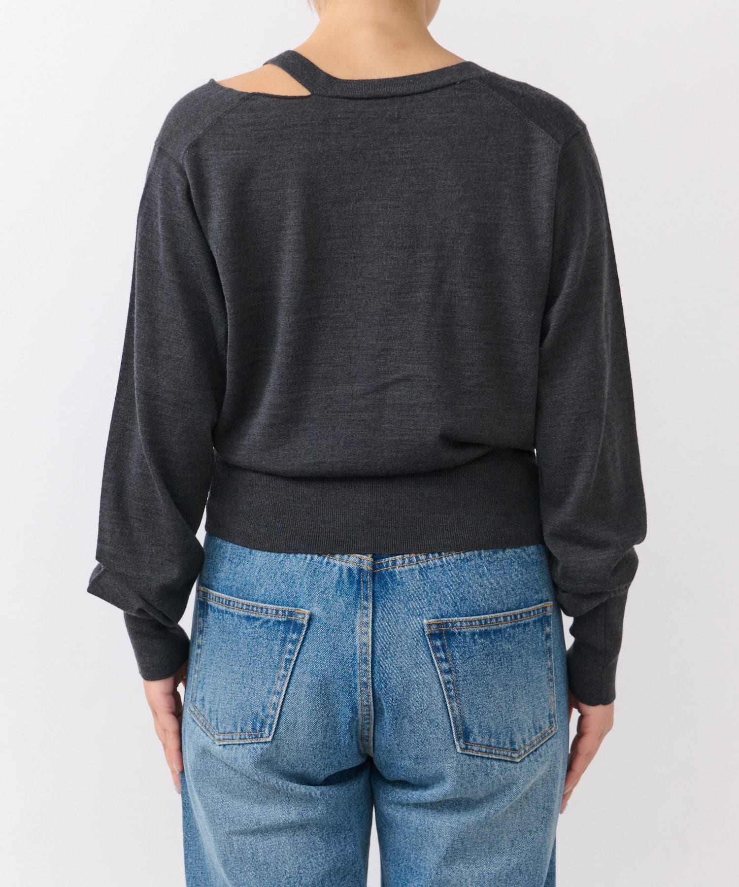 左肩のカットオフディテールがポイントで、ネックライン、デコルテを綺麗に見せてくれます。