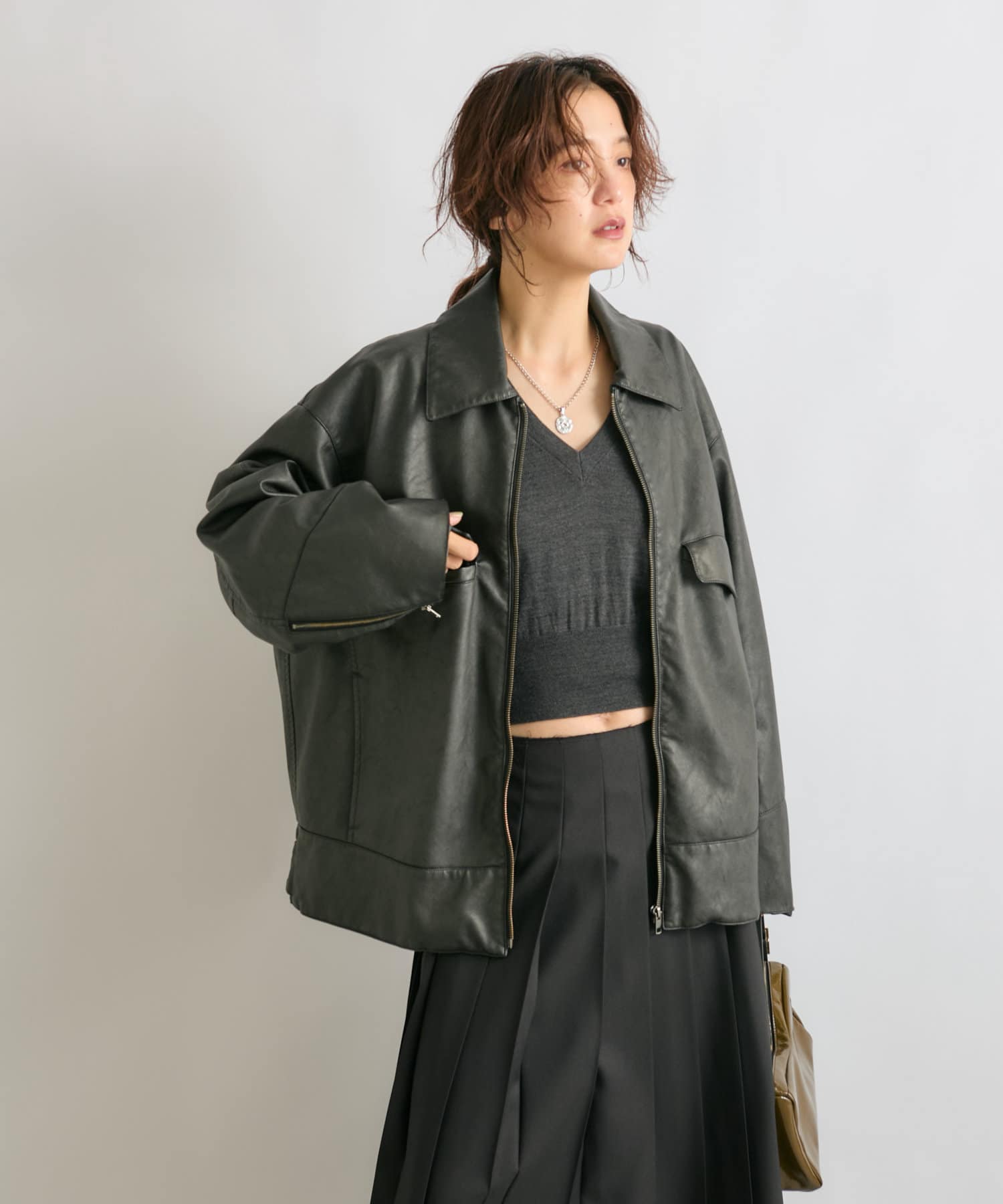 ヴィンテージレザーライクジャケット(RDZ10A2207A0001)