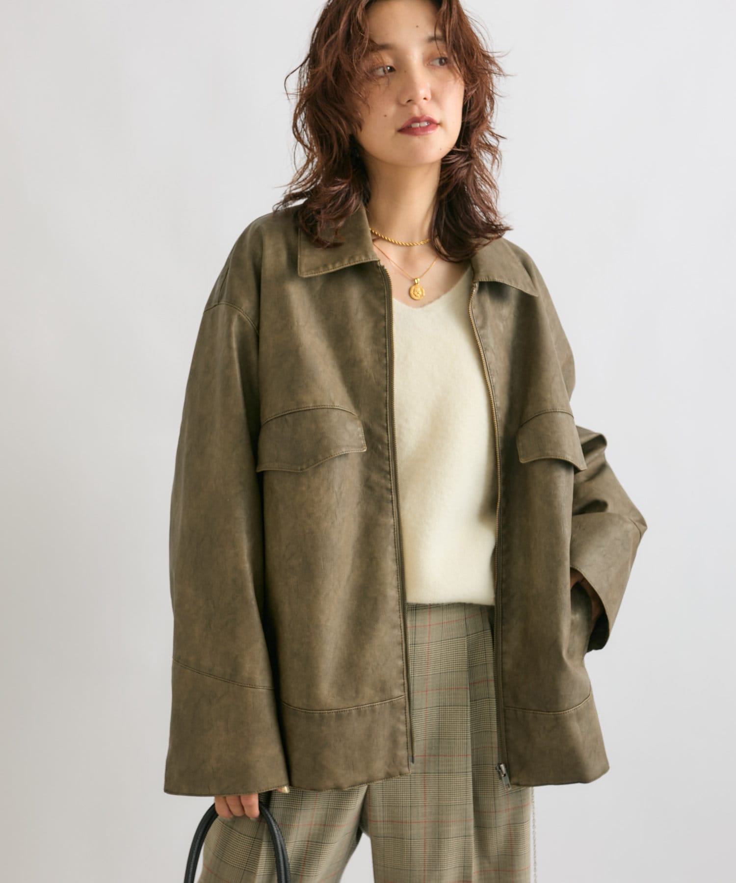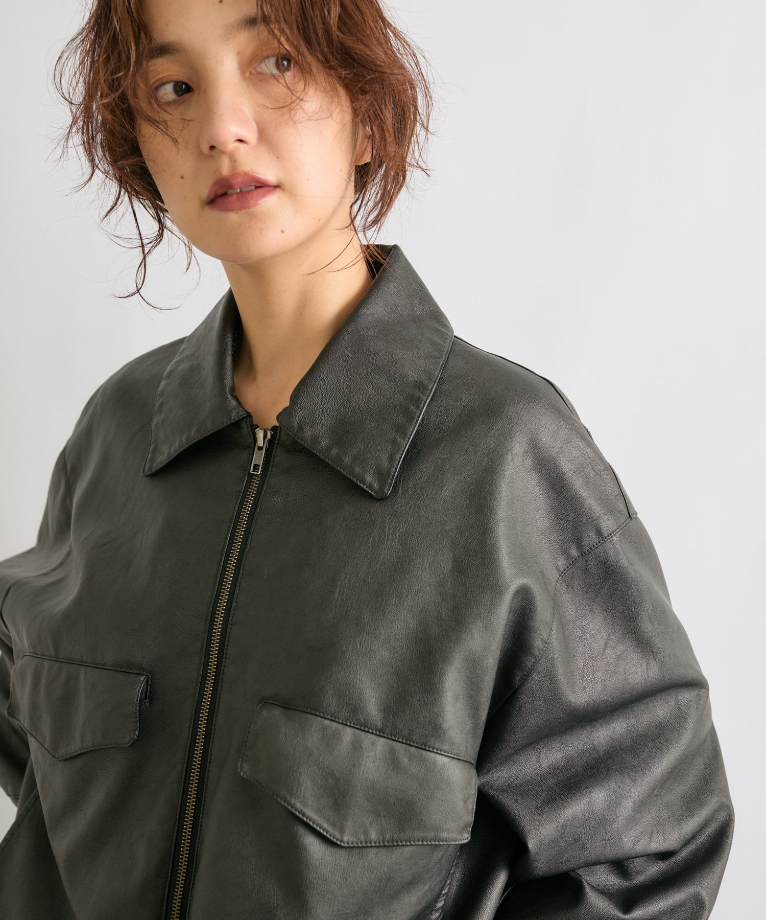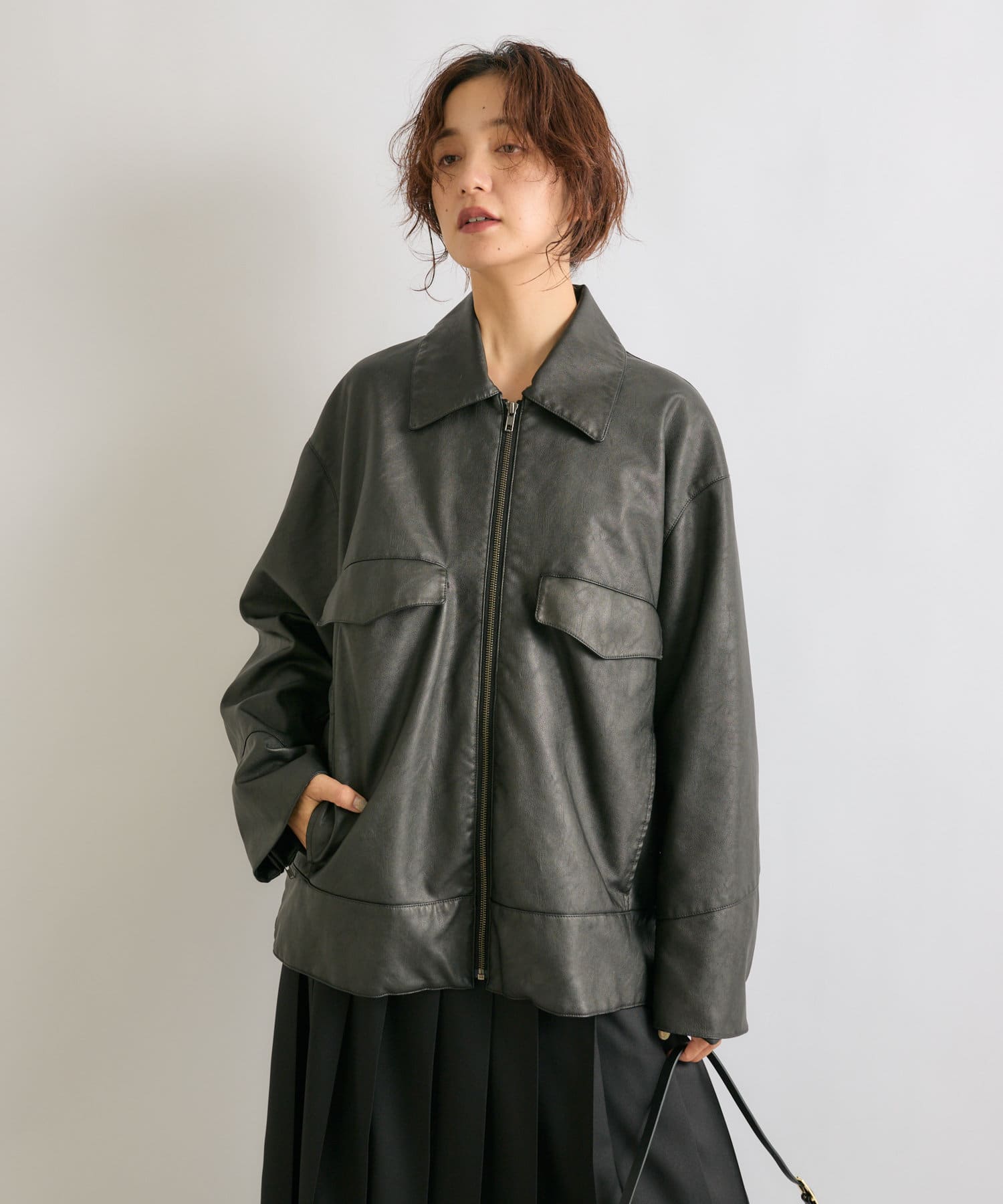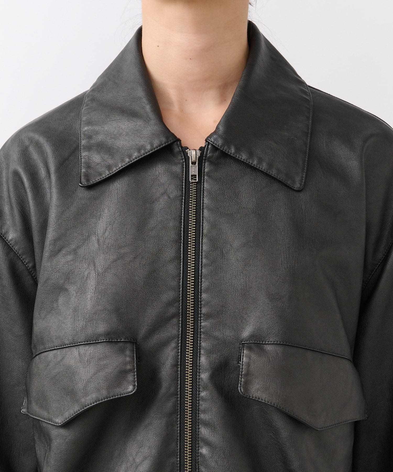 【コーデの外しに◎】ヴィンテージレザーライクジャケット