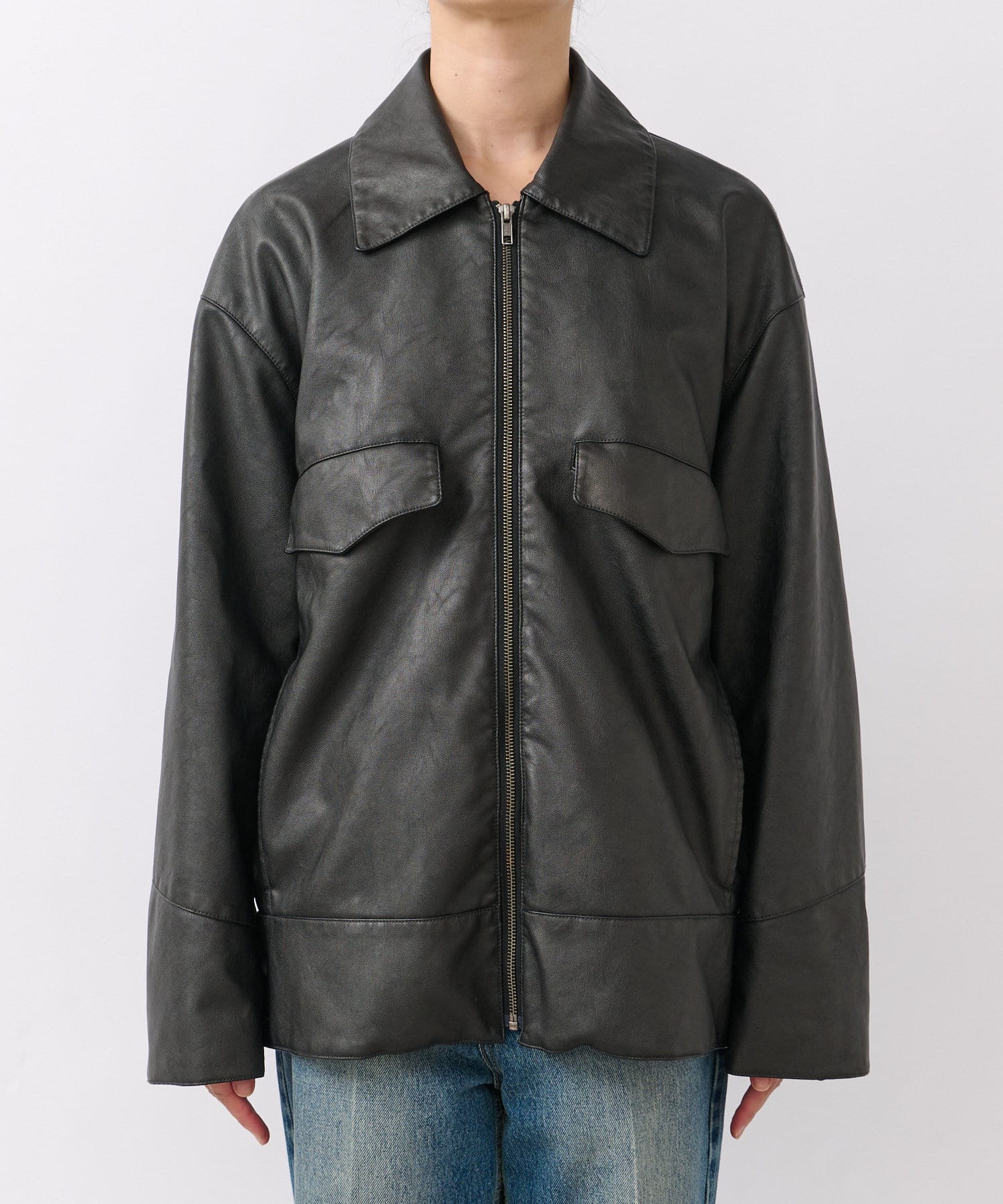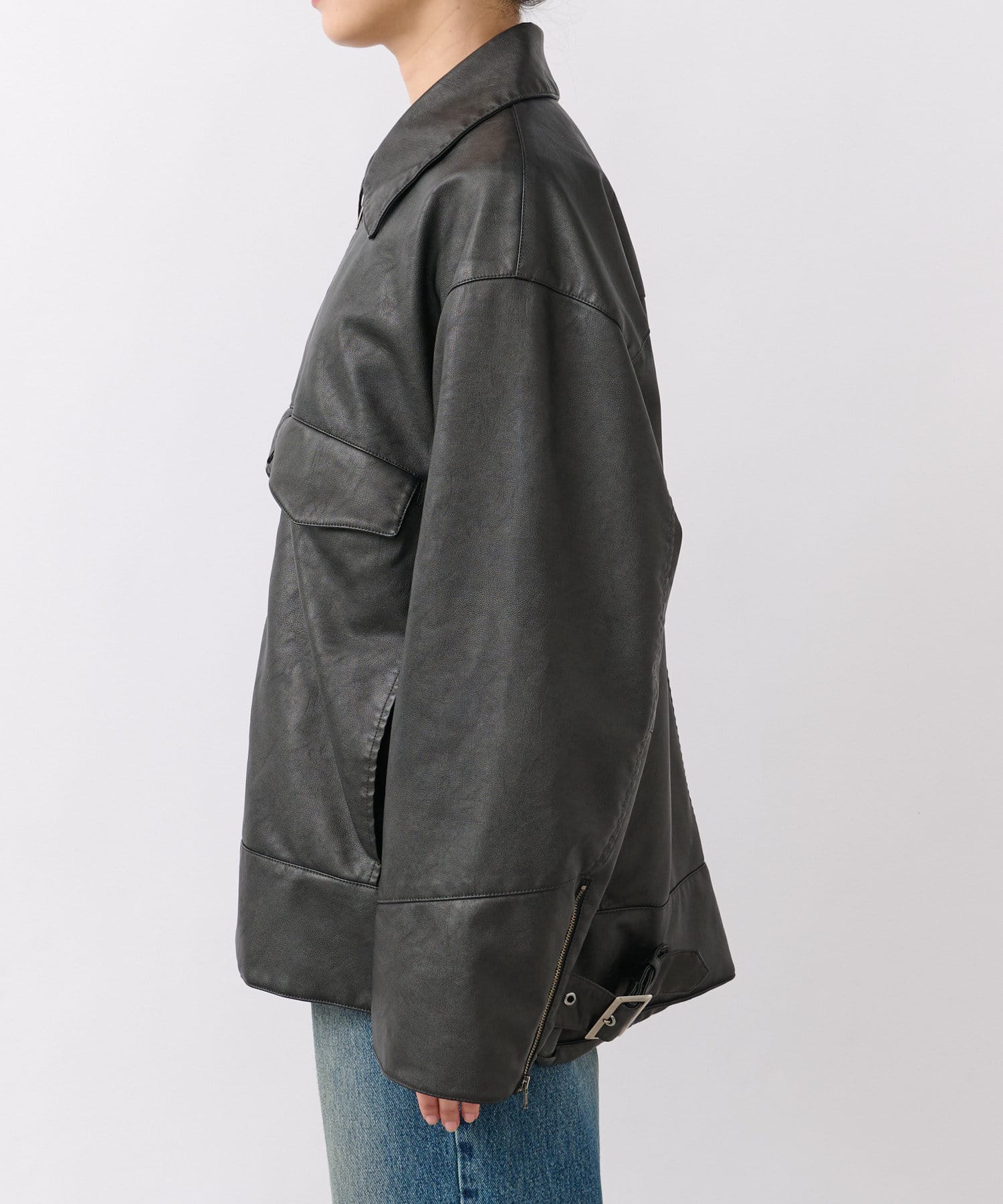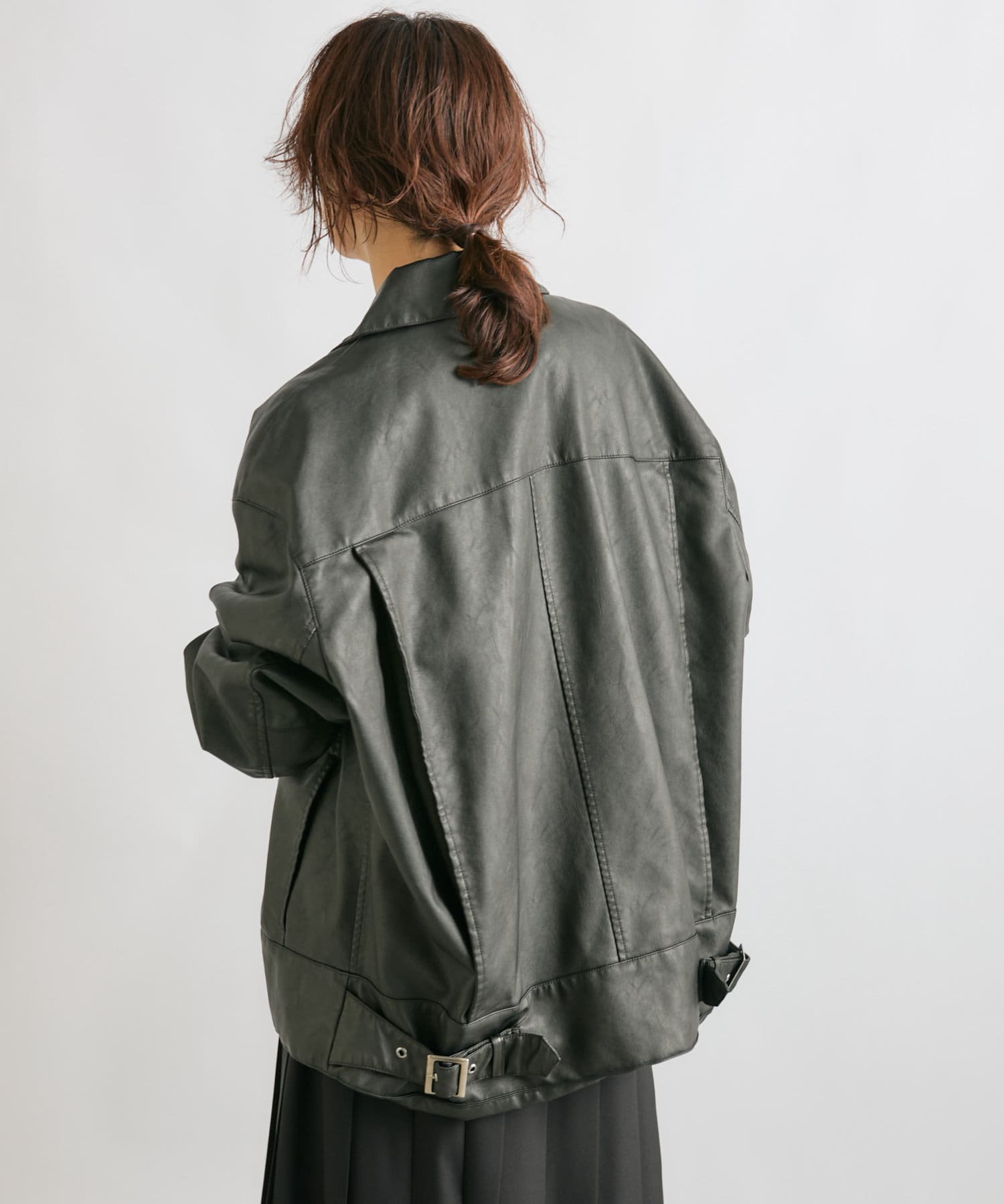【コーデの外しに◎】ヴィンテージレザーライクジャケット