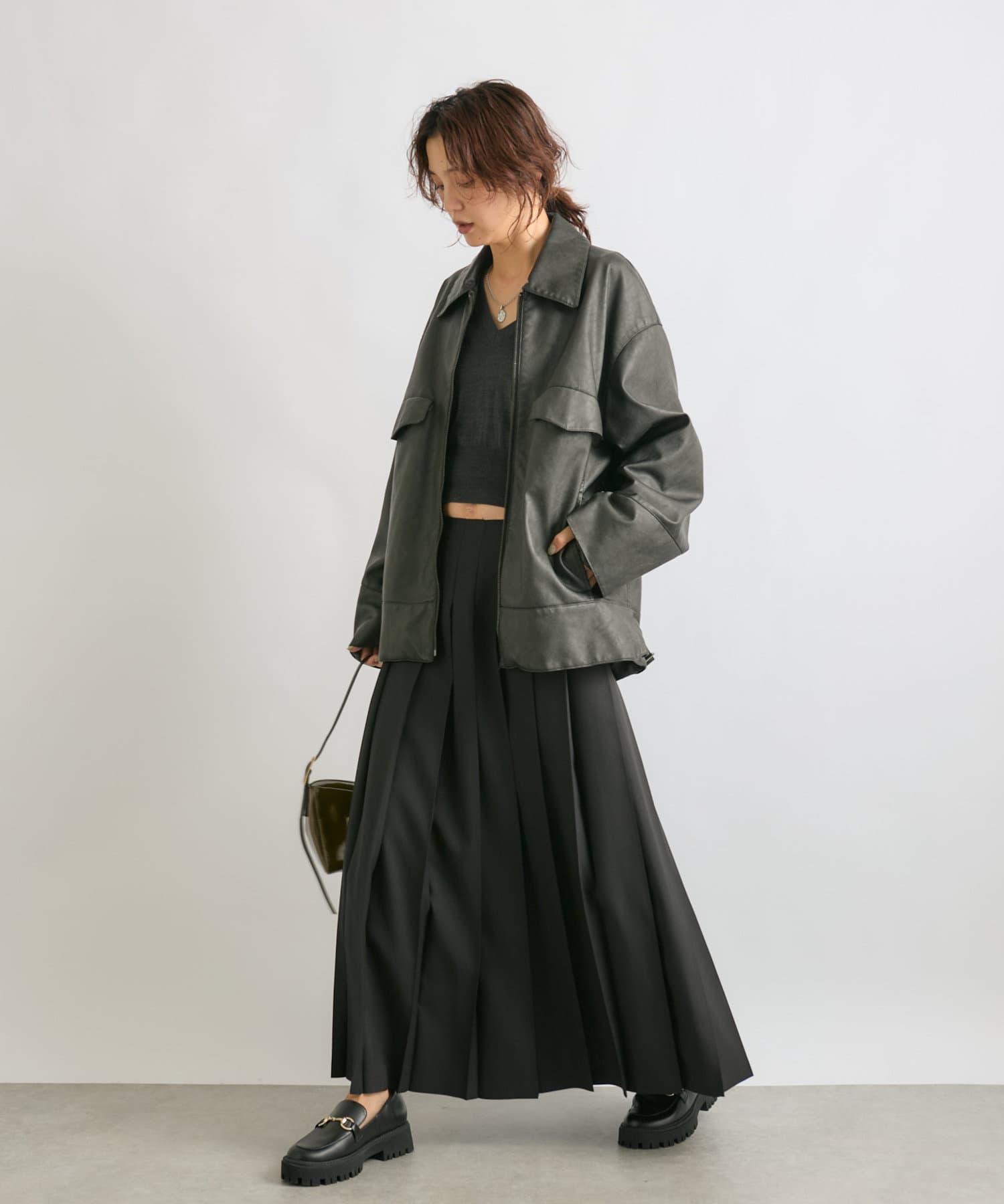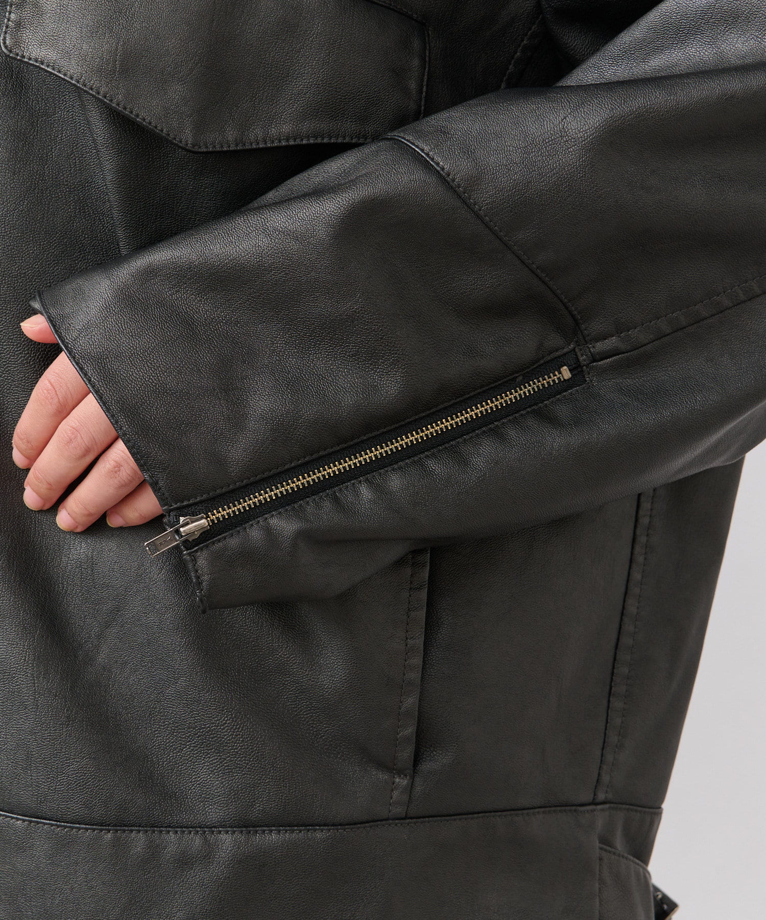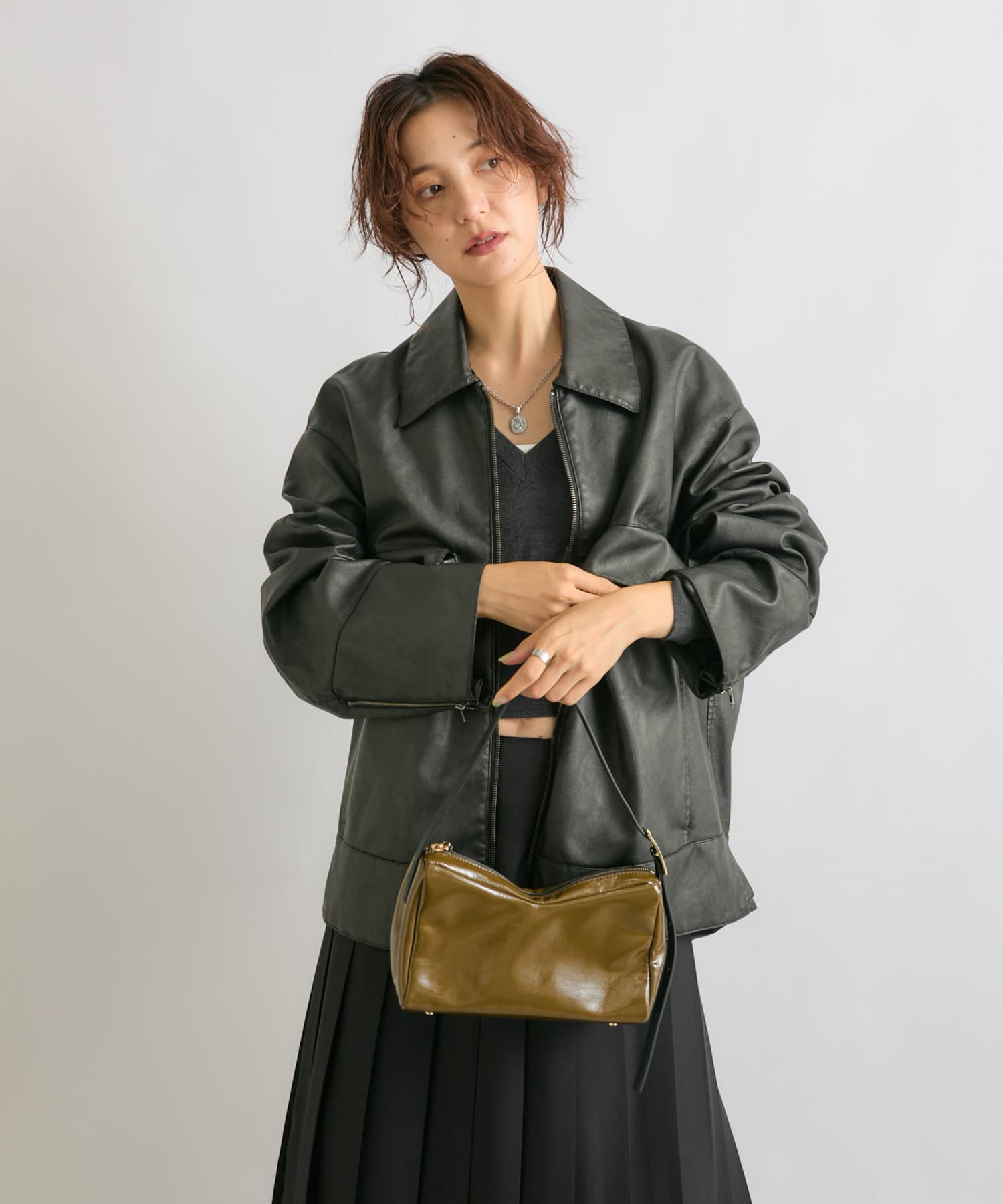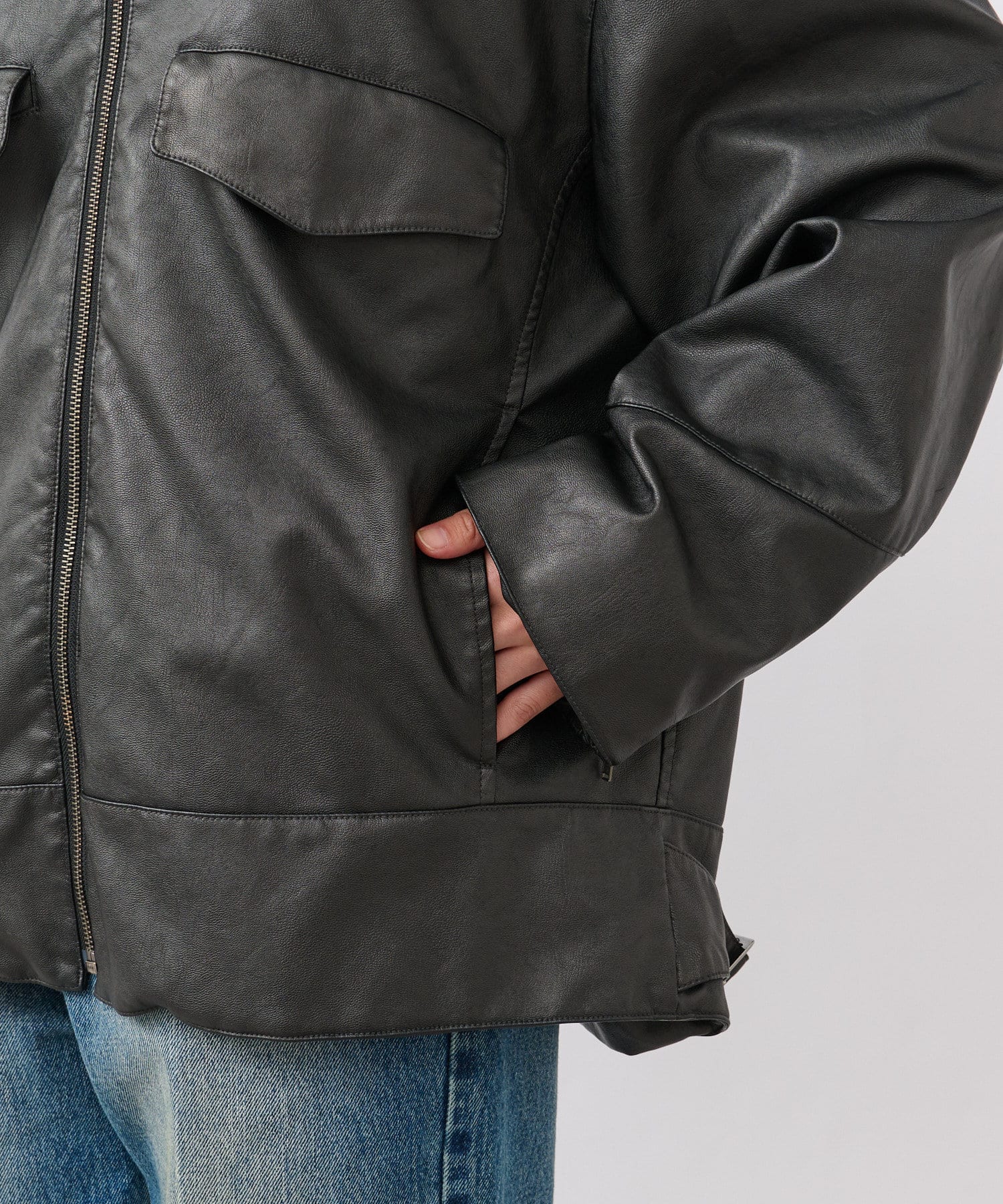 【コーデの外しに◎】ヴィンテージレザーライクジャケット