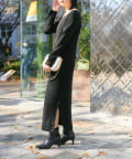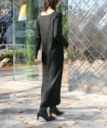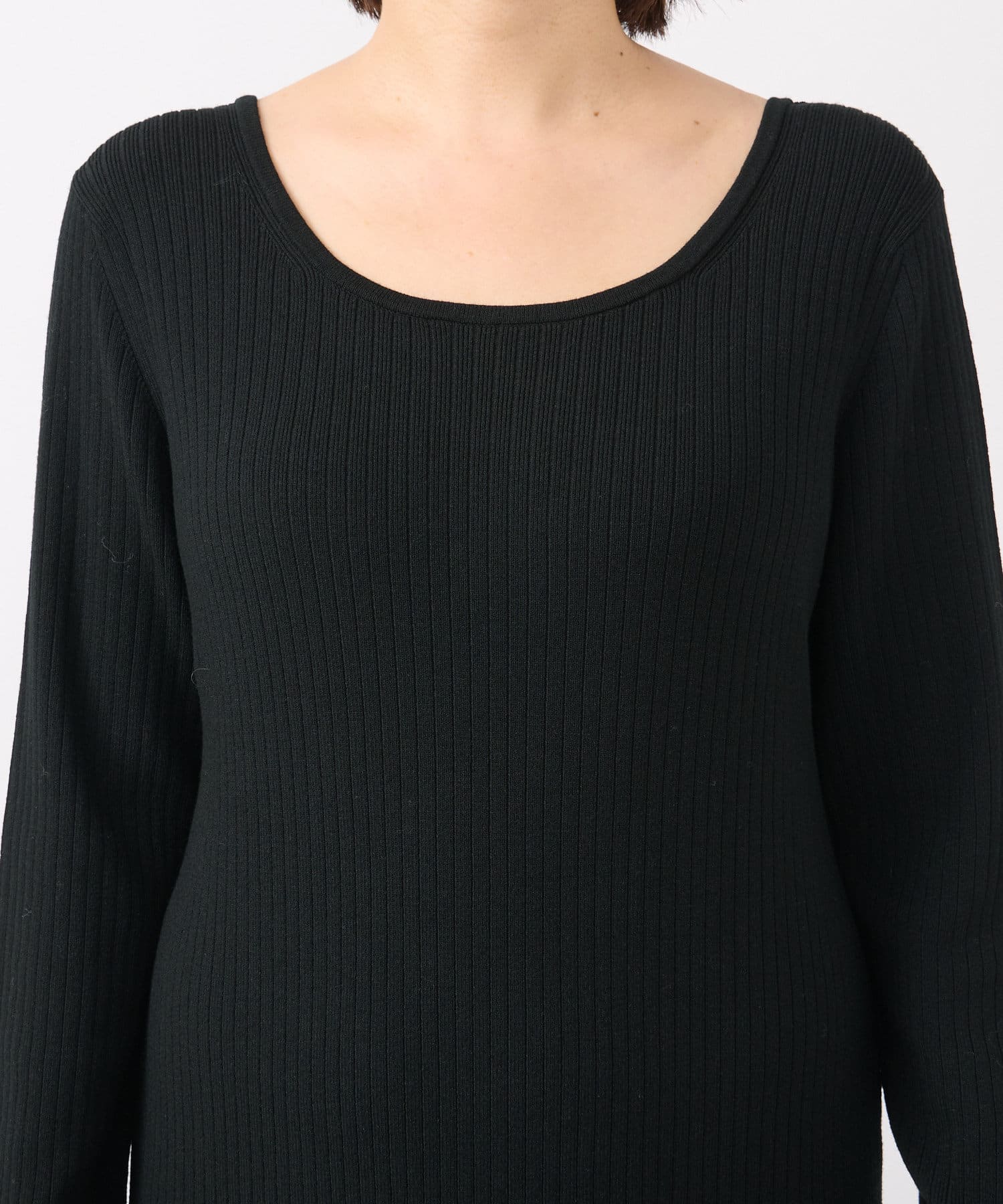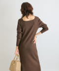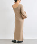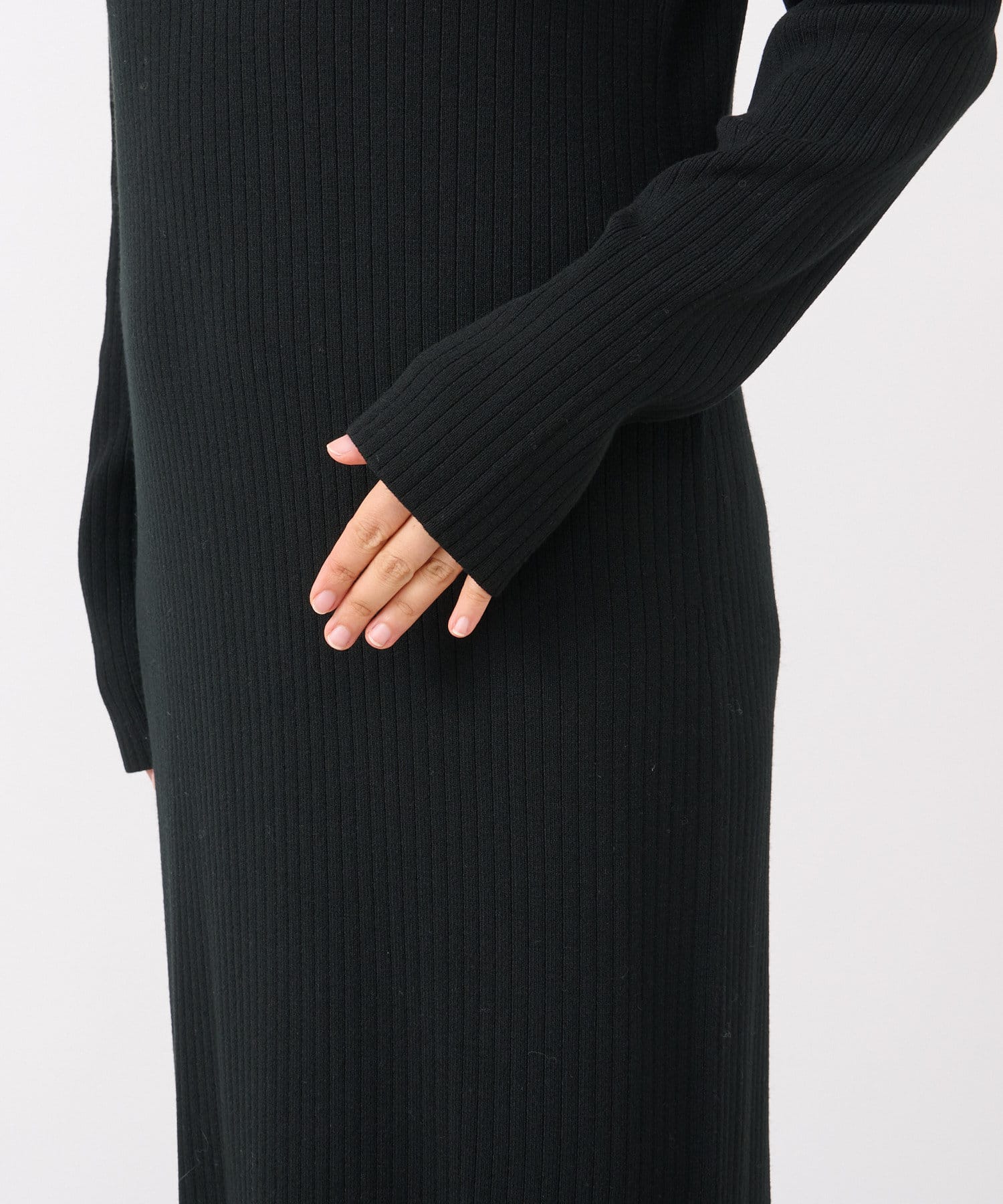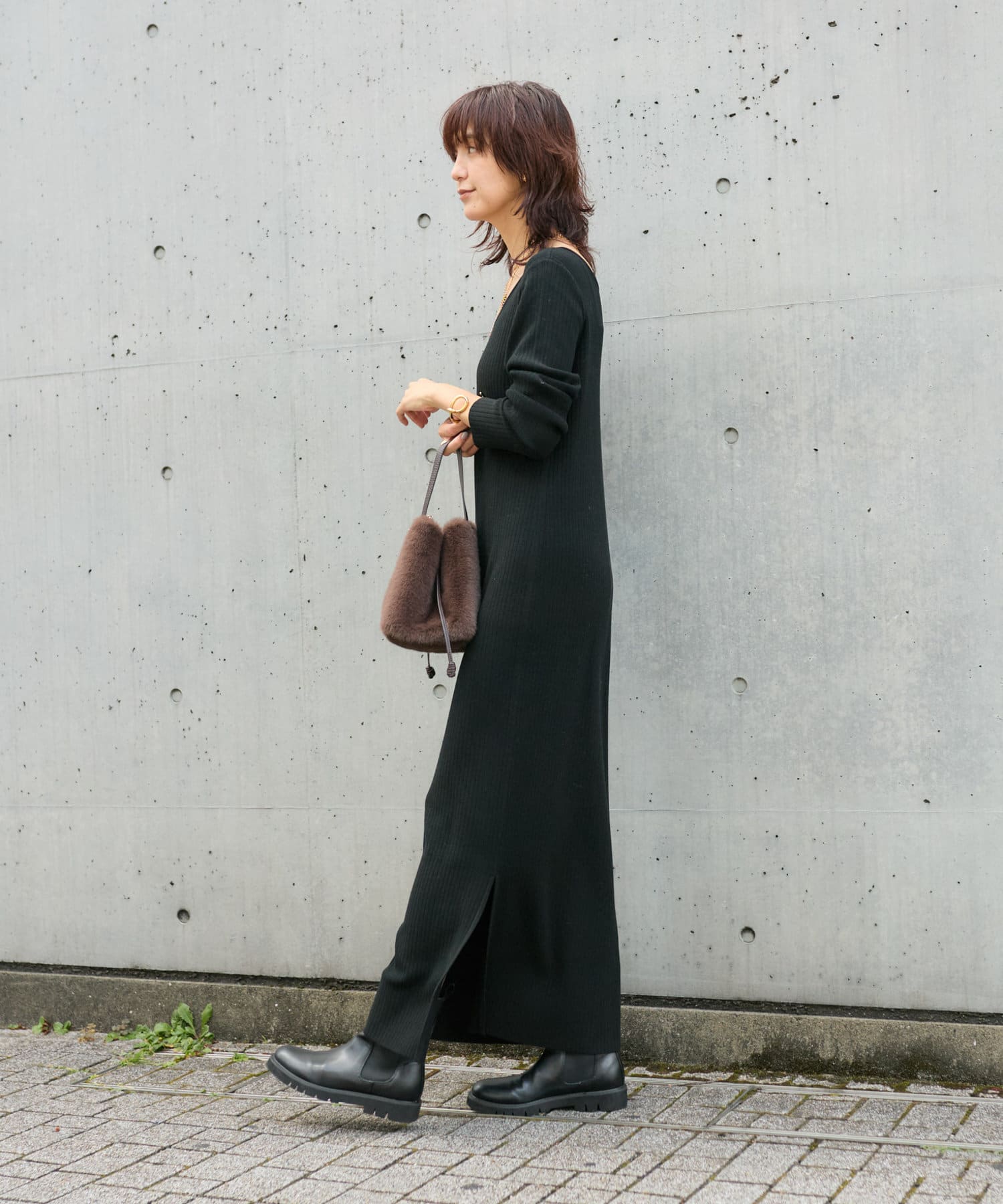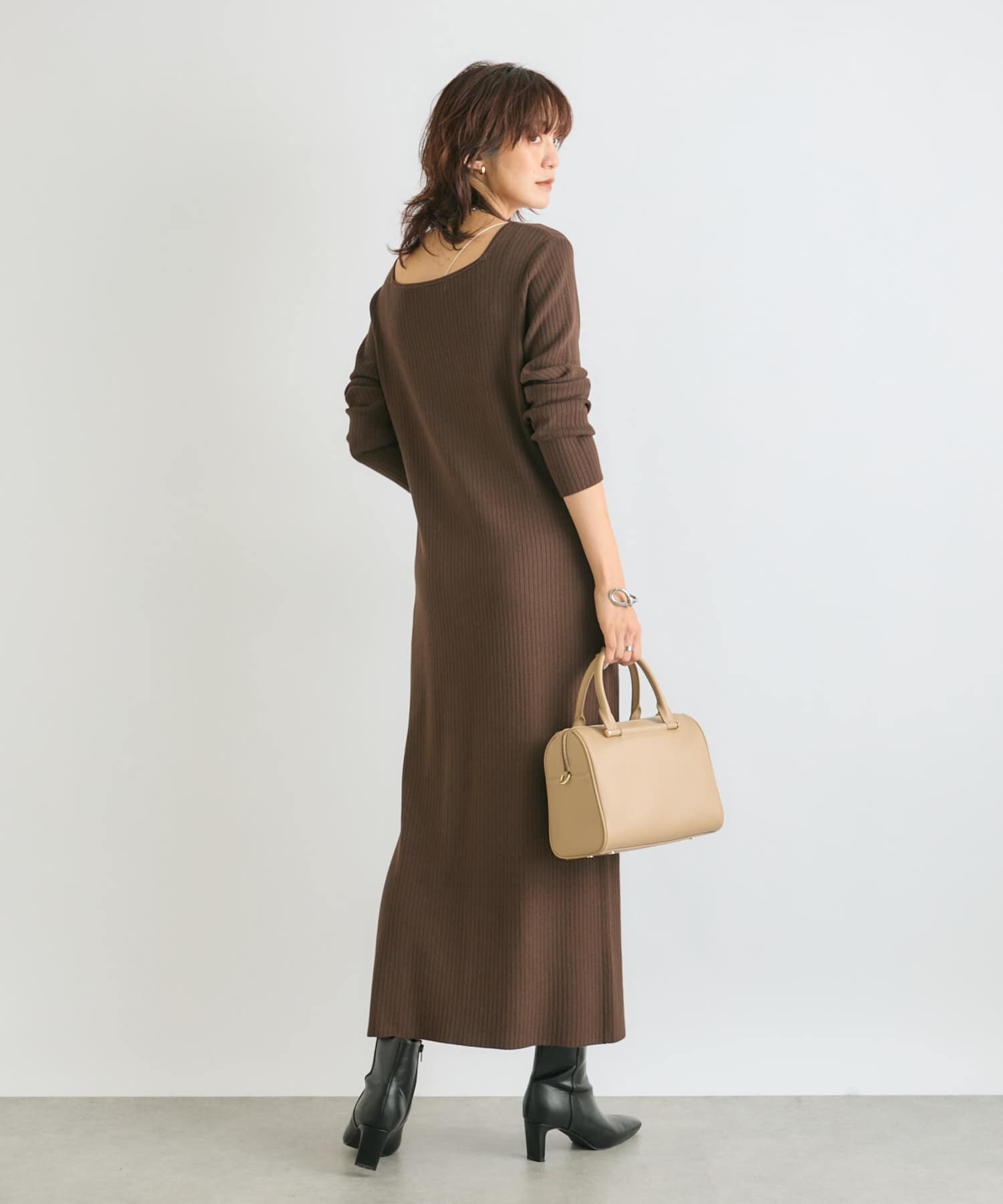 ラウンドネックとスクエアネックの前後2WAYで着用できるシンプルなリブニットワンピ。