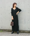 肉感を拾いにくく、ストレッチ性抜群の編地と程よく体から離れるサイジングで不思議と細見えするワンピースです。