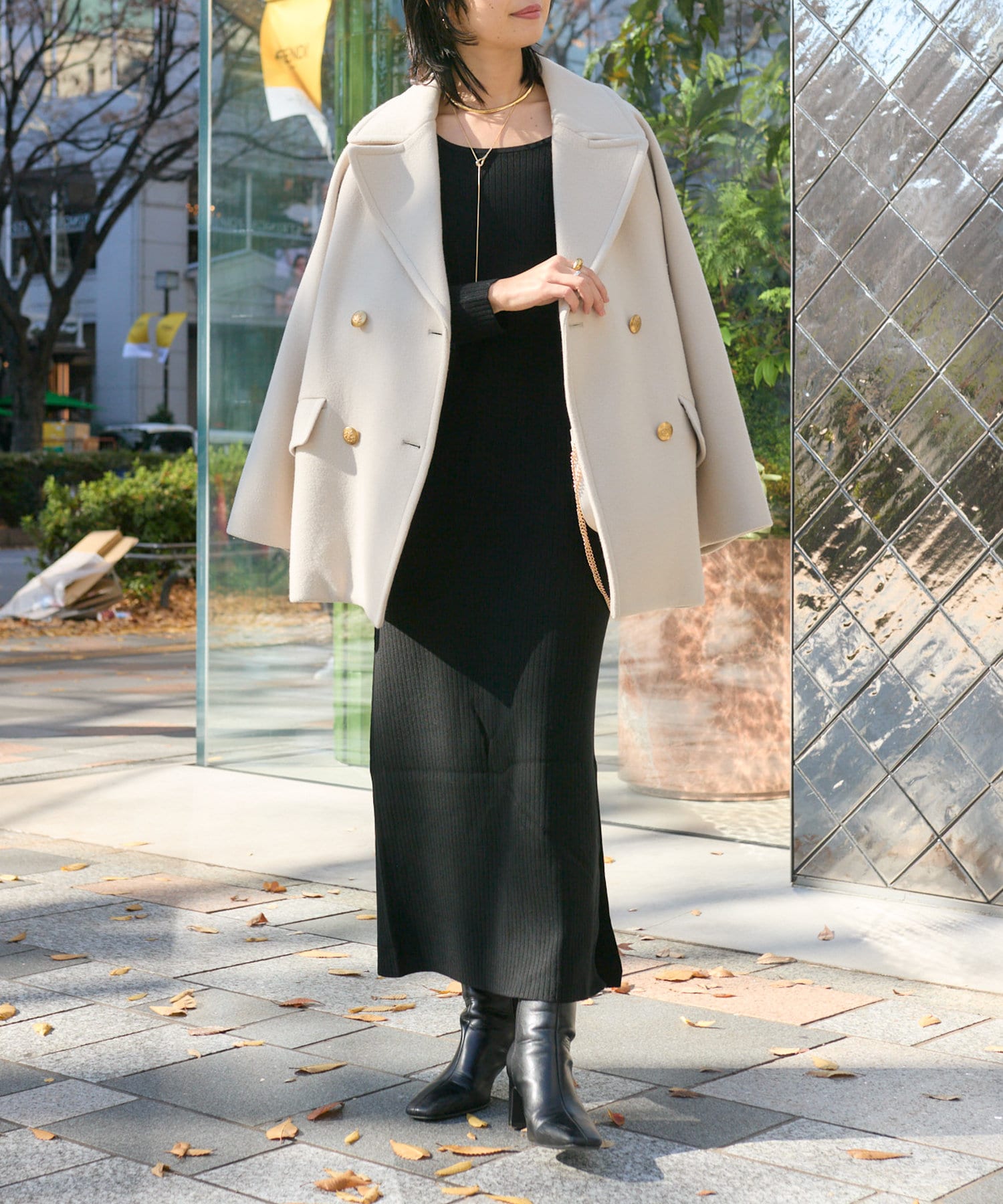 157㎝~160㎝前半の方でロング丈として着用できるサイズ感です。