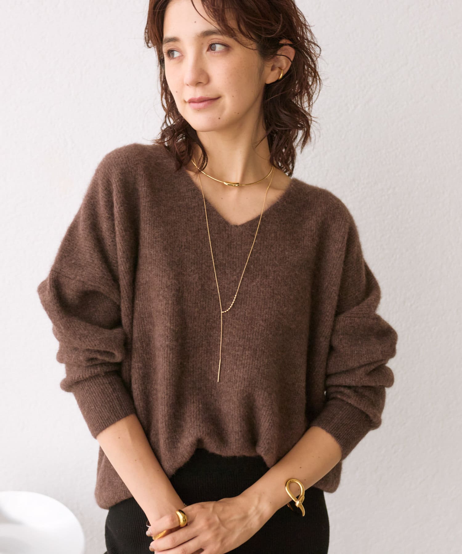 ショートネックレス、チョーカーとのレイヤードスタイルもおすすめです。