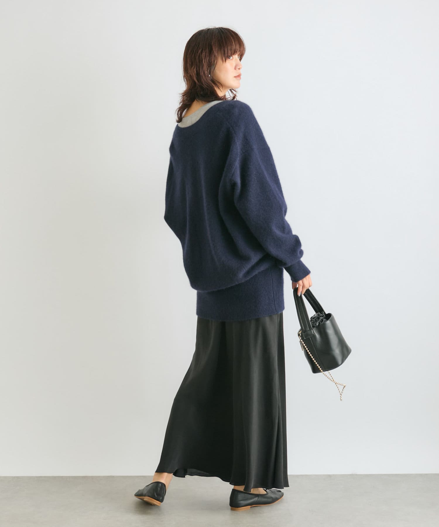 ※敏感肌の方は、ニットが直接肌に触れることでチクチク感じる場合がございますので、その場合はインナーにカットソーなどを合わせていただくことをおすすめいたします。