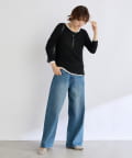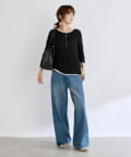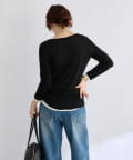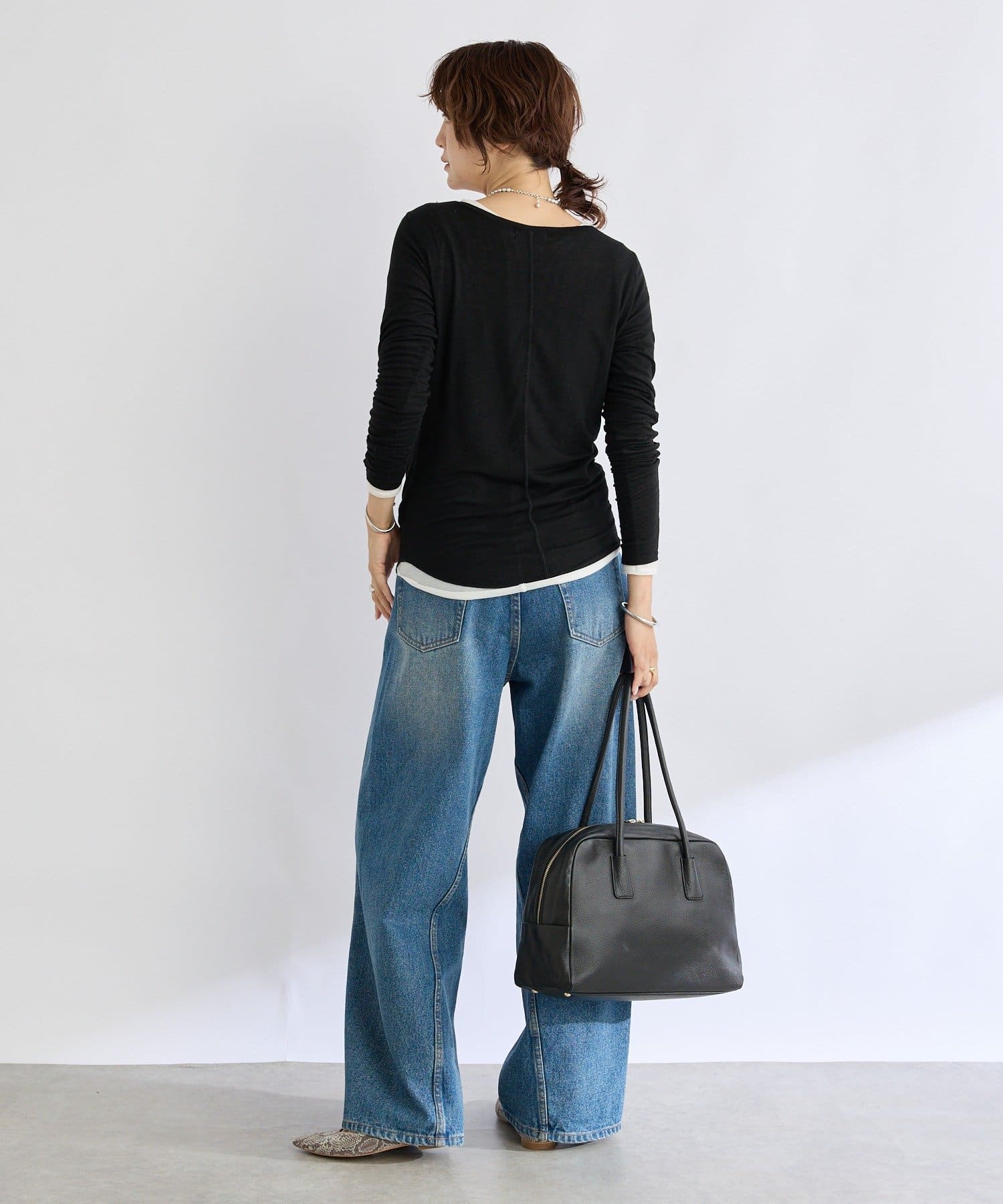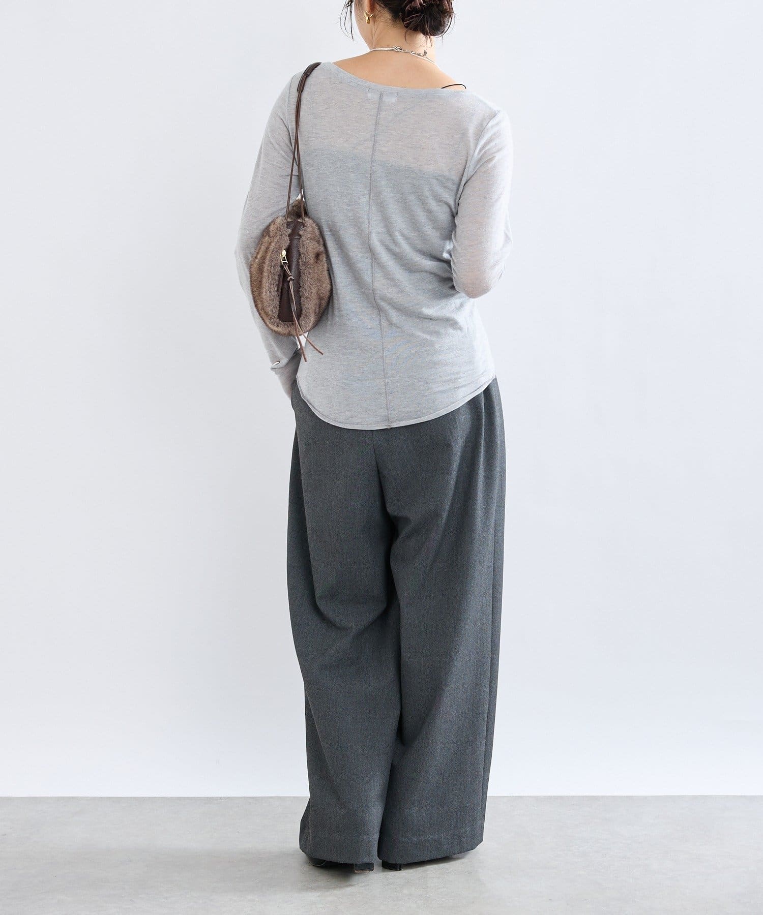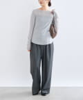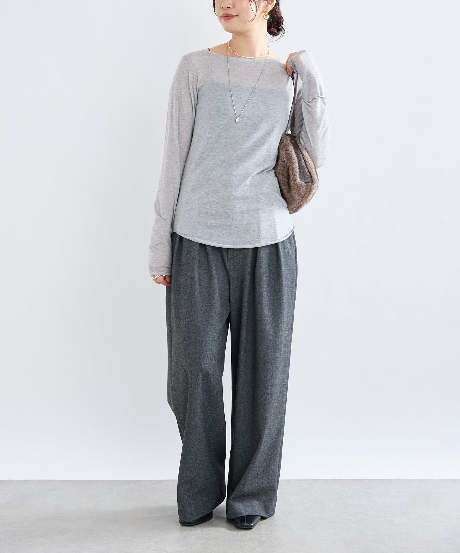 生地の柔らかい落ち感がニュアンスを出してこなれた印象に。ボートネックがデコルテラインを綺麗に見せてくれるアイテムです。