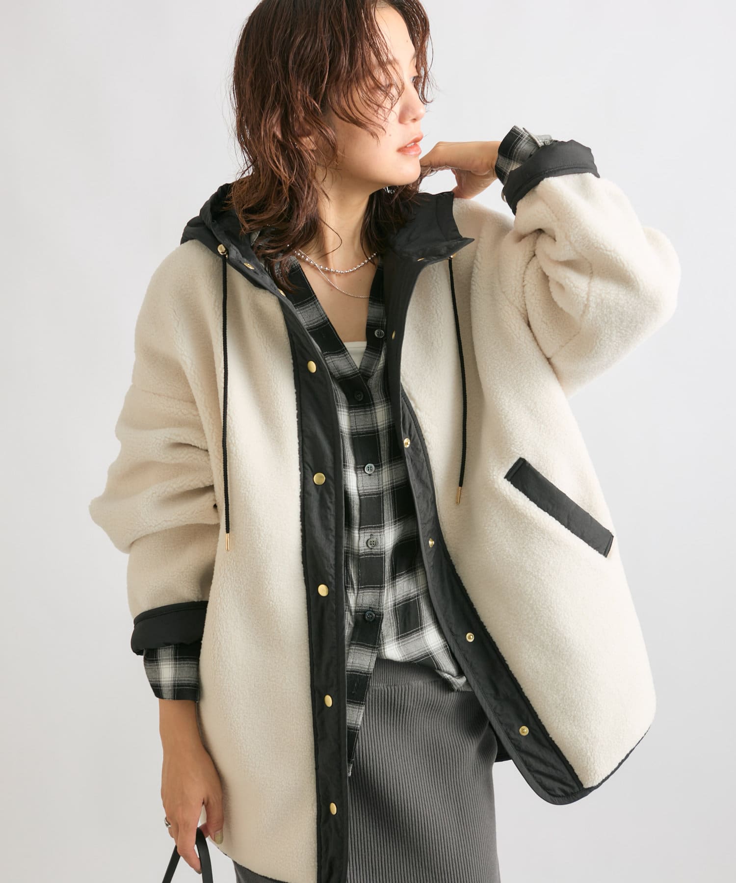 予約【感動の軽さ895g!/裏地付き/防寒/車移動にも◎】フードボアコート