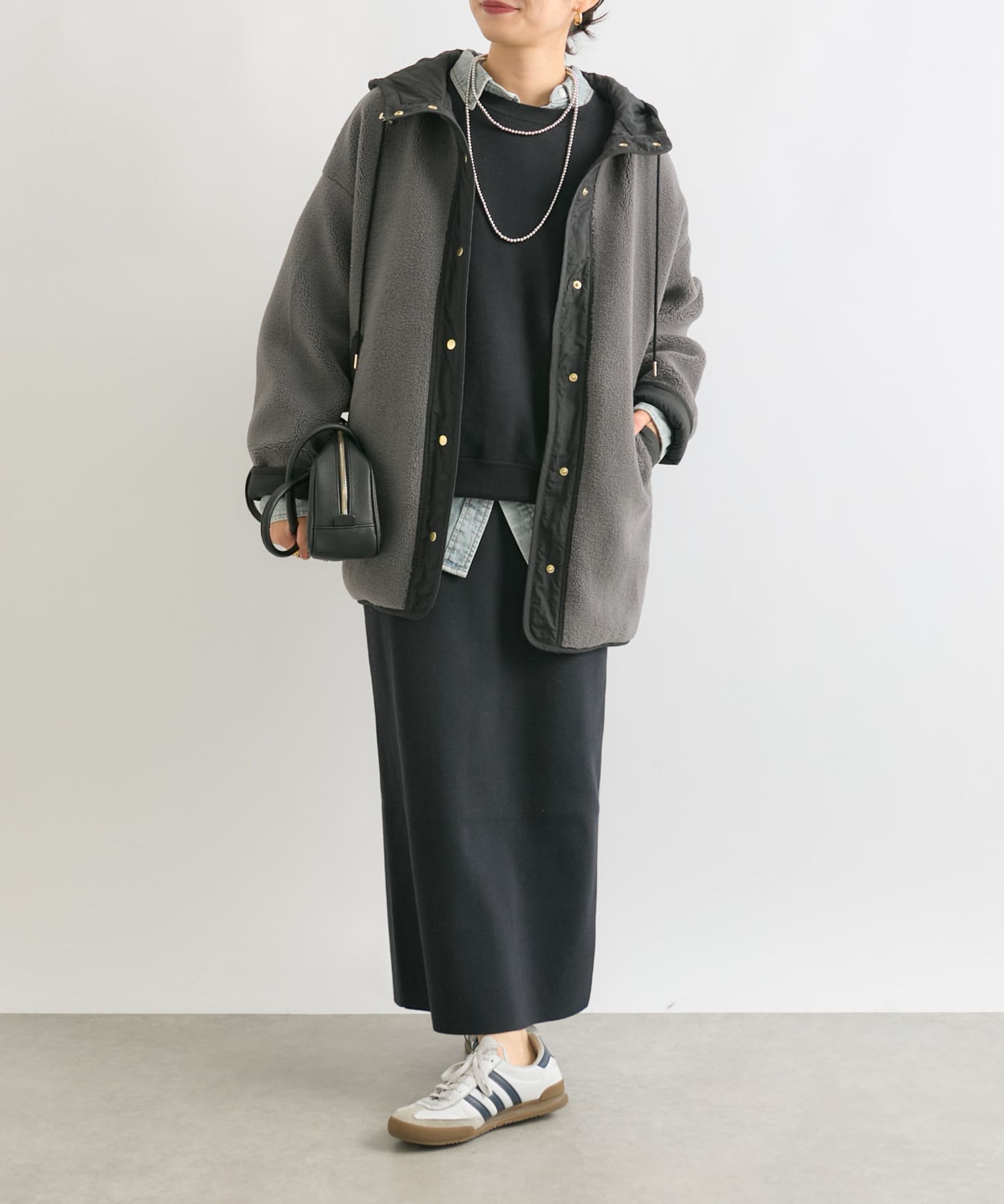 丸みのあるコクーンシルエットが女性らしく、お尻が隠れる着丈のため体系カバー効果も抜群。