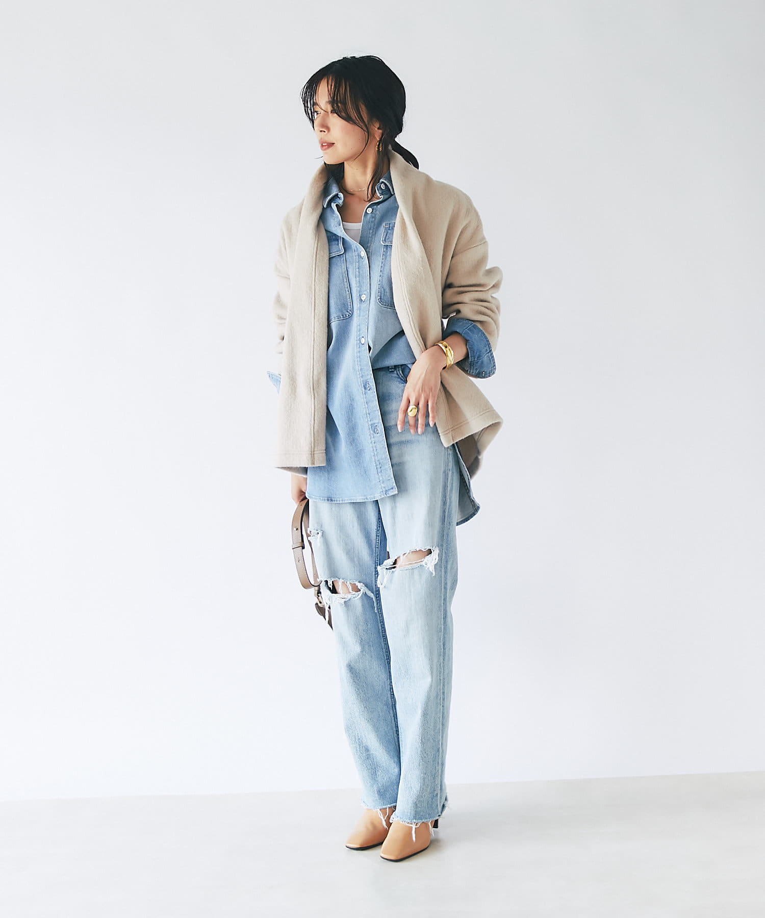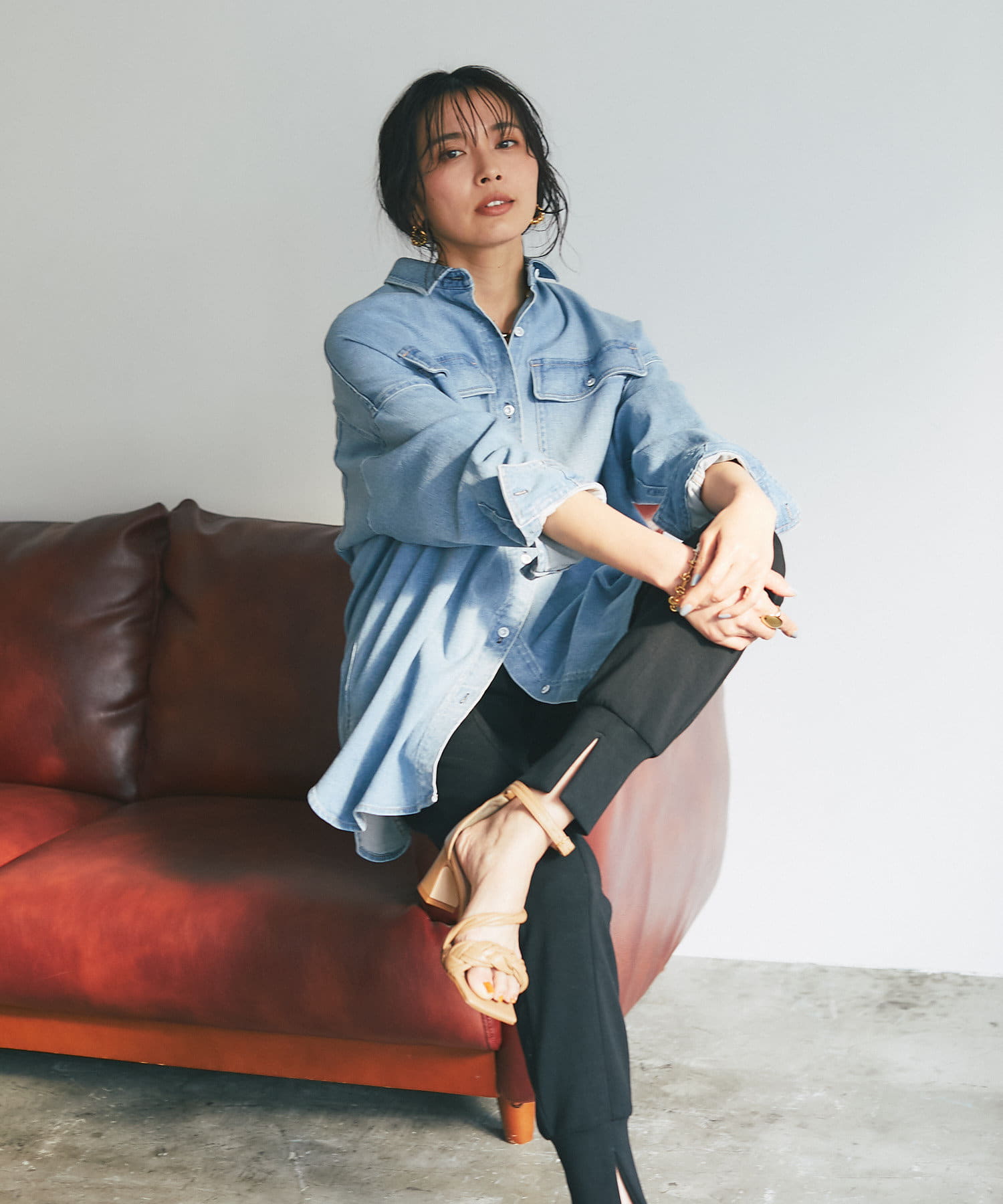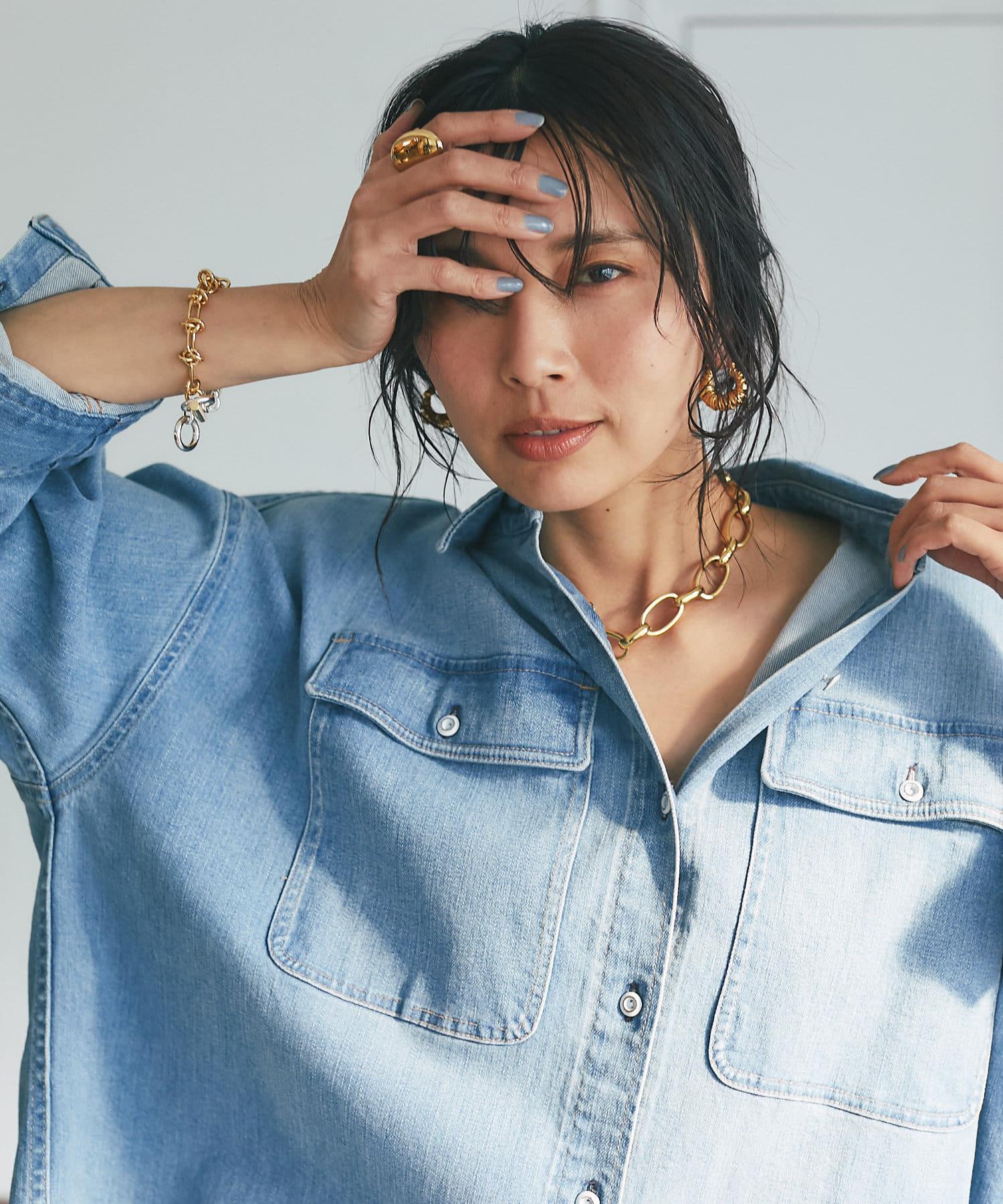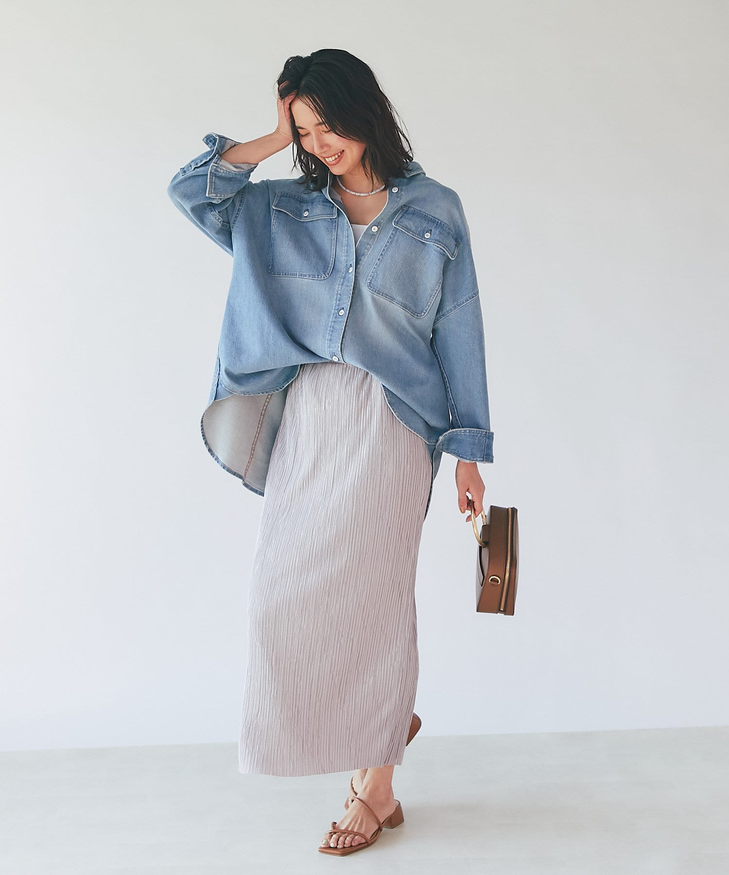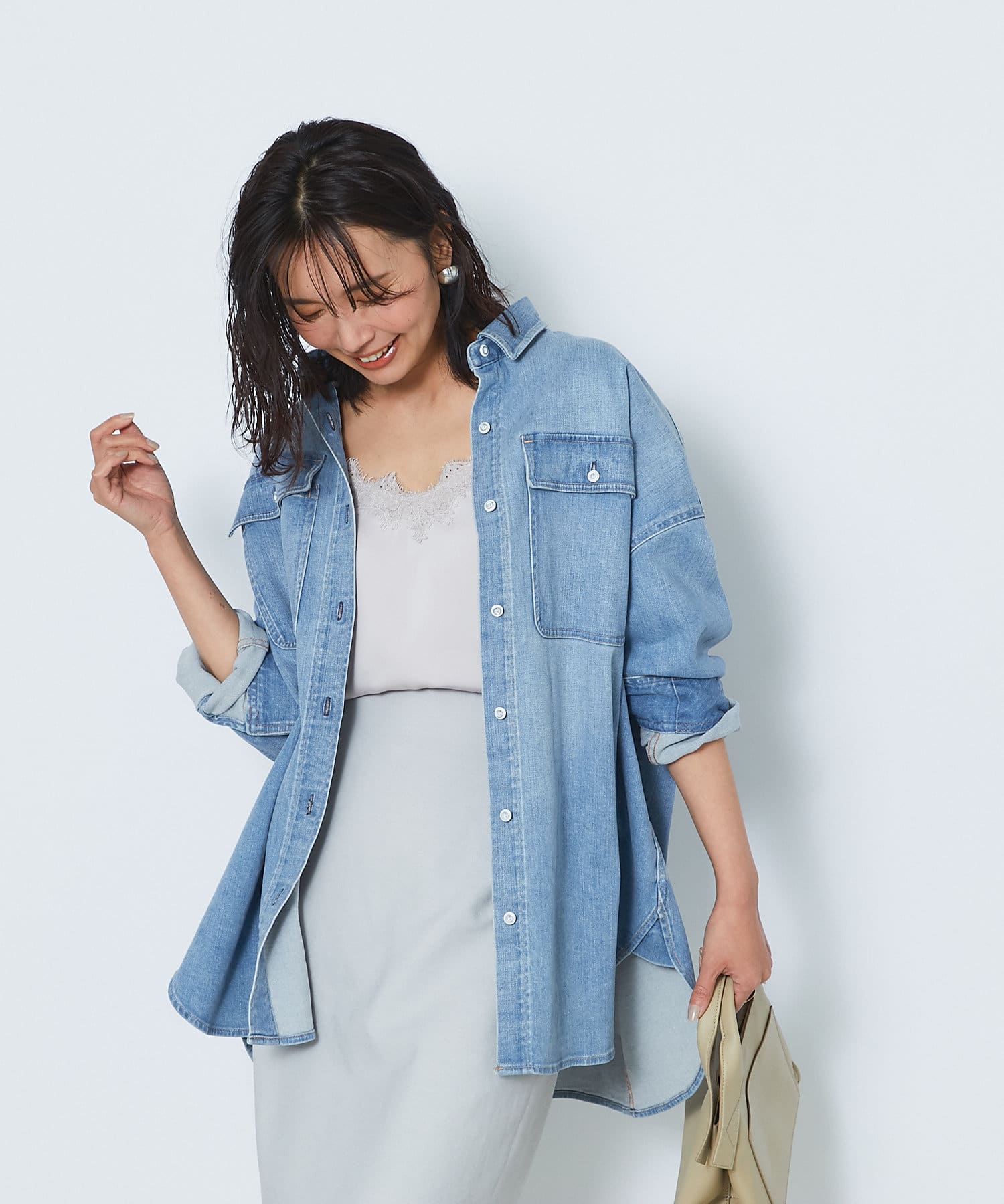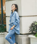 気になる腰回りやヒップラインもすっぽり隠してくれるロングデニムシャツ「Almond」