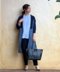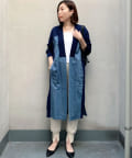 一枚でセンスの高さを感じさせるアイテムは、インナー、ボトムスともにシンプルなものでまとめらるため、抵抗感なくさらっと着用頂けるアイテム。普段からシンプルなコーデが多い方こそ、アクセントをつけたいときに活躍します。デニムオンデニムコーデも洗練されたモードな雰囲気に。