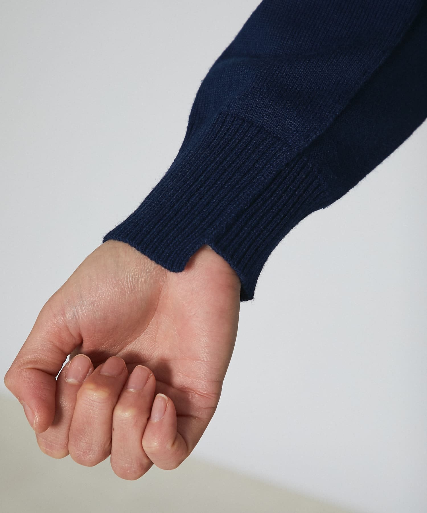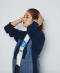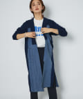 他にはないデニムをドッキングしたニットカーデ。異素材切替のアイテムは一転で都会的なスタイルに仕上げてくれる。スッキリとした衿ぐりは、さらっと着て頂けるのでアウターまで要らないときに重宝するアイテム。カーディガンでありながらポケット付きなのも嬉しいポイント。