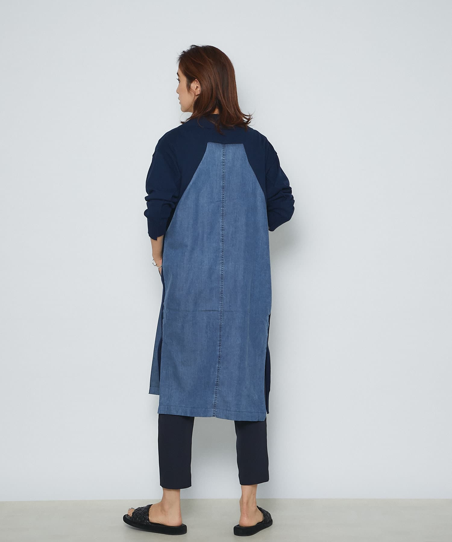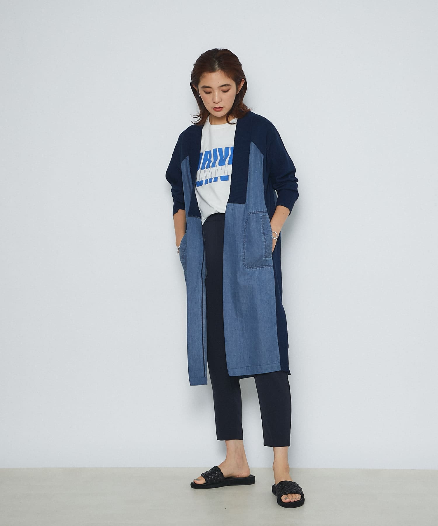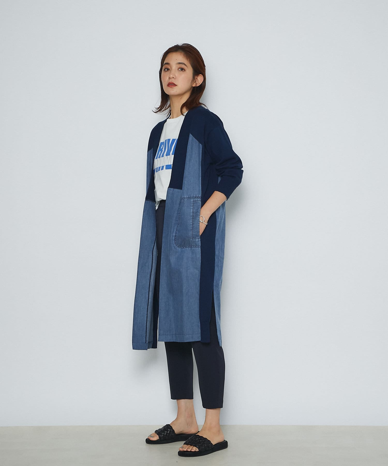 【一枚でお洒落にきまる】デニムドッキングロングカーディガン