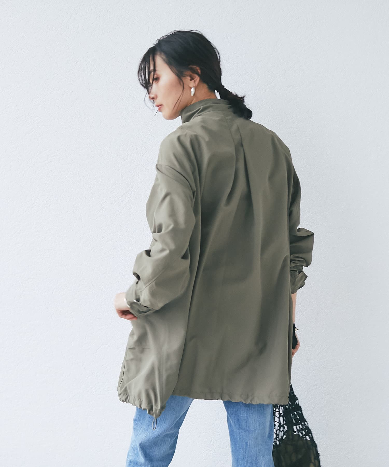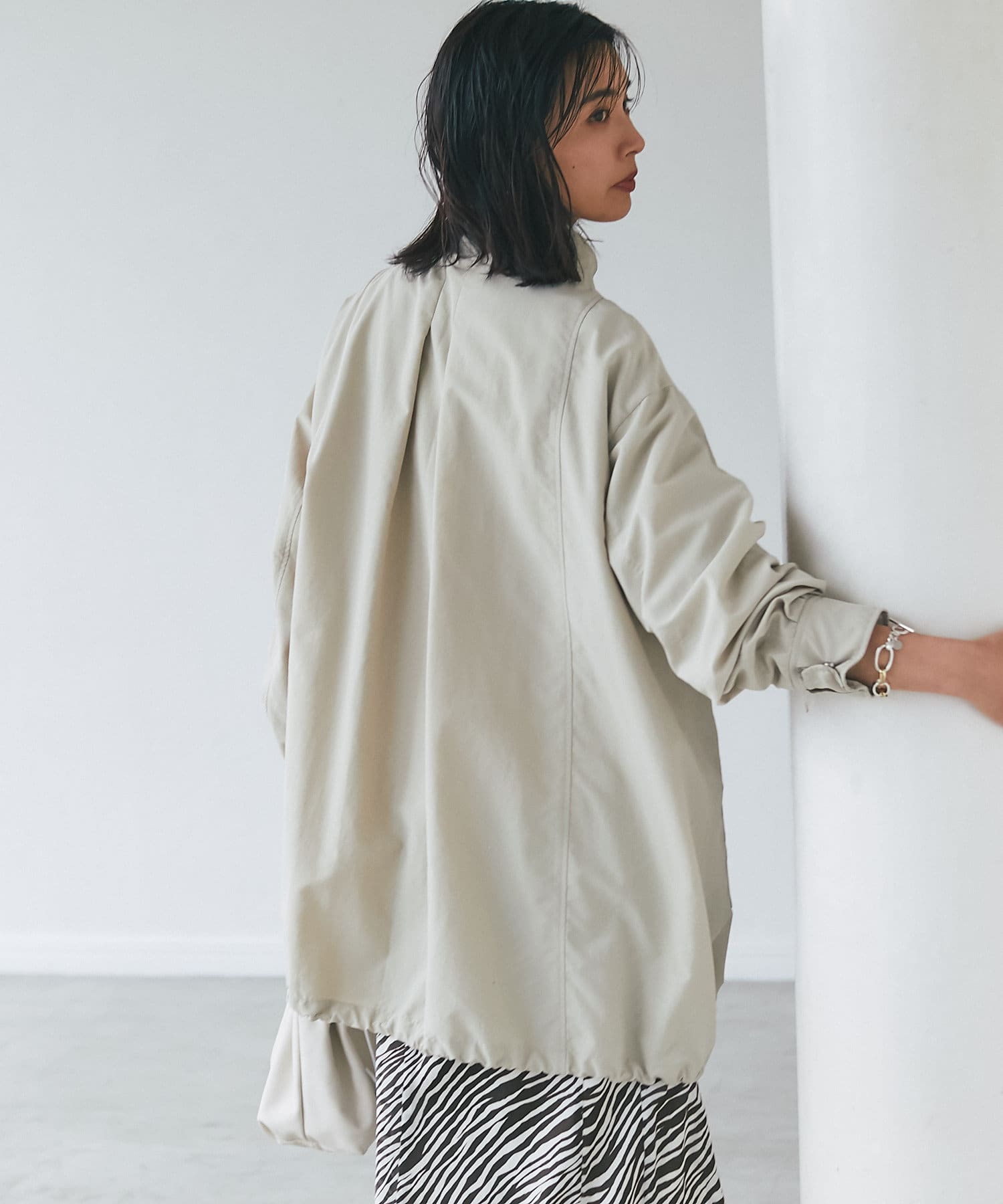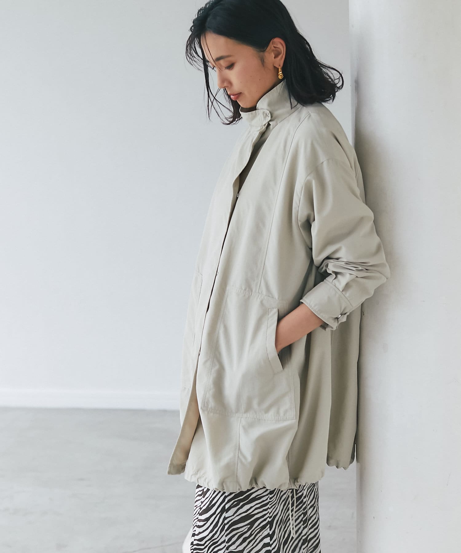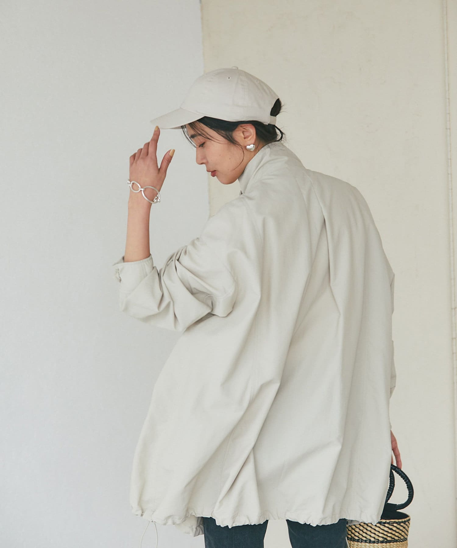 エアリーな着心地のカジュアルコート。裾のコードを絞り、丸みのあるフォルムにしても◎