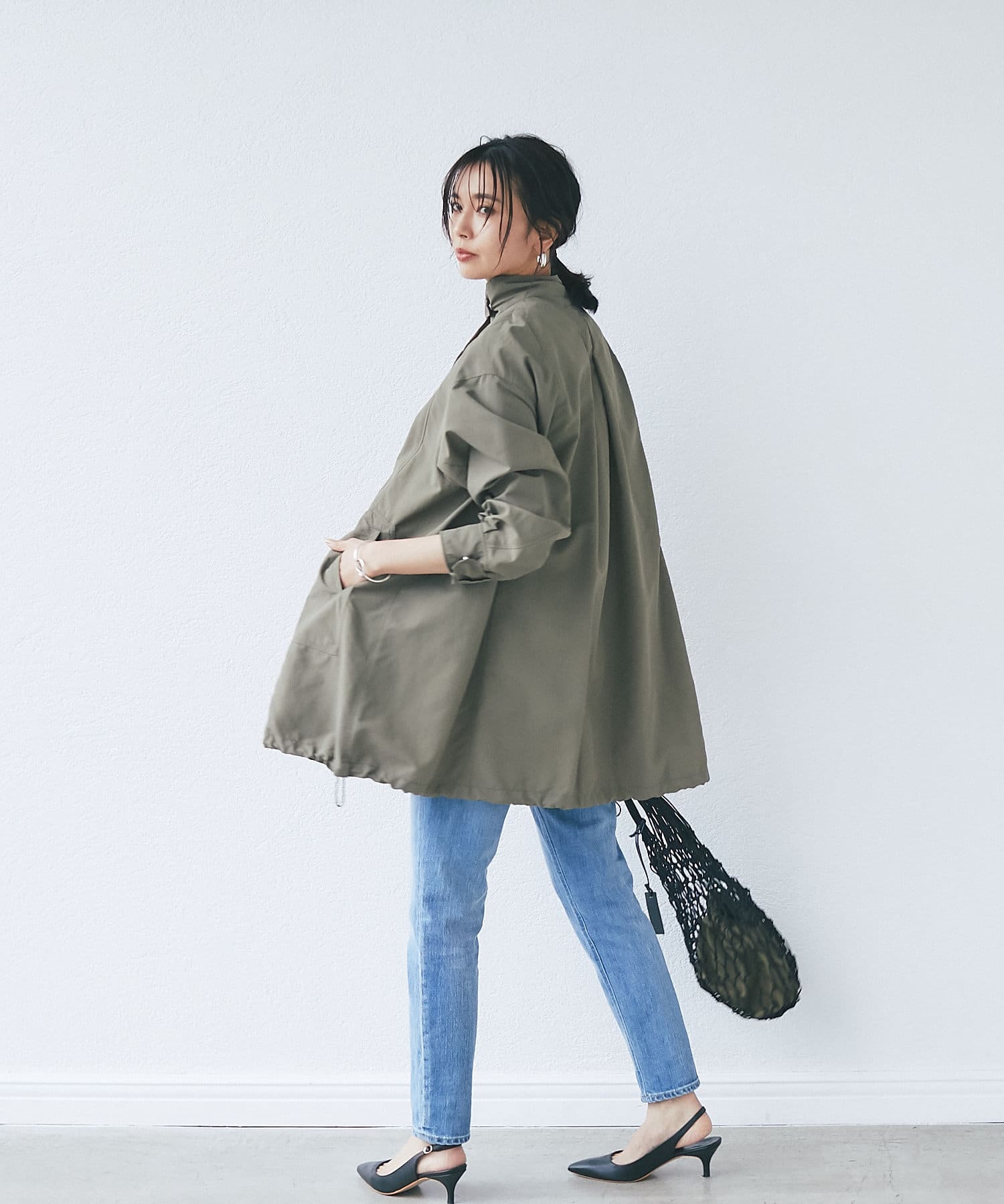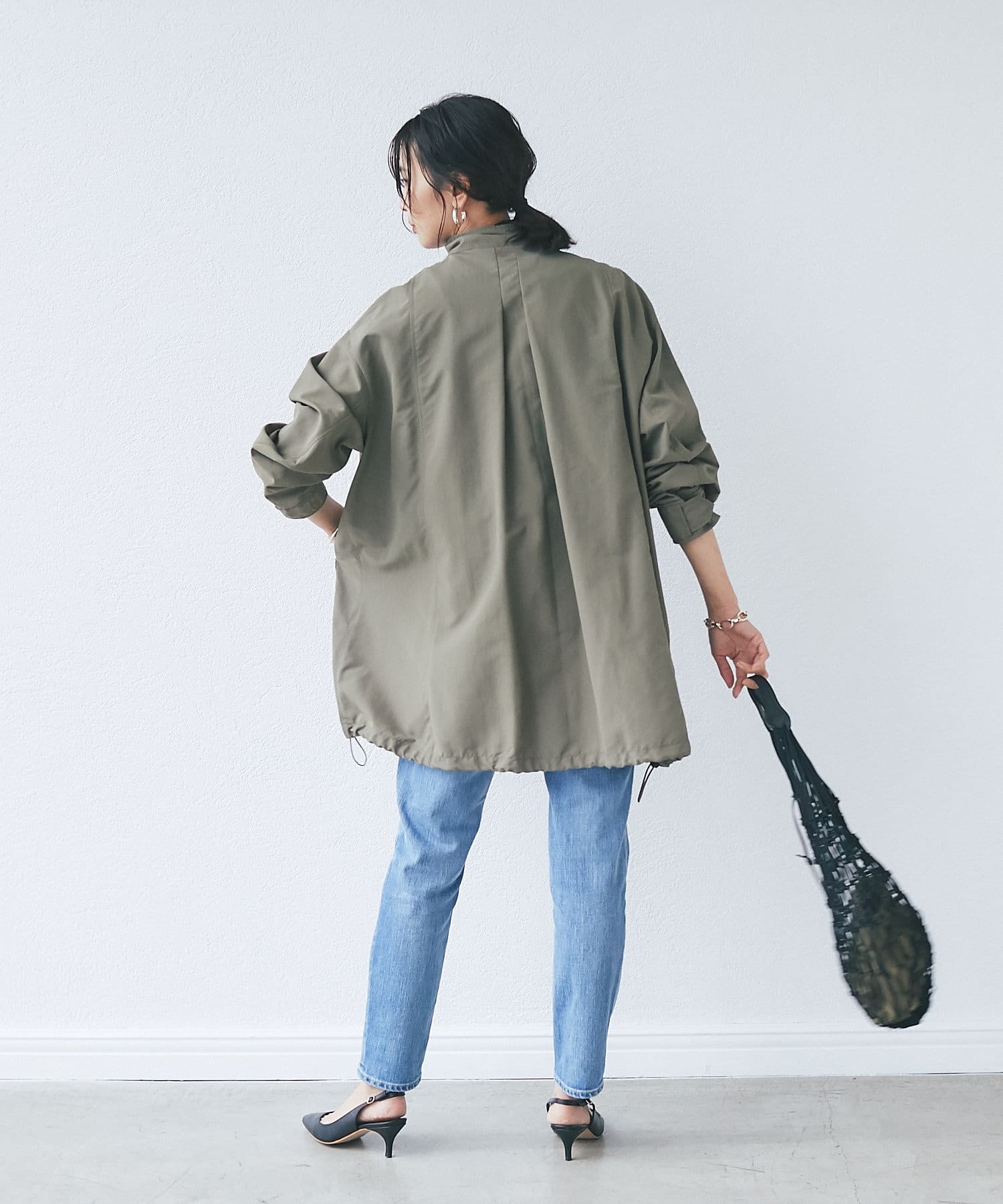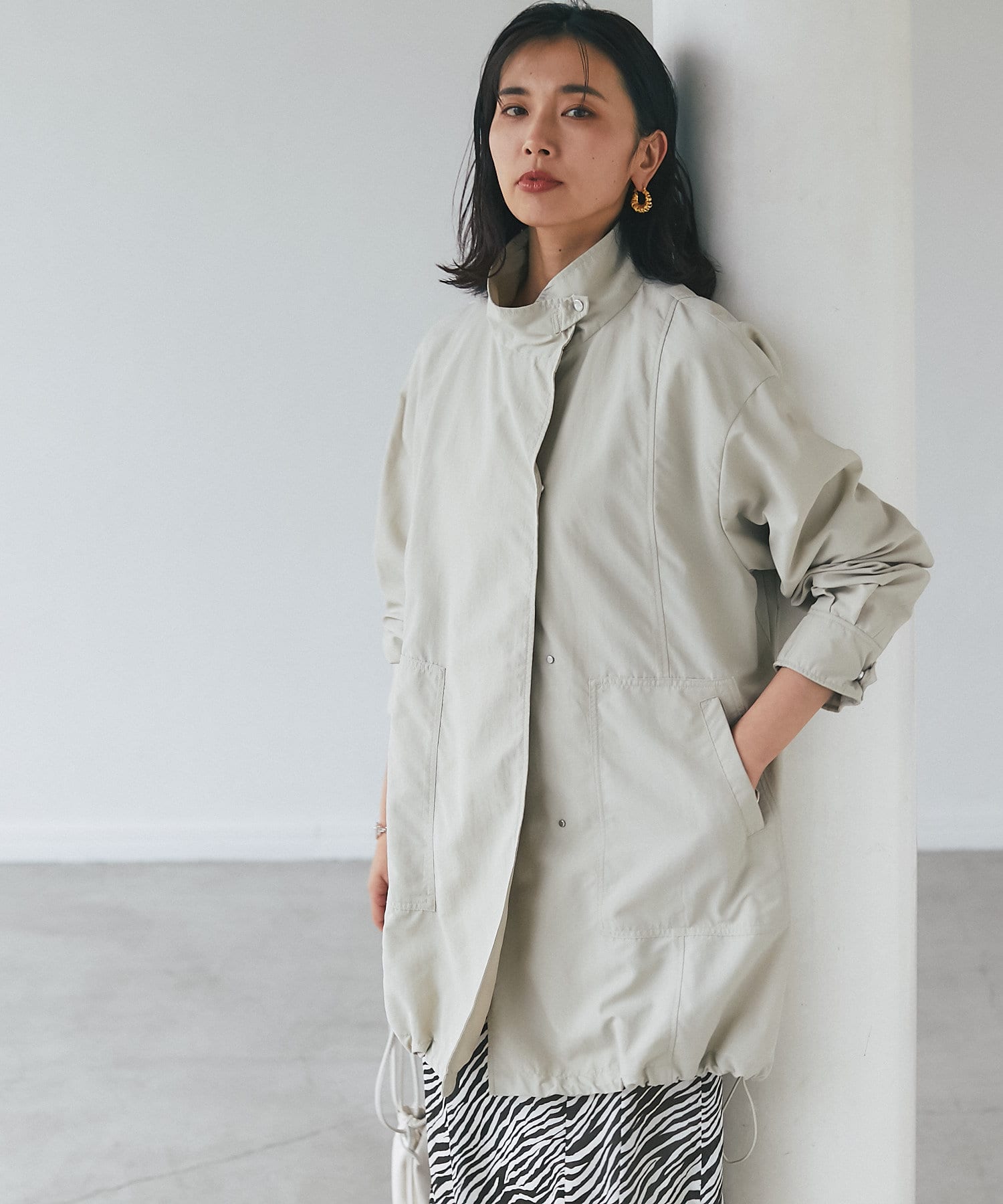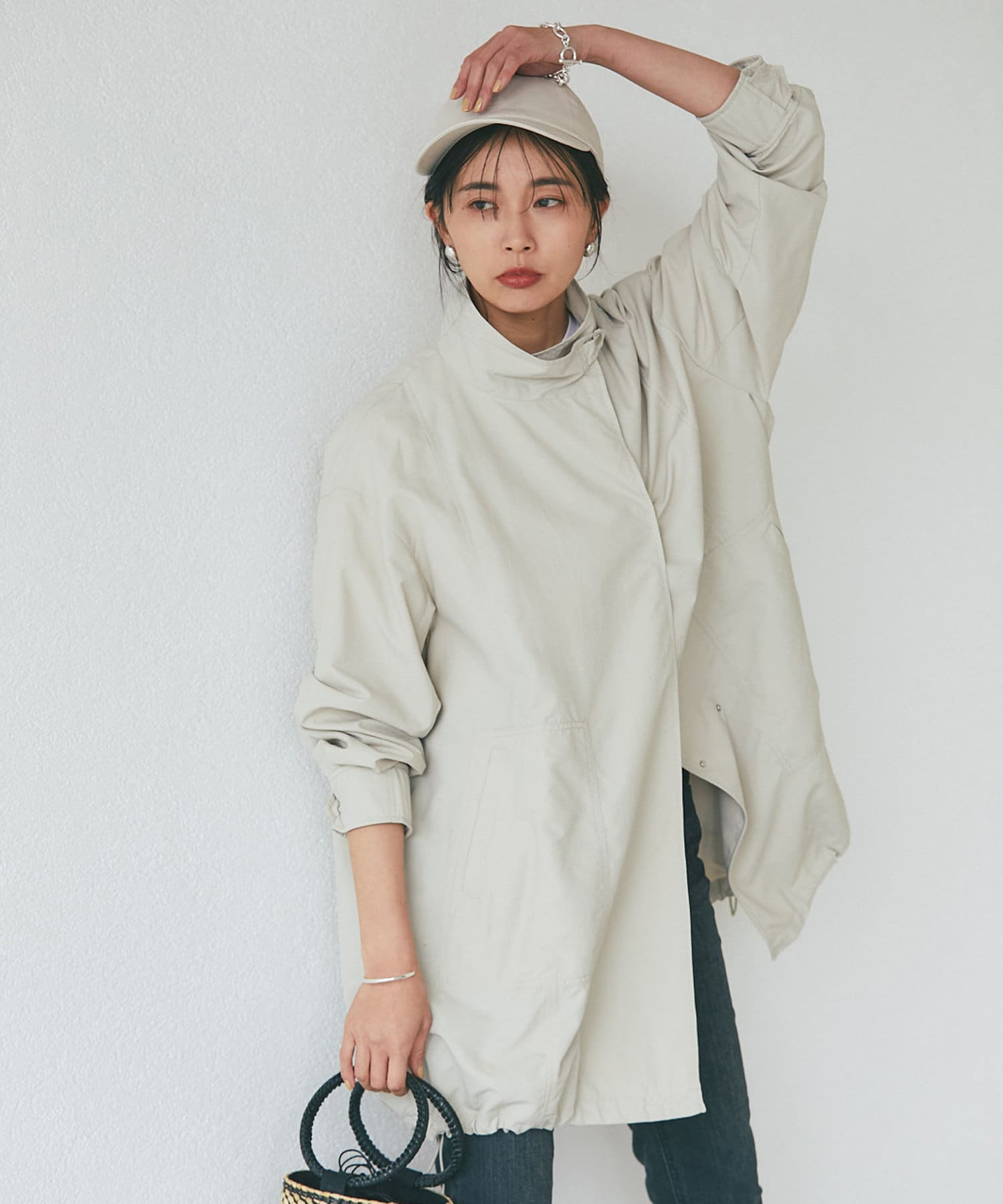 エアリーな着心地のカジュアルコート。裾のコードを絞り、丸みのあるフォルムにしても◎