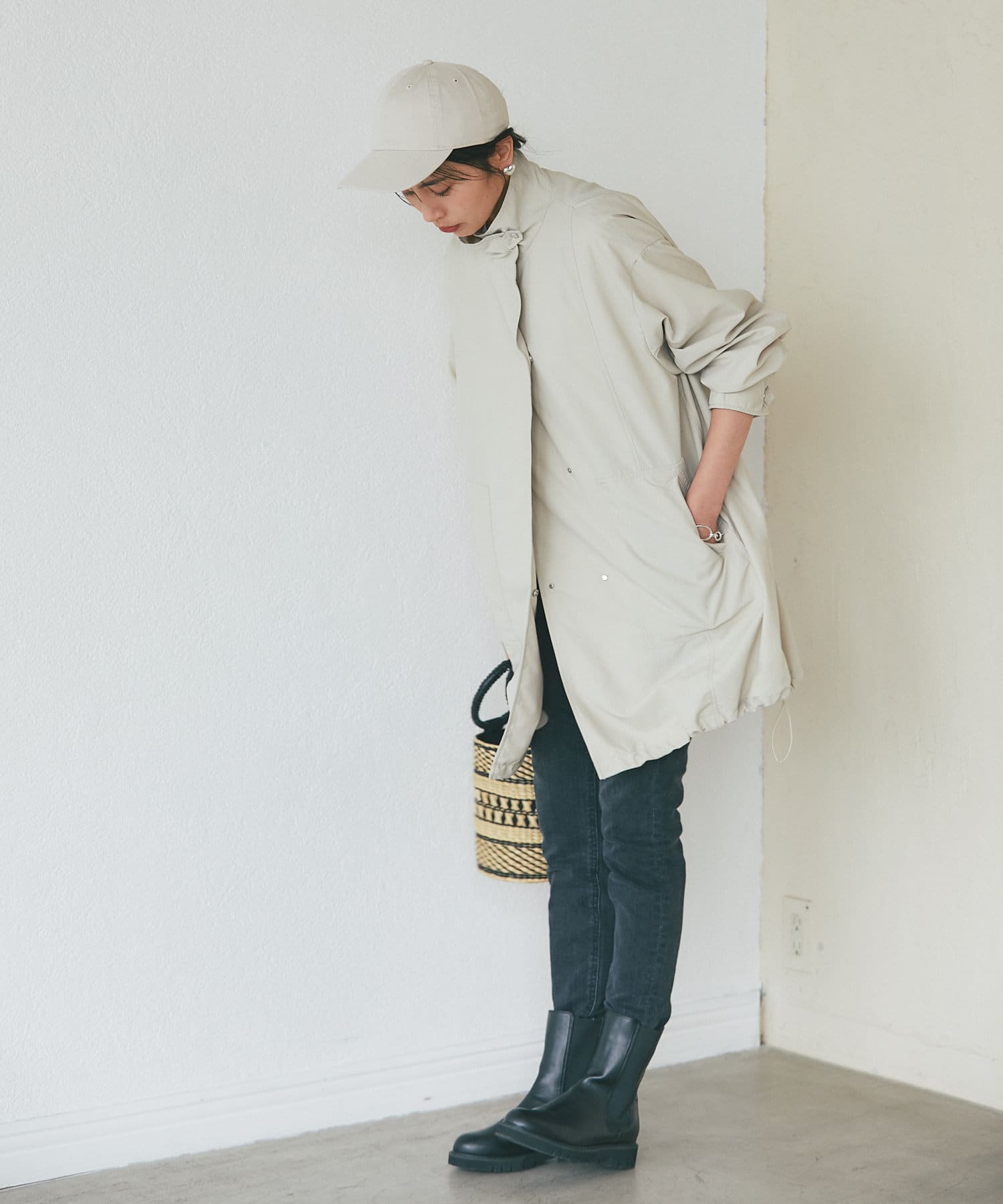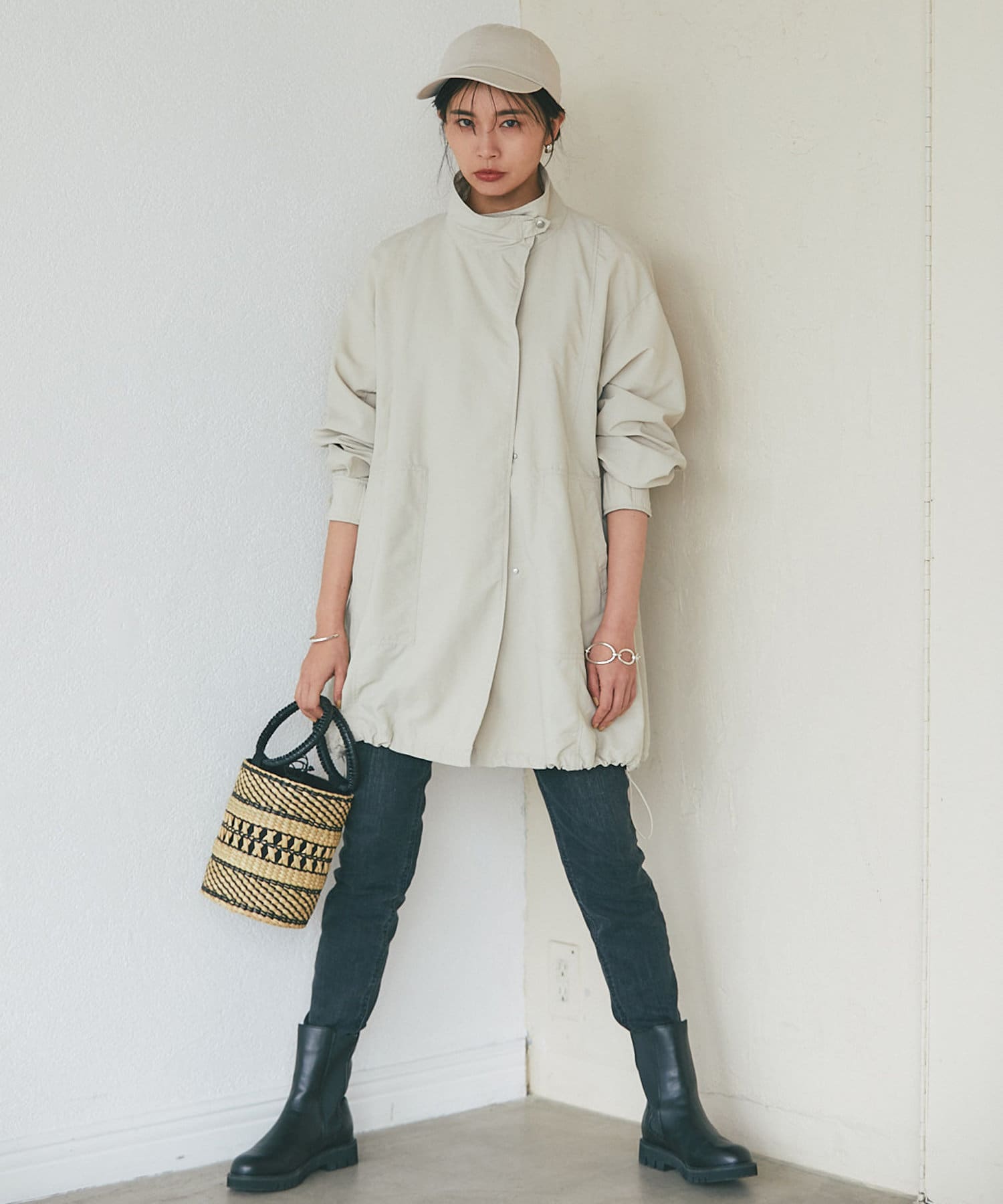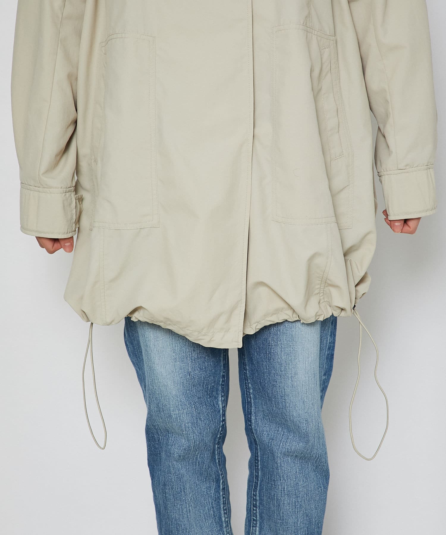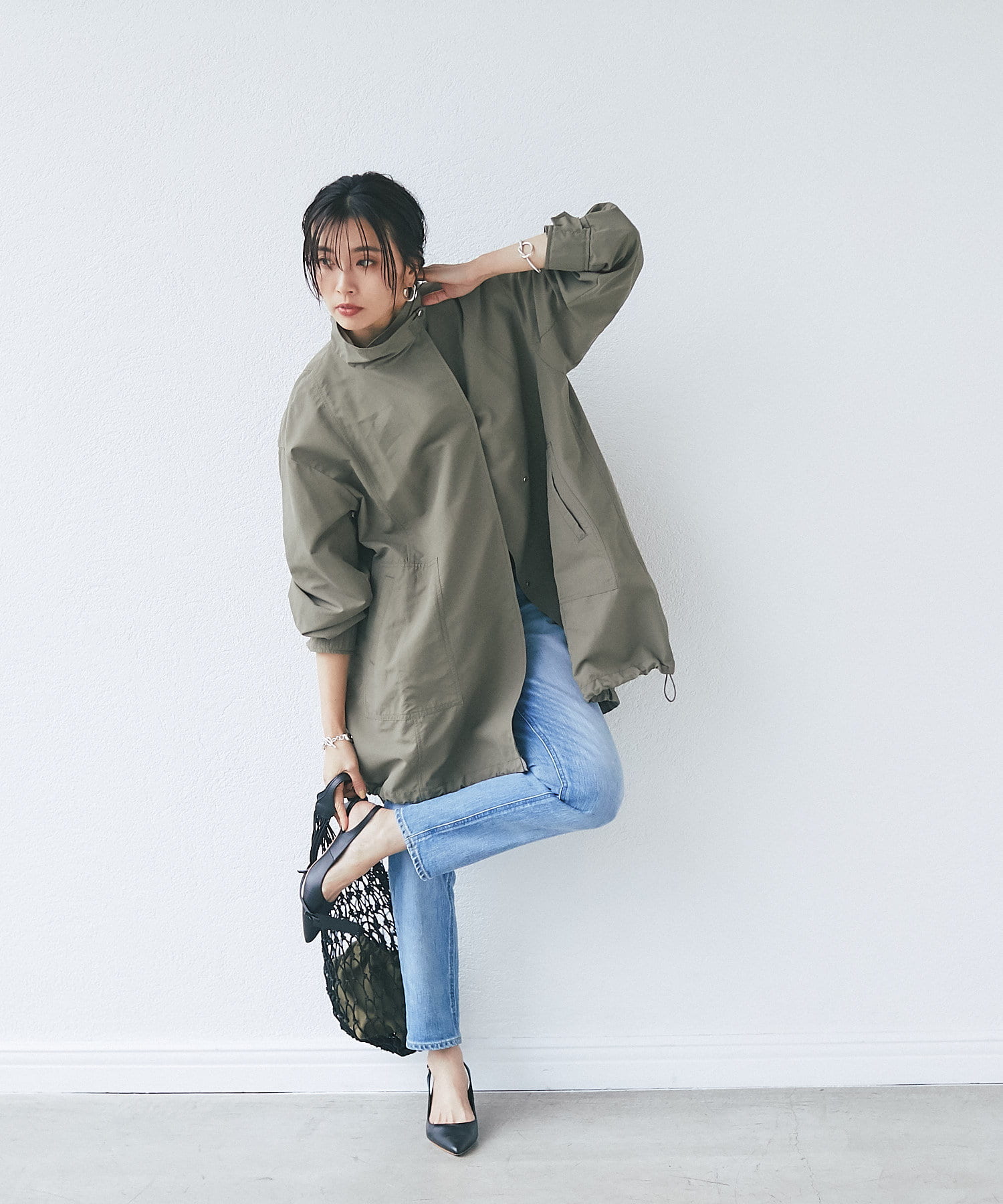 エアリーな着心地のカジュアルコート。裾のコードを絞り、丸みのあるフォルムにしても◎