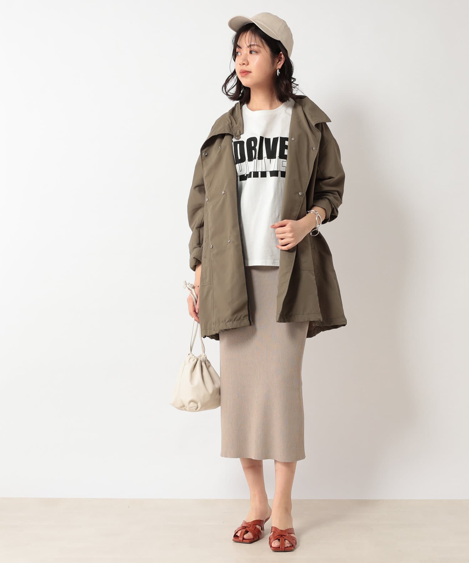 腰周りはしっかり隠れる着丈なので体型カバーもでき、とても軽いので持ち運びも楽々として頂けます。ロングスカート合わせもすっきりとした印象に。