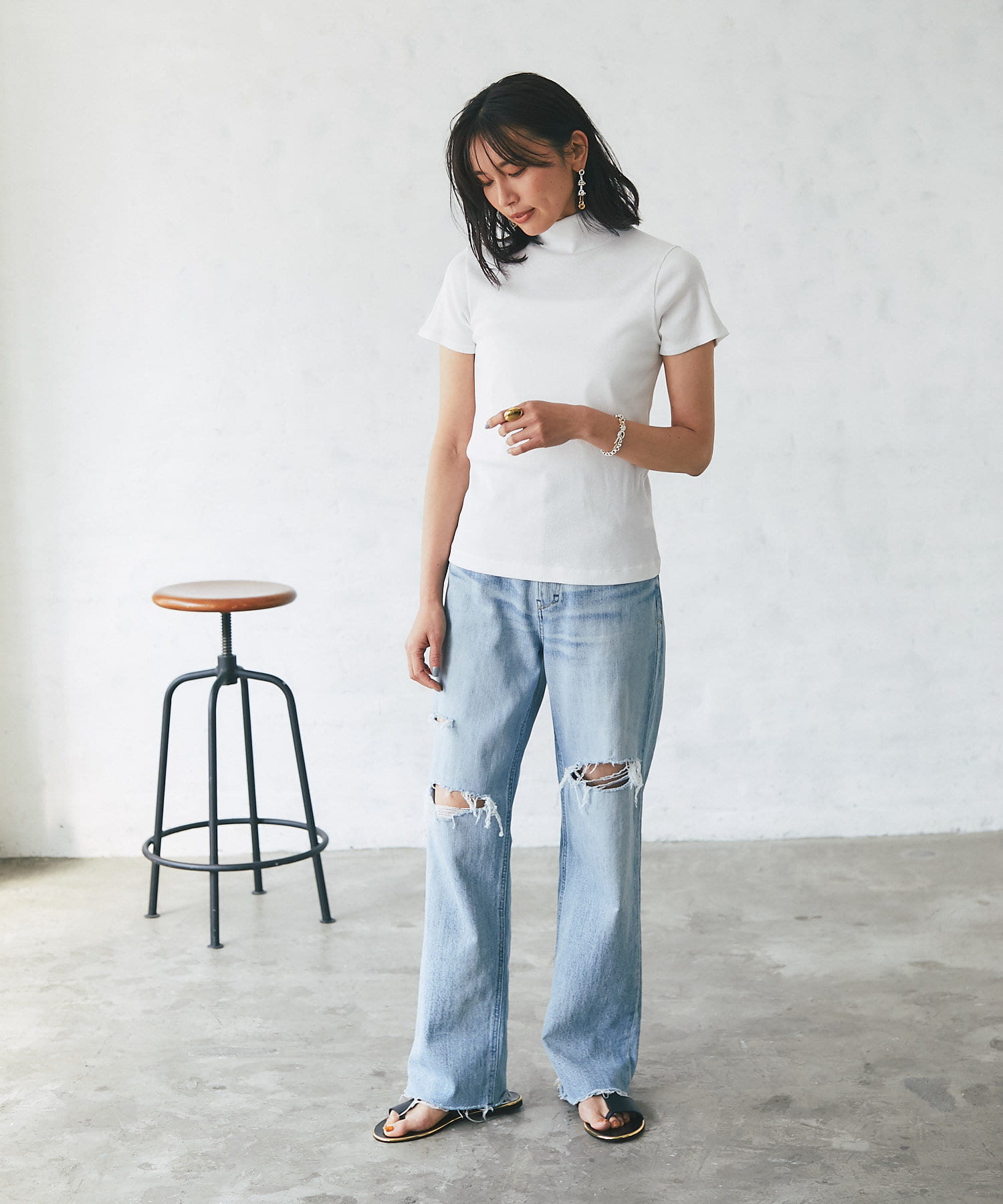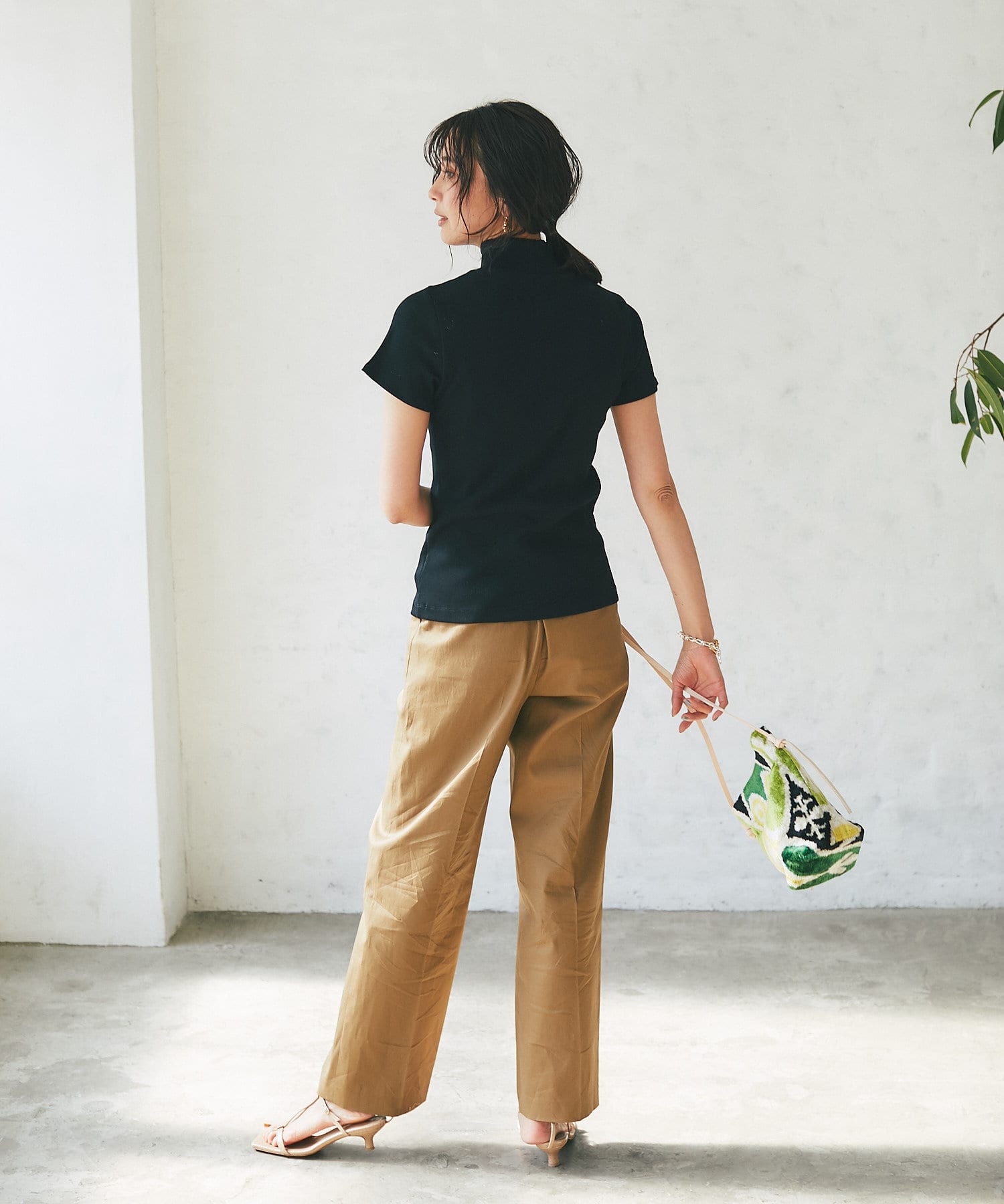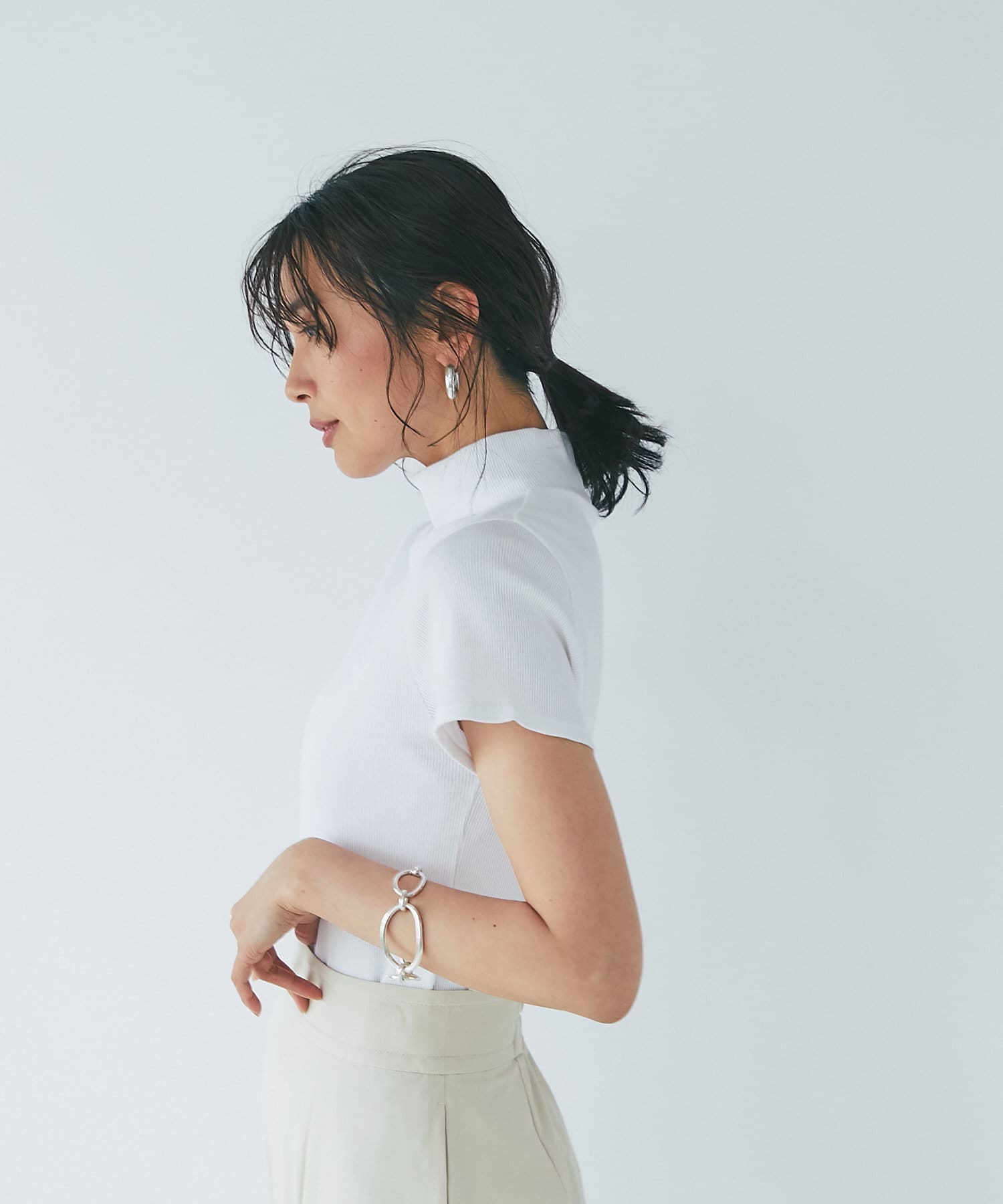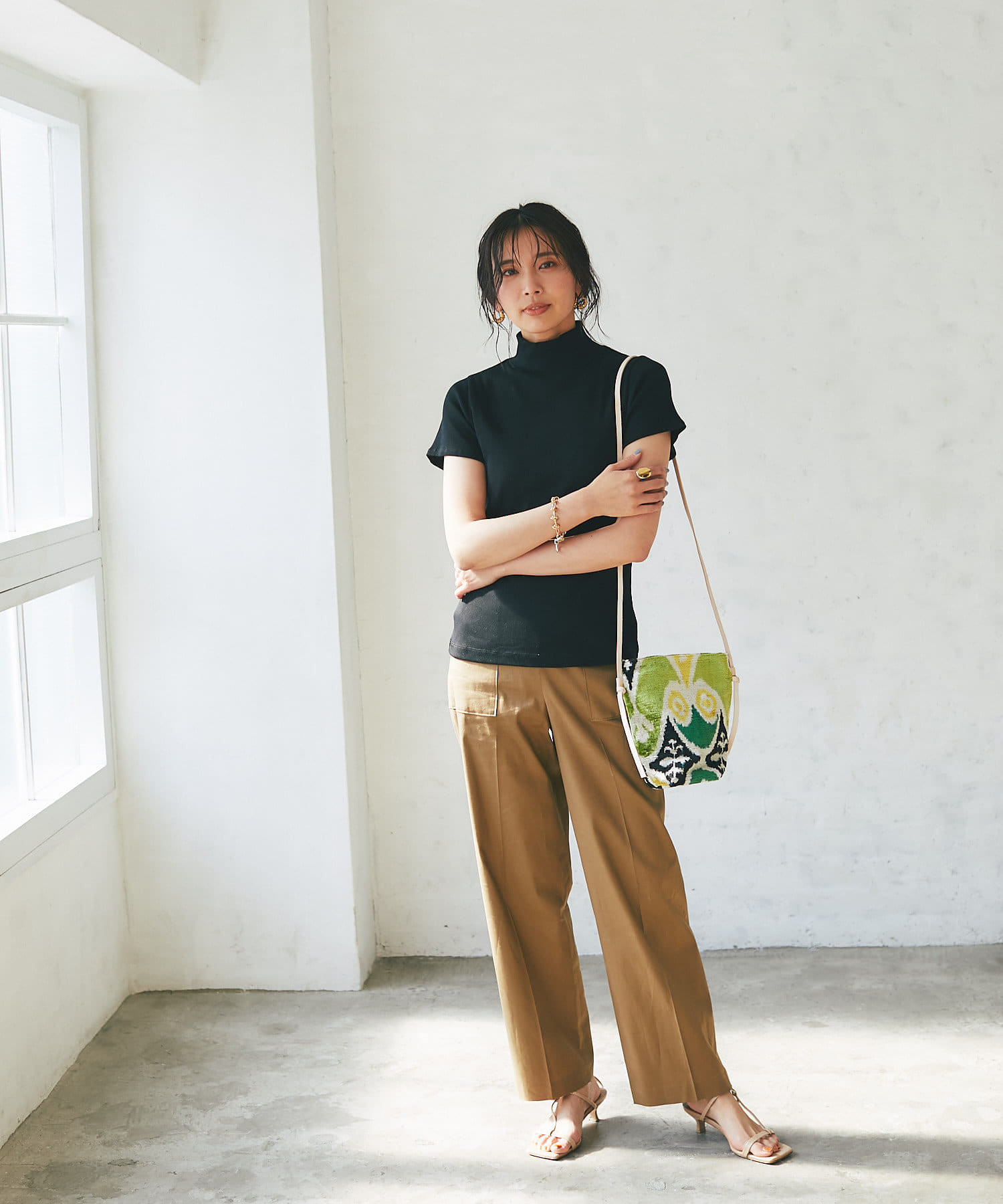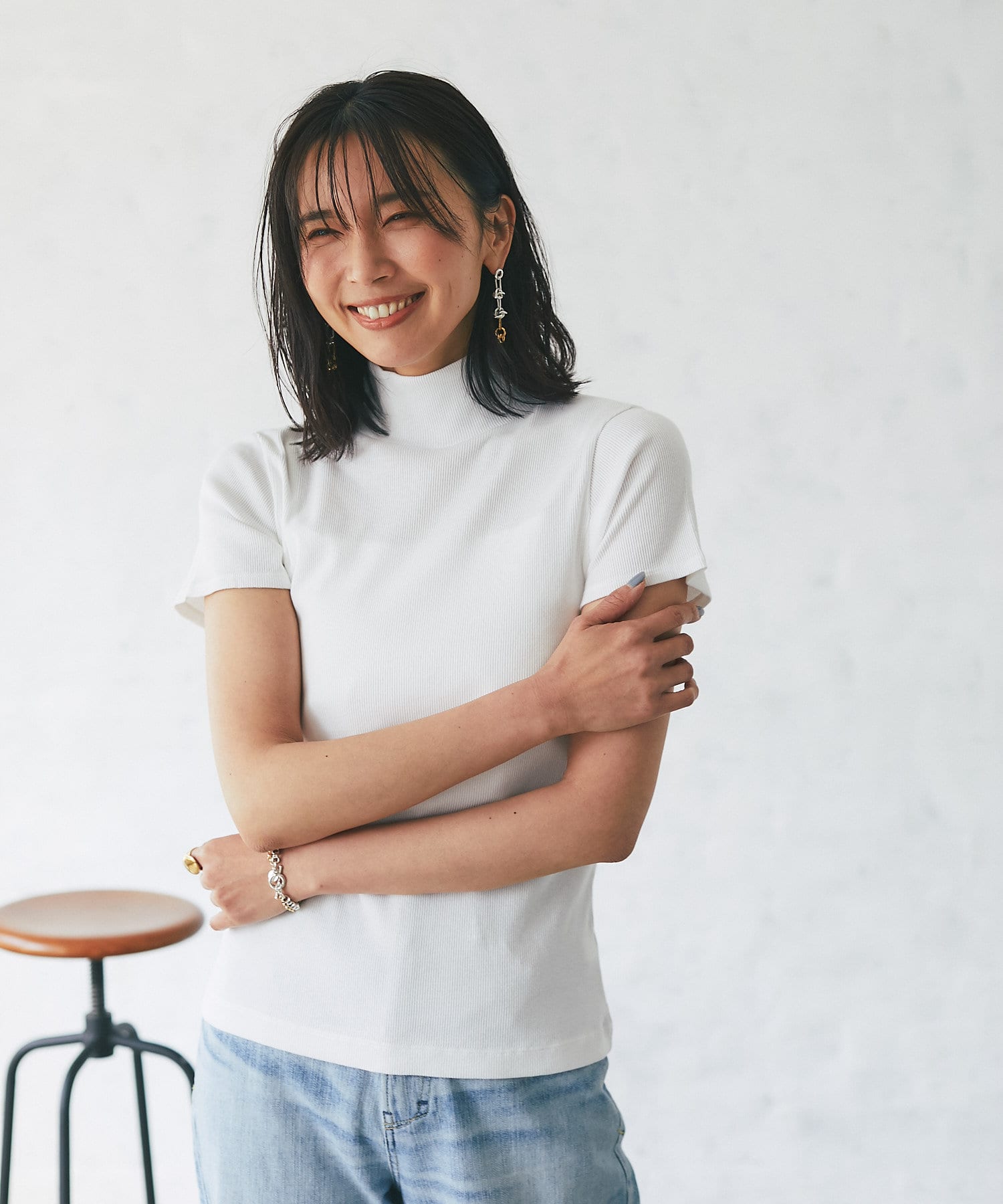 大人カジュアルにマッチするミニマルなハイネックトップス