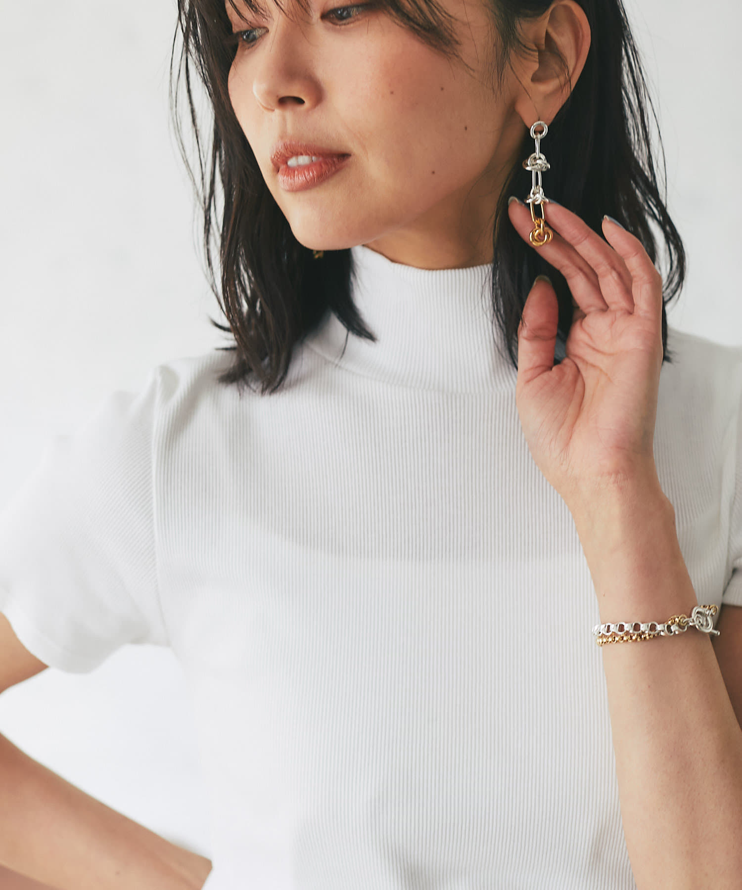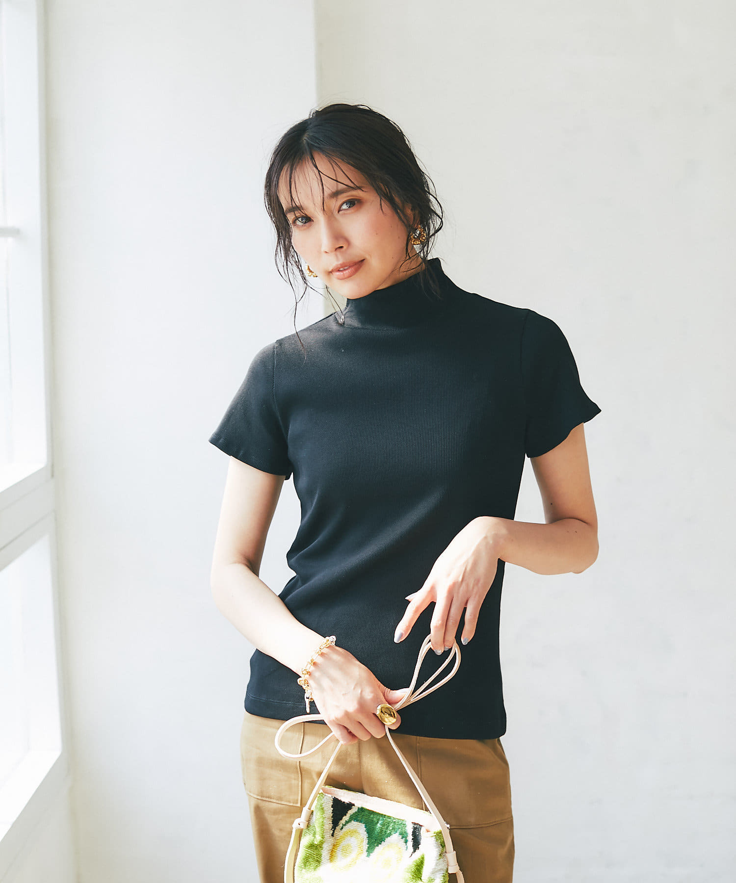 【大人カジュアルにマッチ】テレコハイネックカットソー