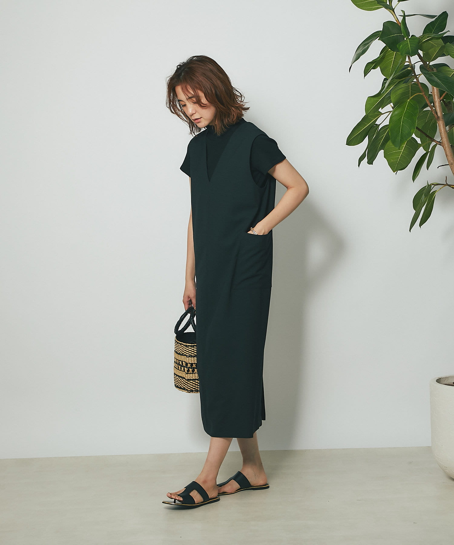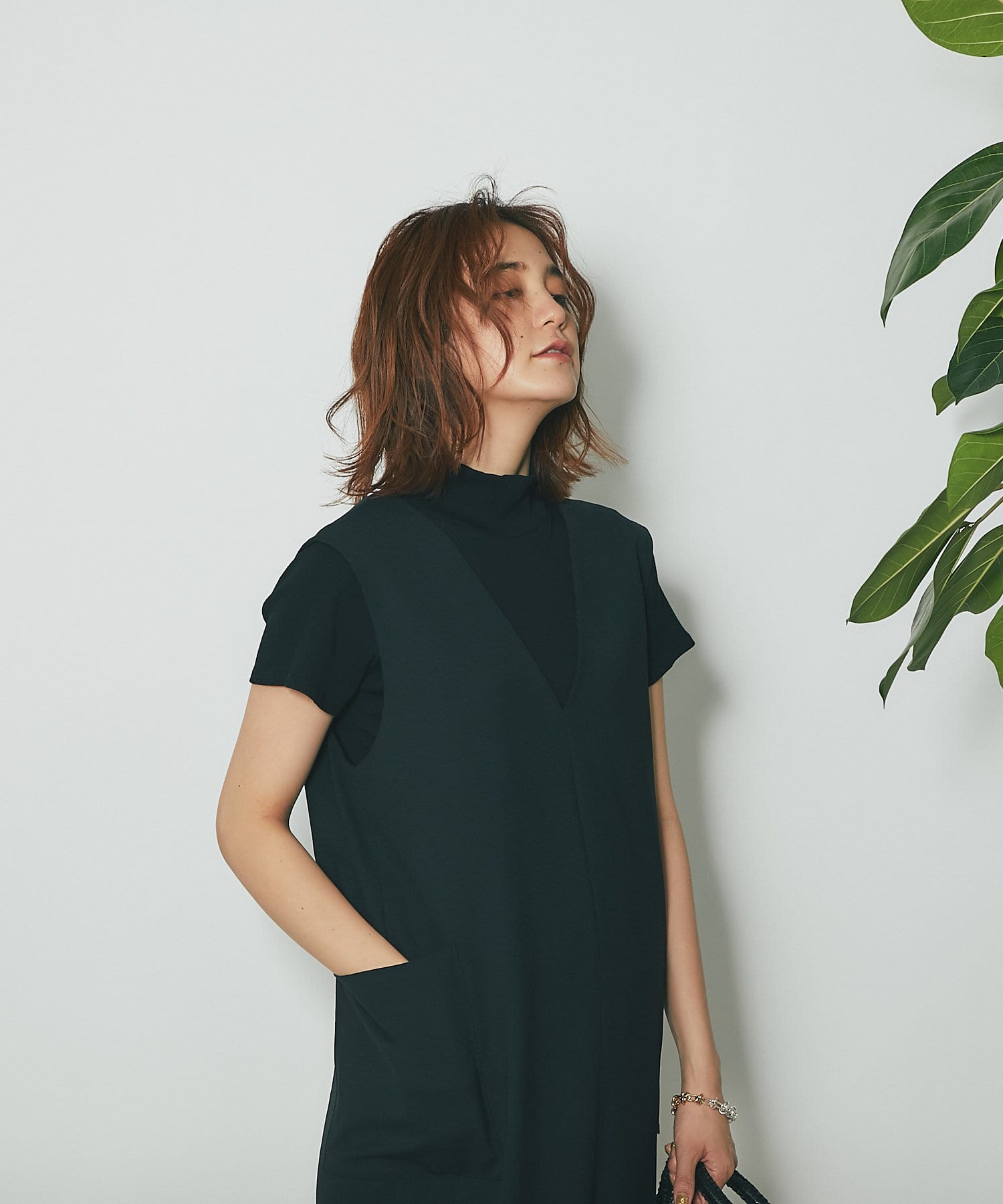 モード感のあるミニマムなデザインとテレコ素材独特の女性らしさが魅力です。
