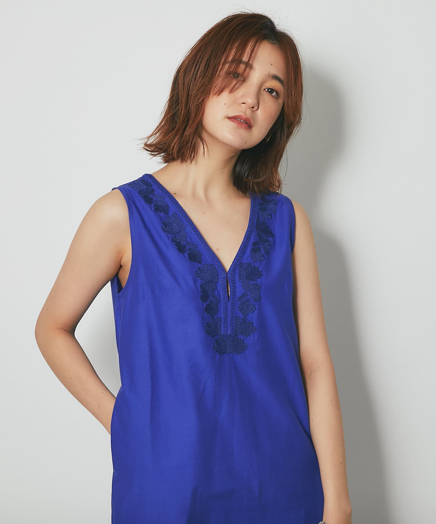 《2サイズ展開》繊細な刺繍と首元の程良い抜け感が、女性らしさ引き立てる