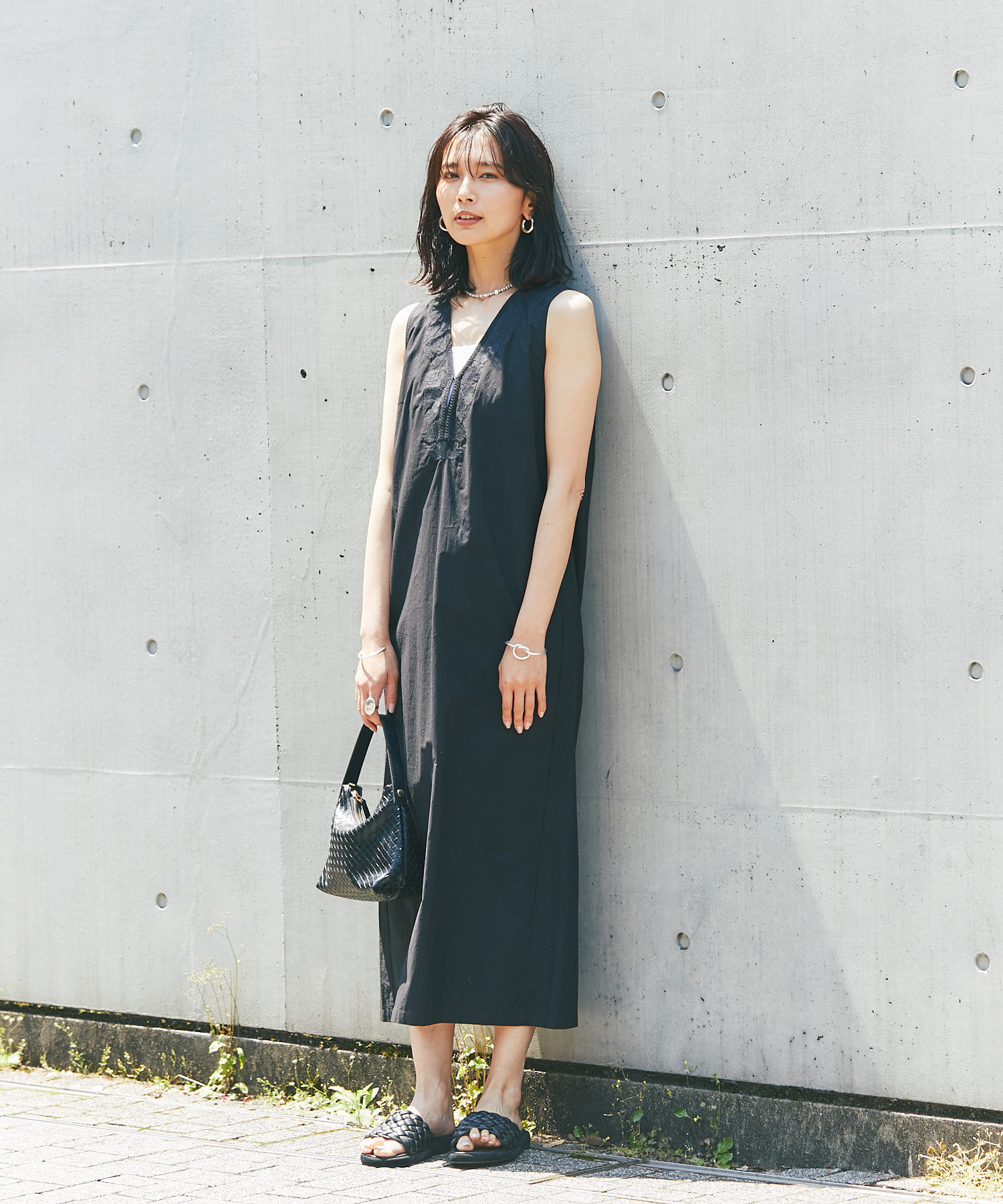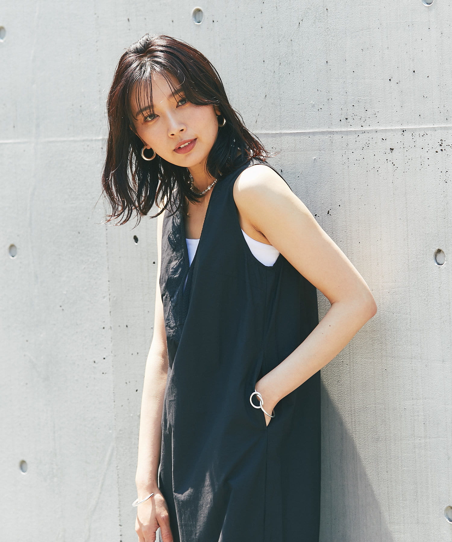 1枚でヘルシーに着こなすのも良いですが、ノースリーブなので