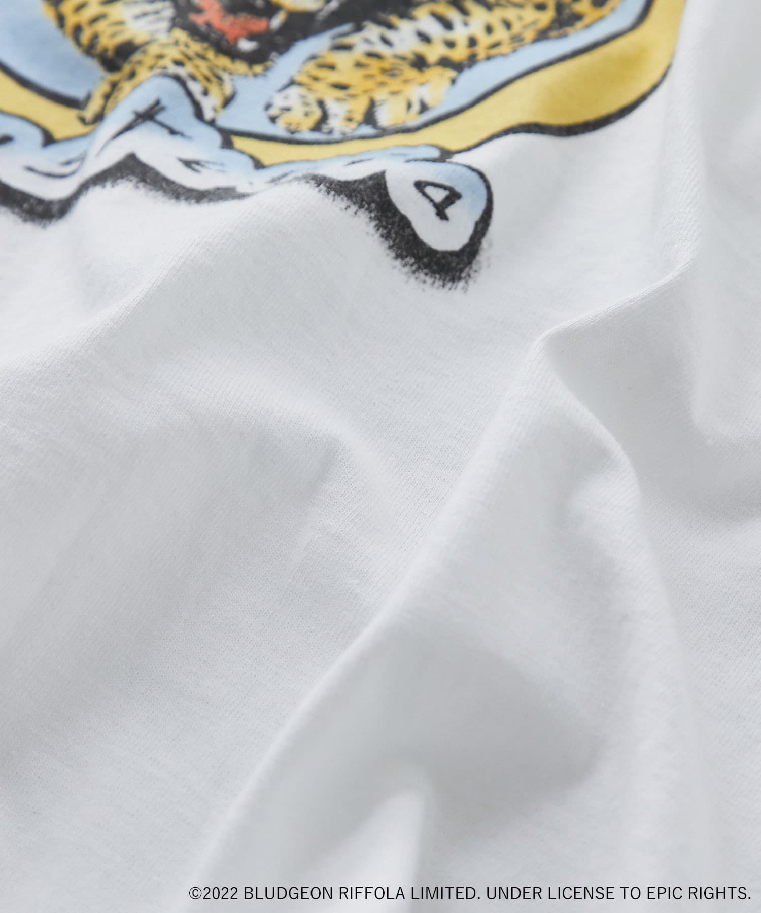 アイコニックなレオパードがインパクトのあるロックTeeで、