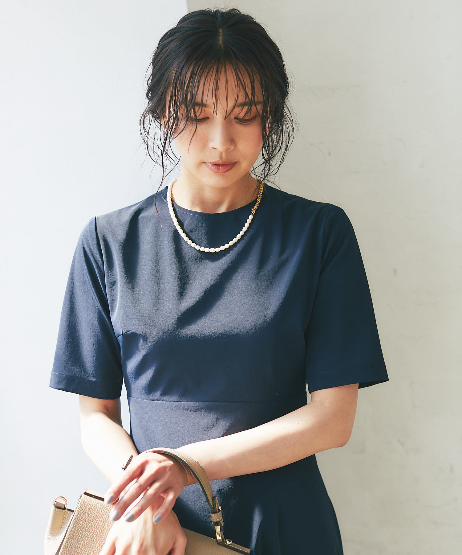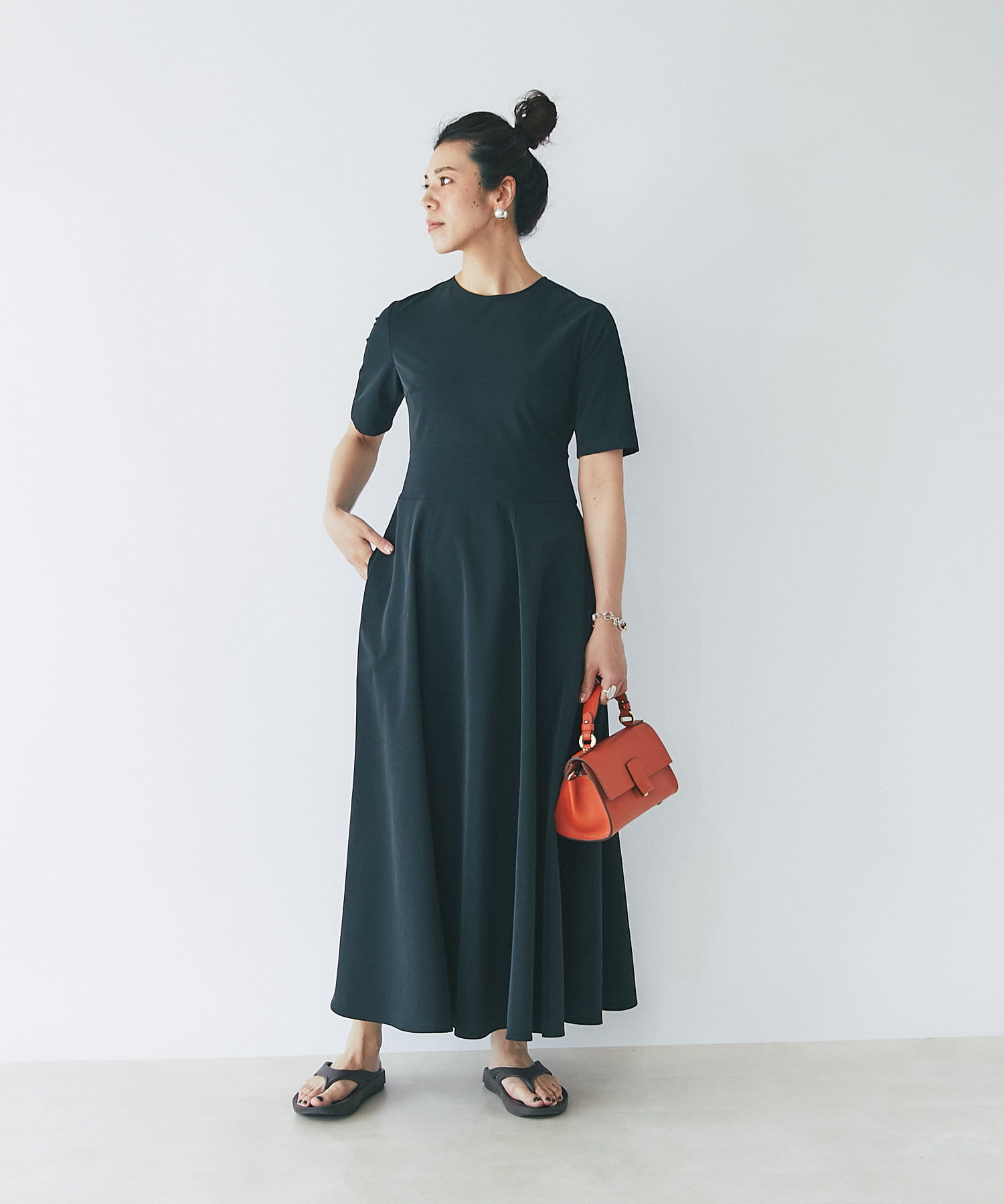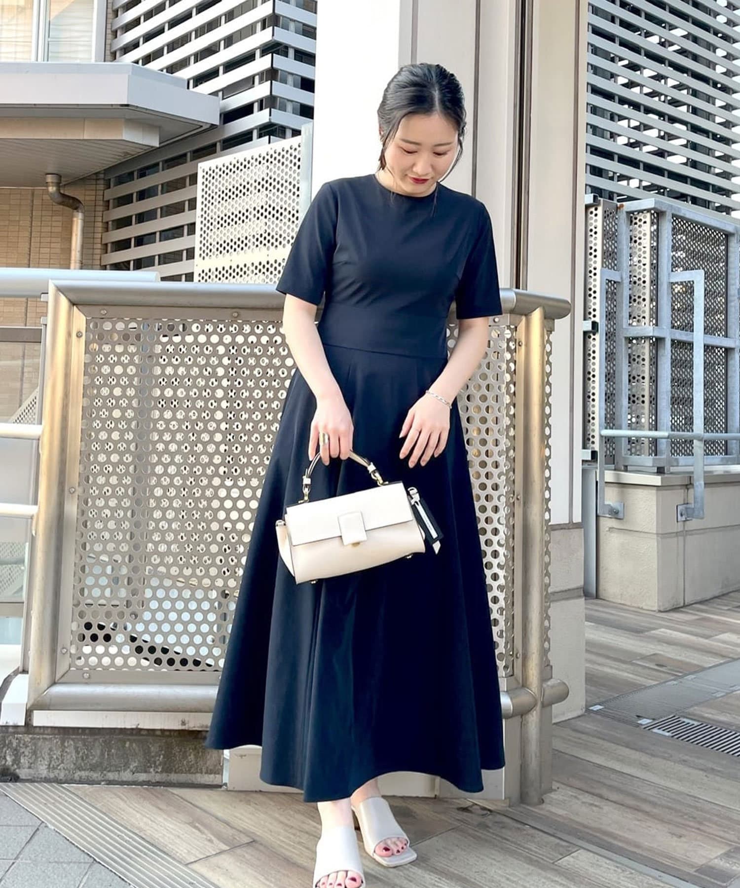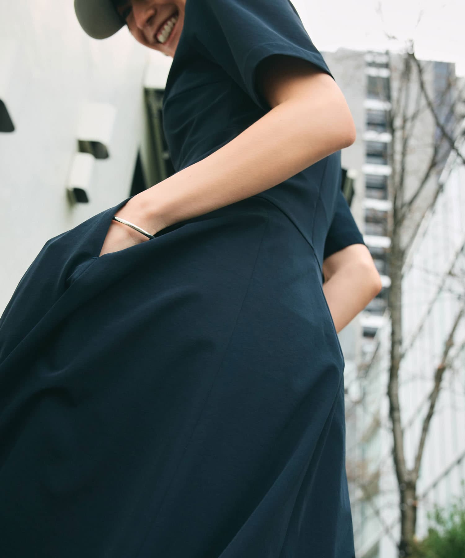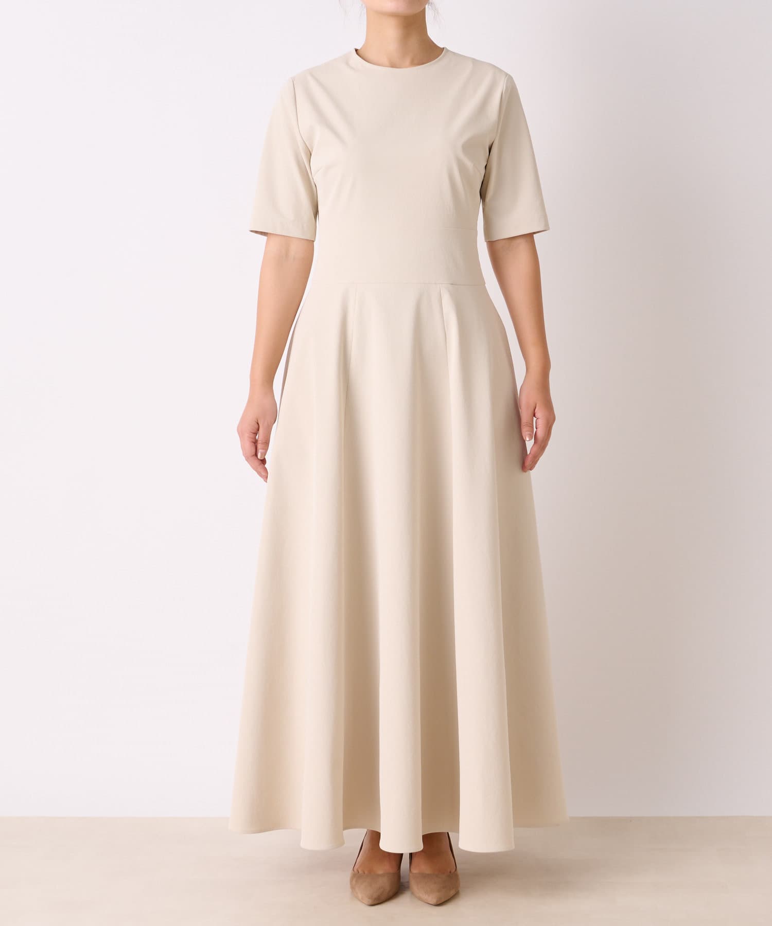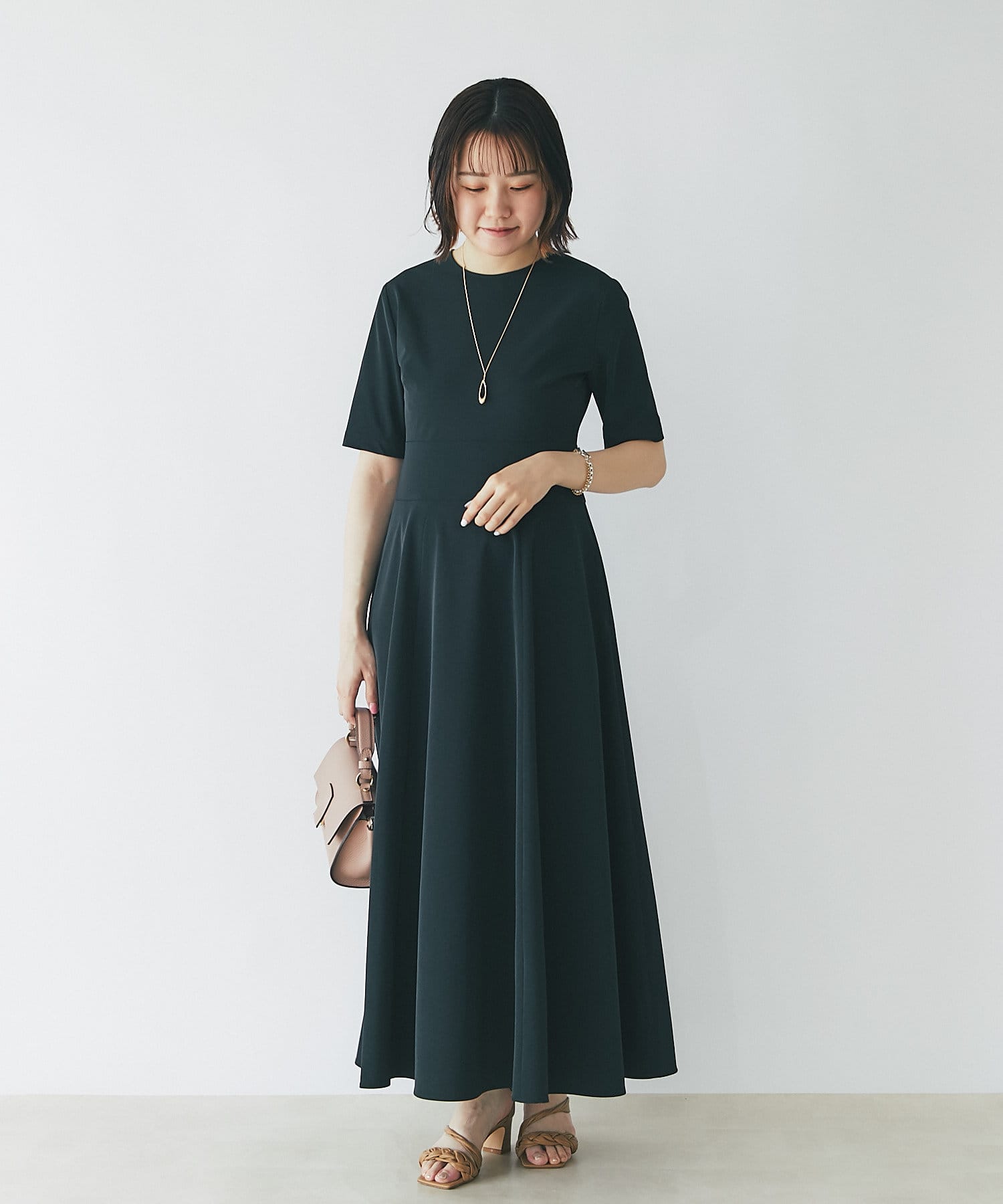 コンパクトで生地とフィット&フレアシルエットが最高にマッチしたワンピースは立体裁断のシルエットの美しさが際立つ1着。ウエストに切り替えをほどこし、上身頃の適度なフィット感から裾に向けて広がるシルエットはエレガントな印象で長めの袖丈も品の良さをを引き立てます。