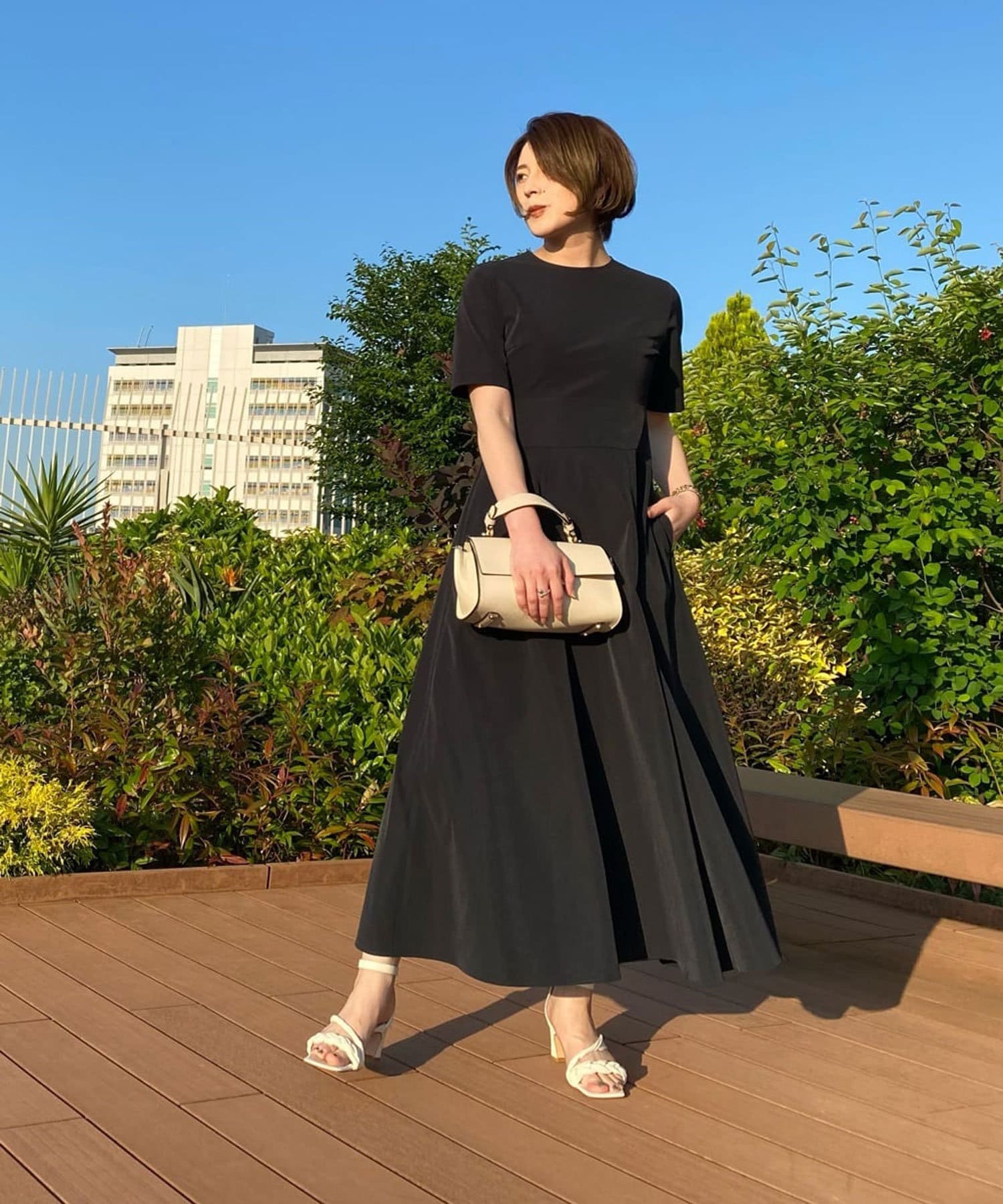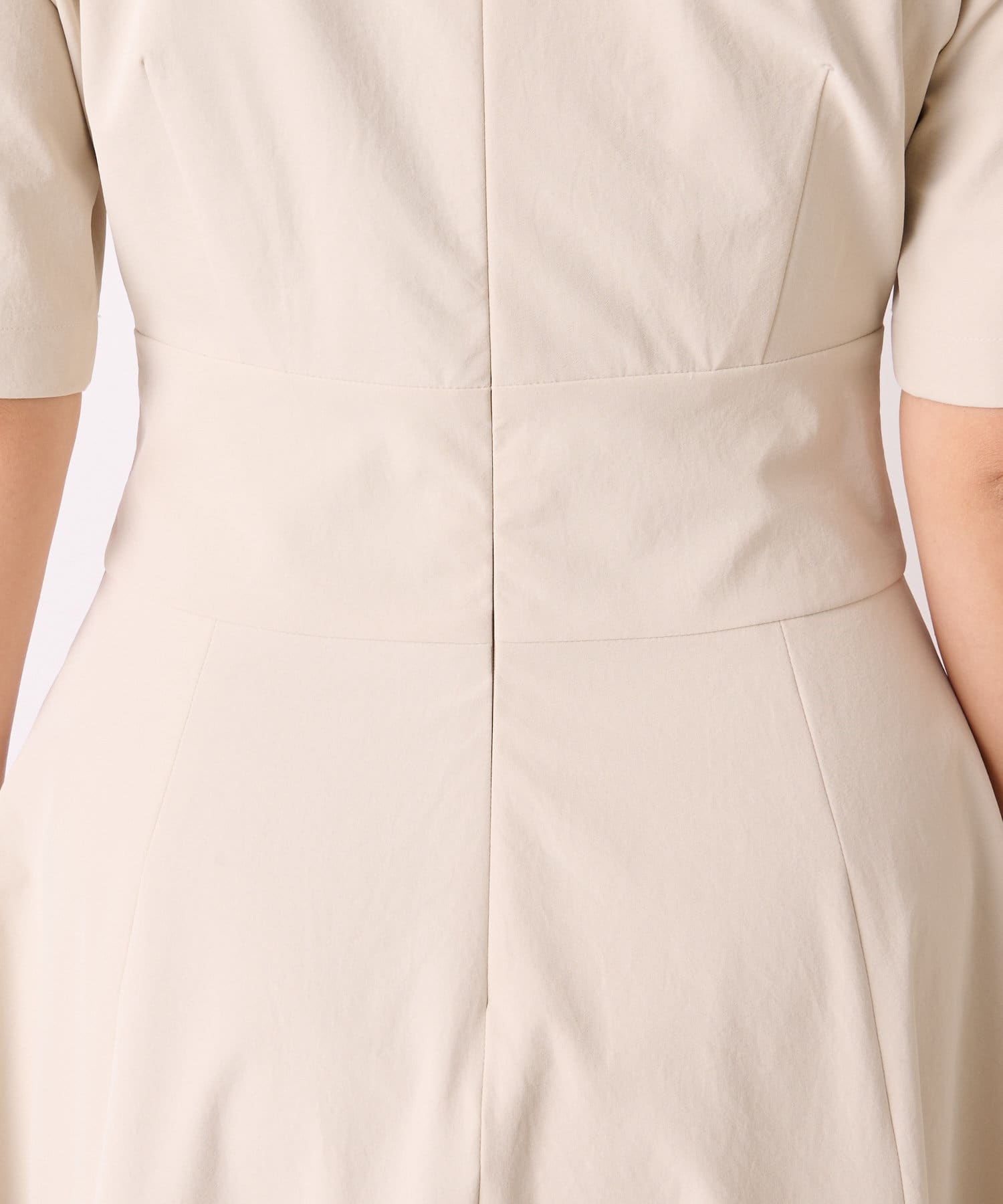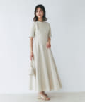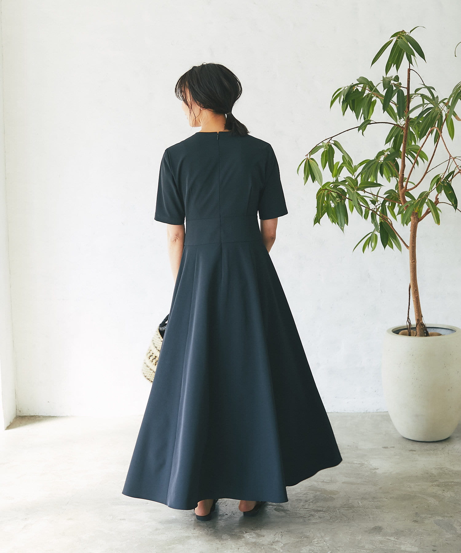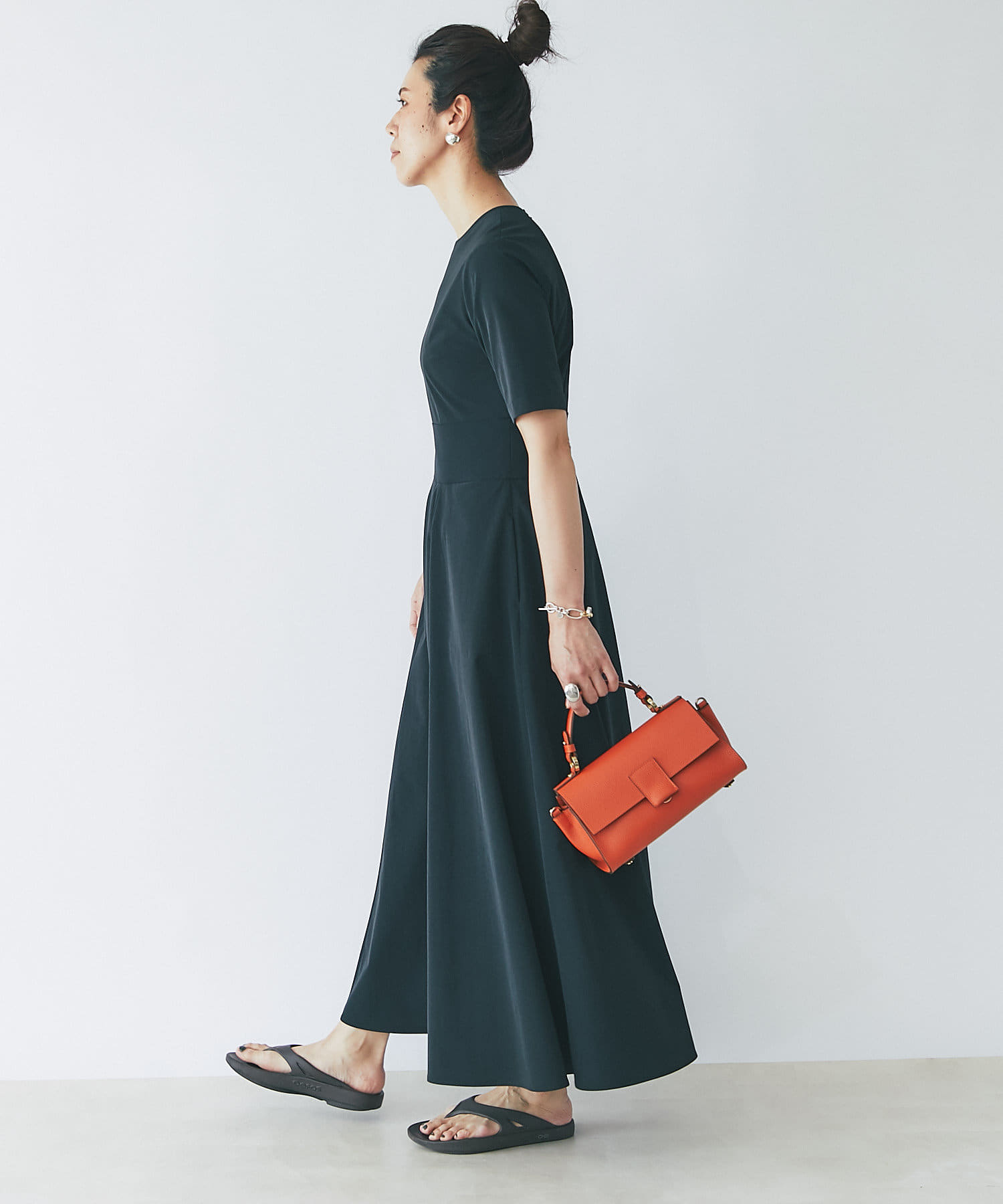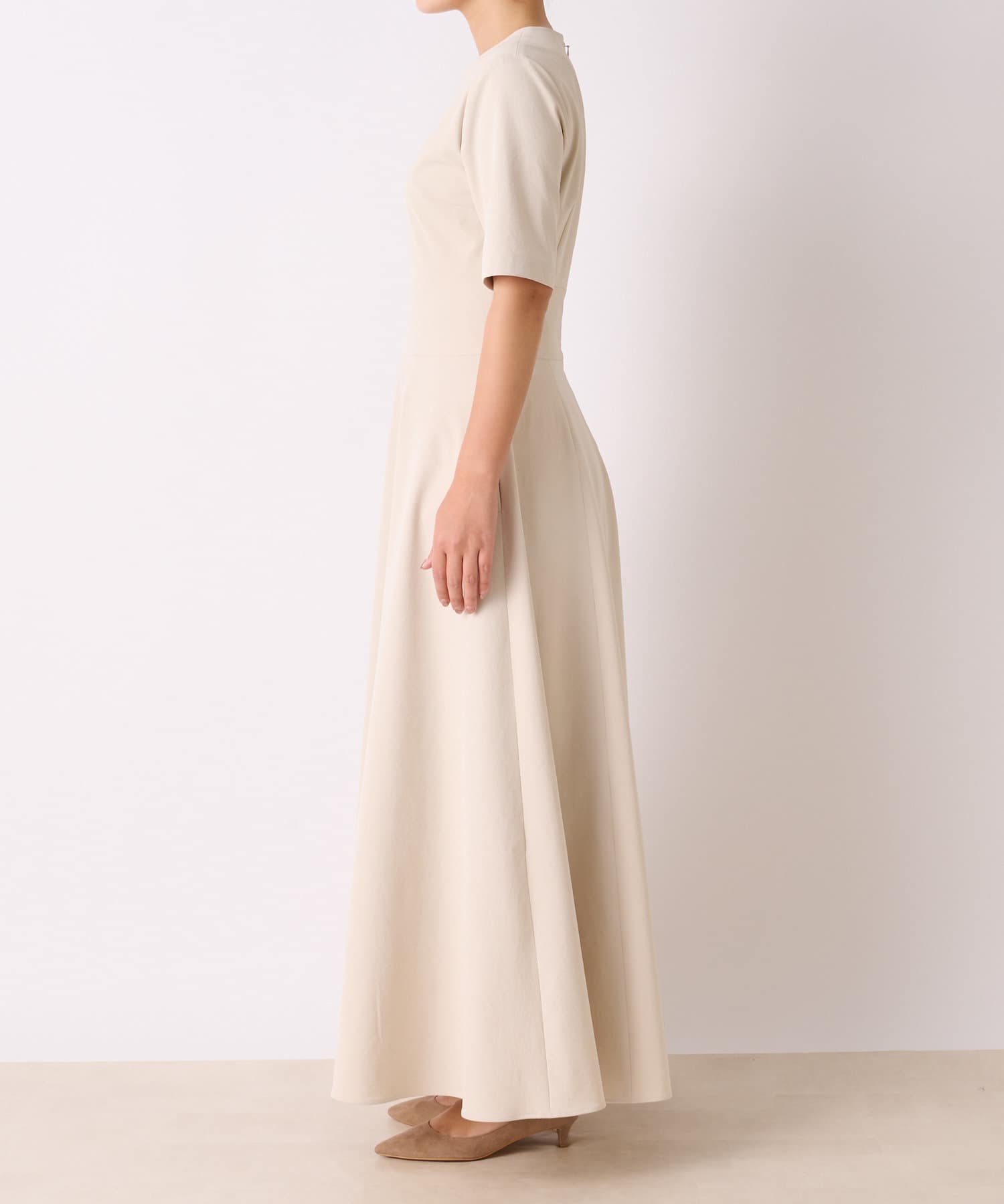 コンパクトで生地とフィット&フレアシルエットが最高にマッチしたワンピースは立体裁断のシルエットの美しさが際立つ1着。ウエストに切り替えをほどこし、上身頃の適度なフィット感から裾に向けて広がるシルエットはエレガントな印象で長めの袖丈も品の良さをを引き立てます。