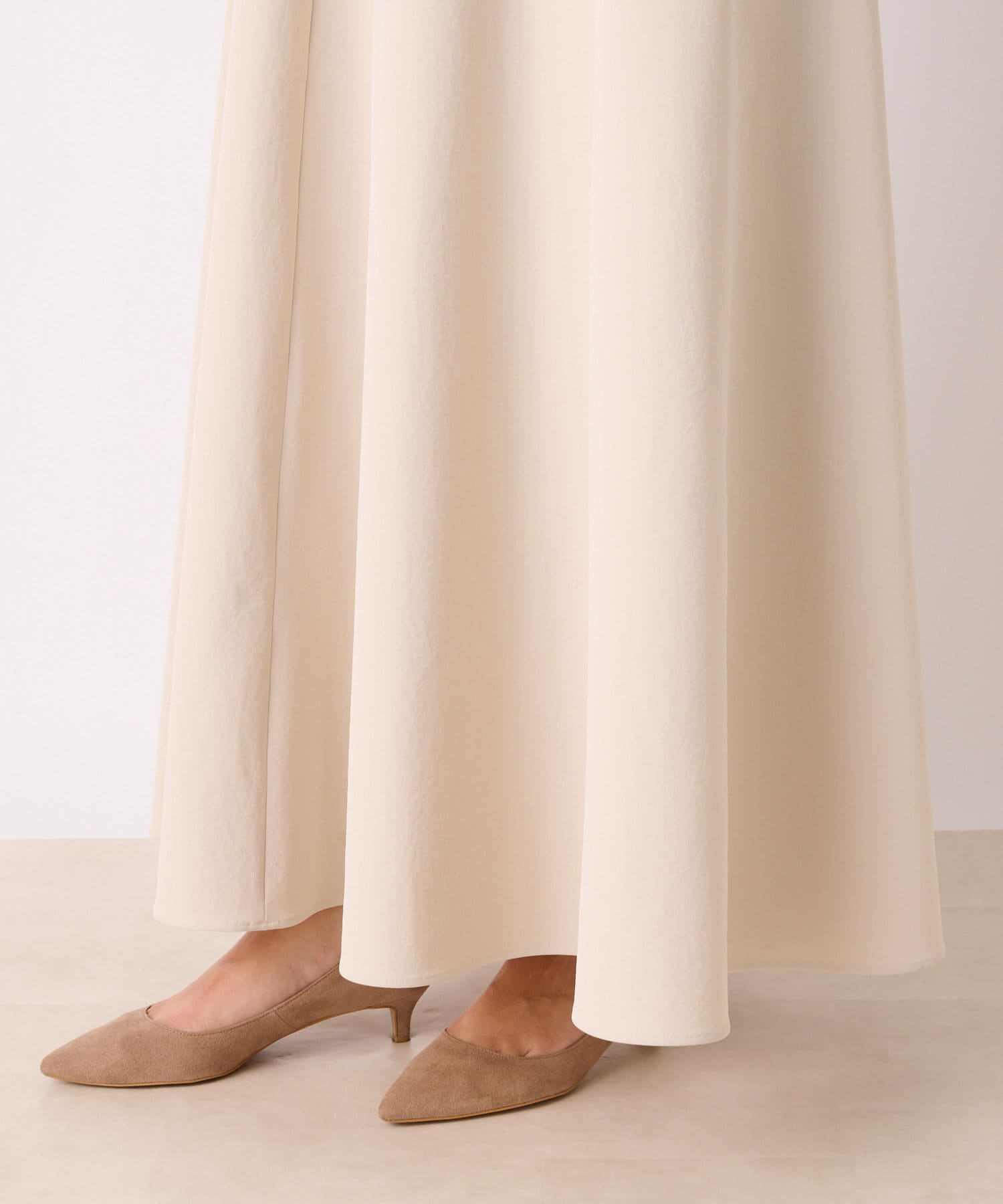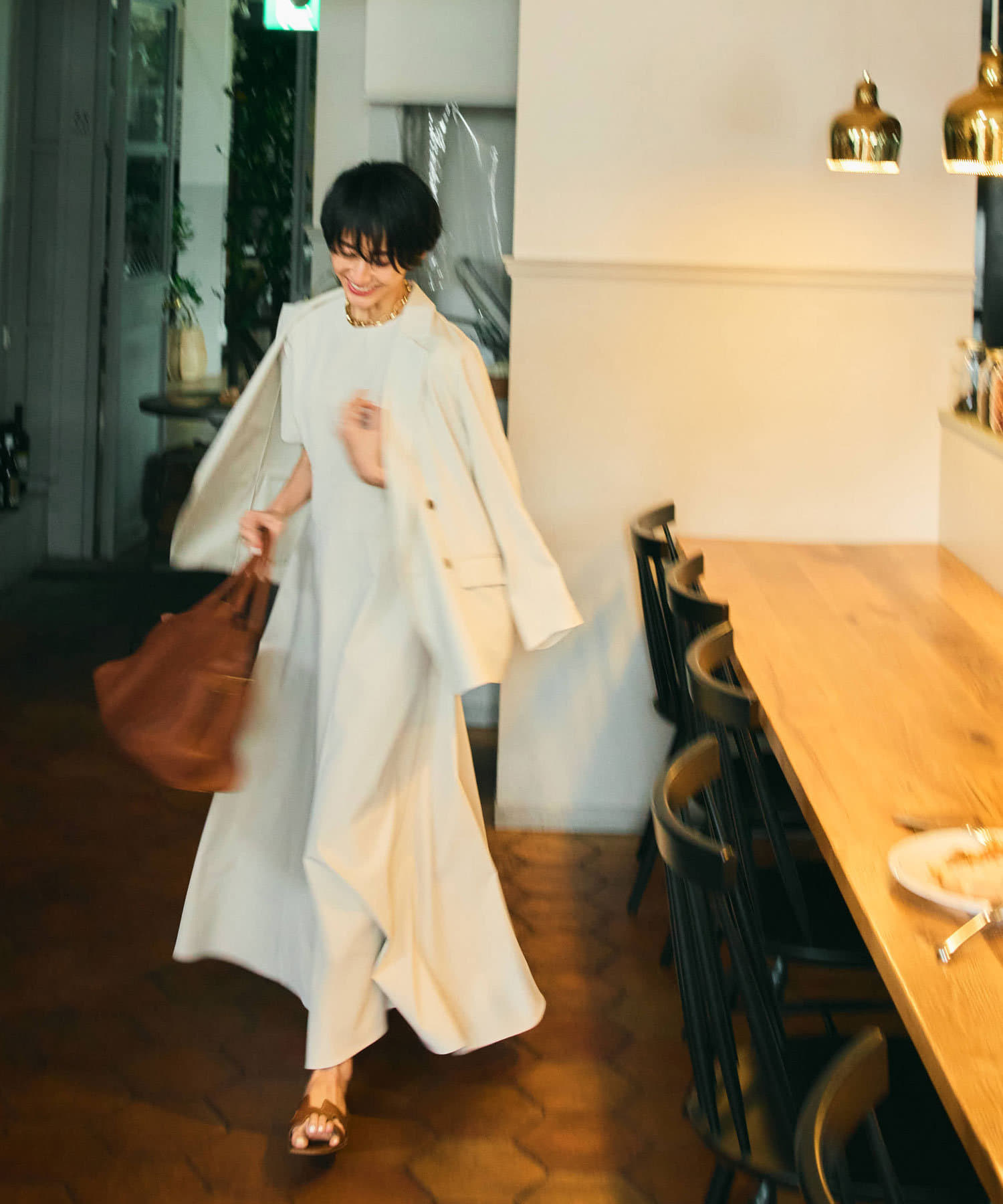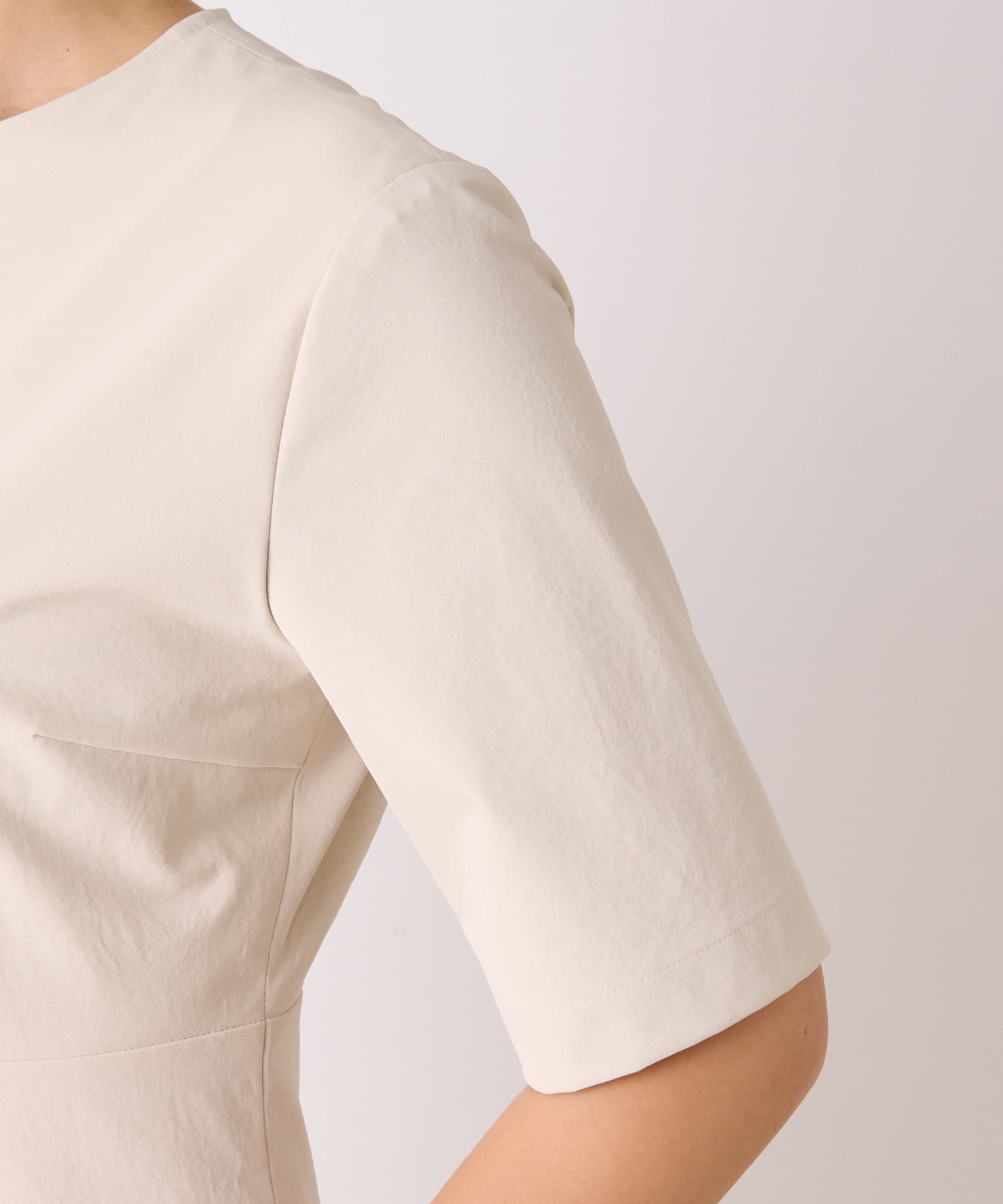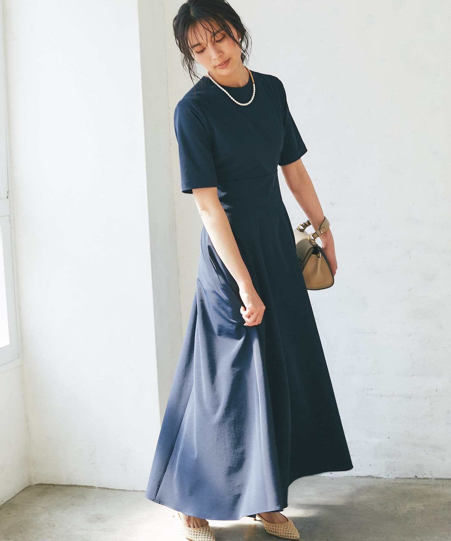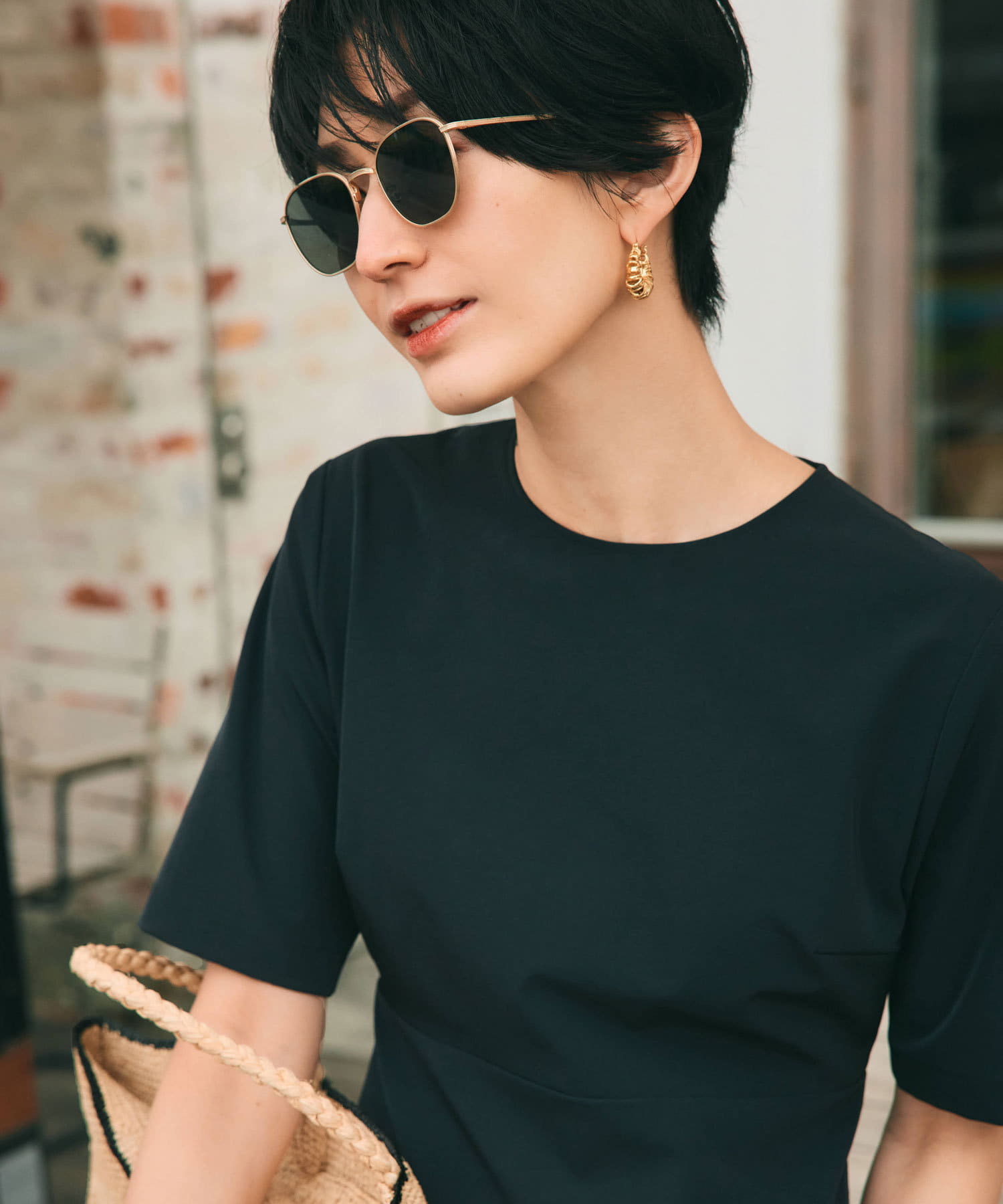 コンパクトで生地とフィット&フレアシルエットが最高にマッチしたワンピースは立体裁断のシルエットの美しさが際立つ1着。ウエストに切り替えをほどこし、上身頃の適度なフィット感から裾に向けて広がるシルエットはエレガントな印象で長めの袖丈も品の良さをを引き立てます。