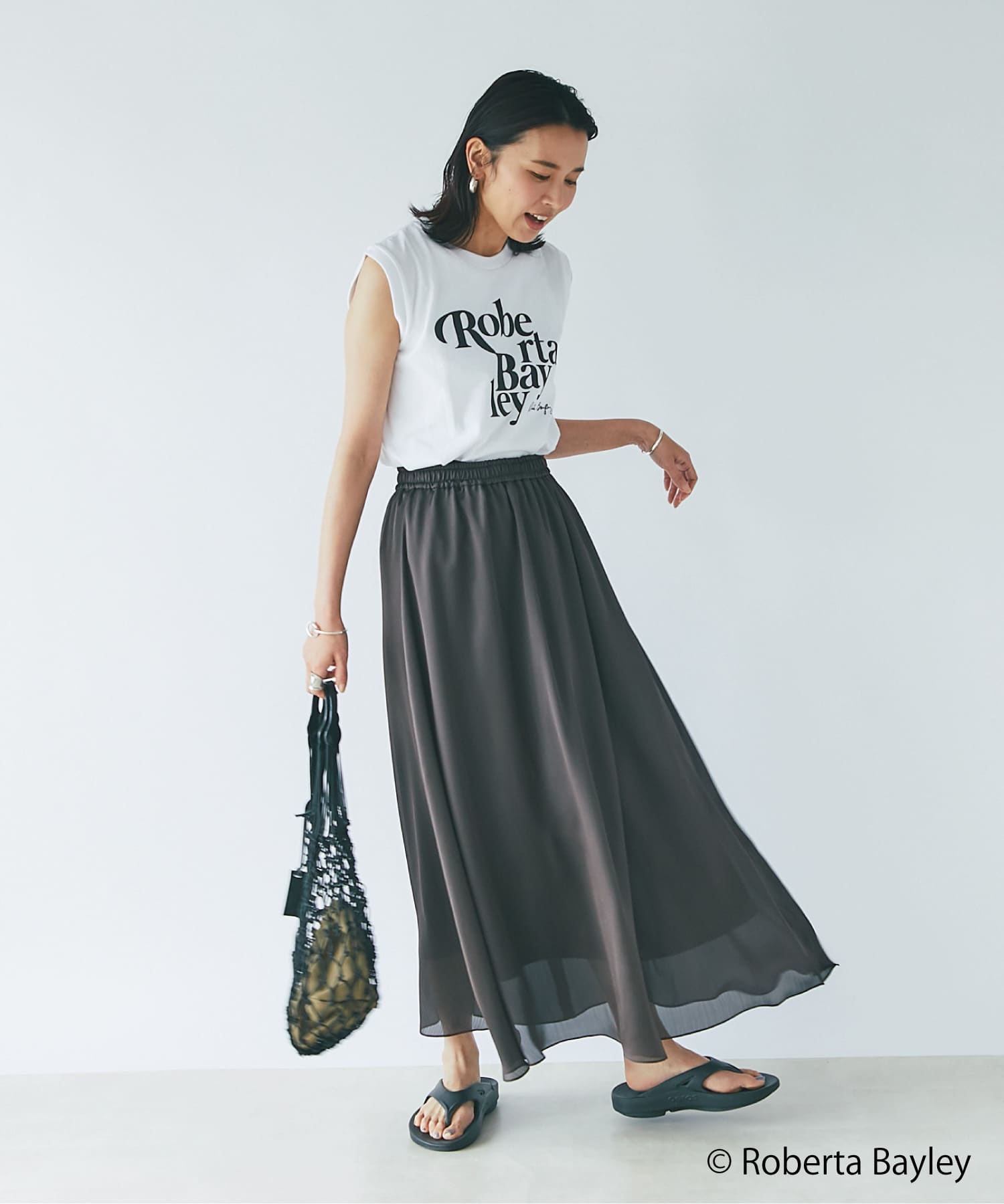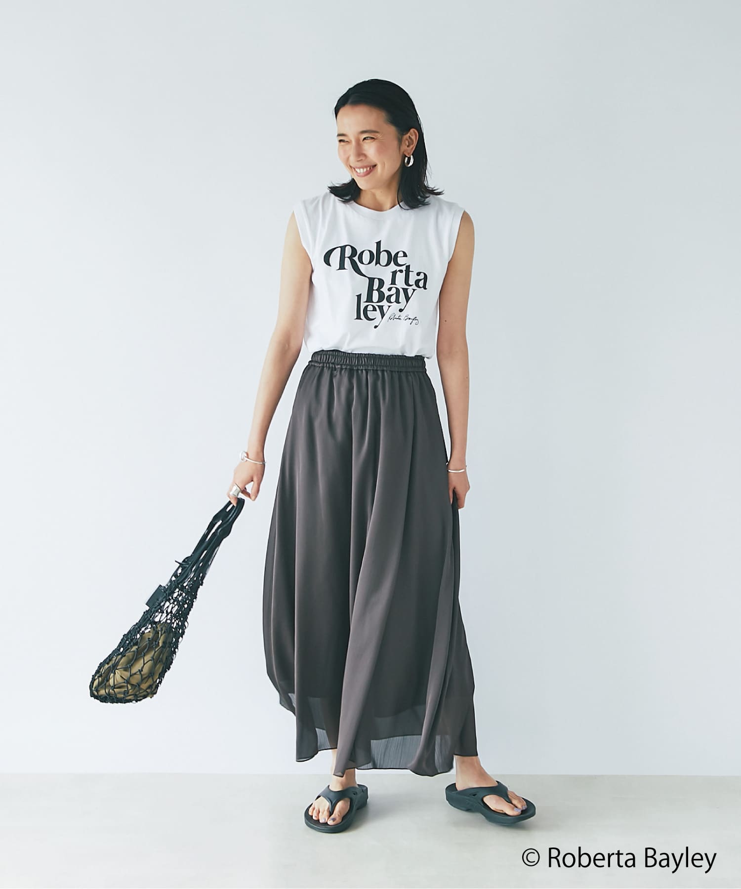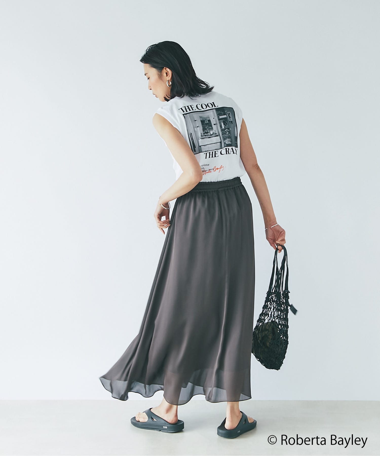 写真家「ロベルタ・ベイリー」のクールなフォトプリントが光る1枚は、この夏のマストアイテム