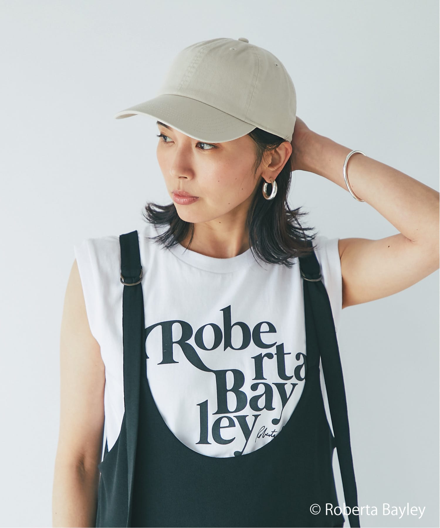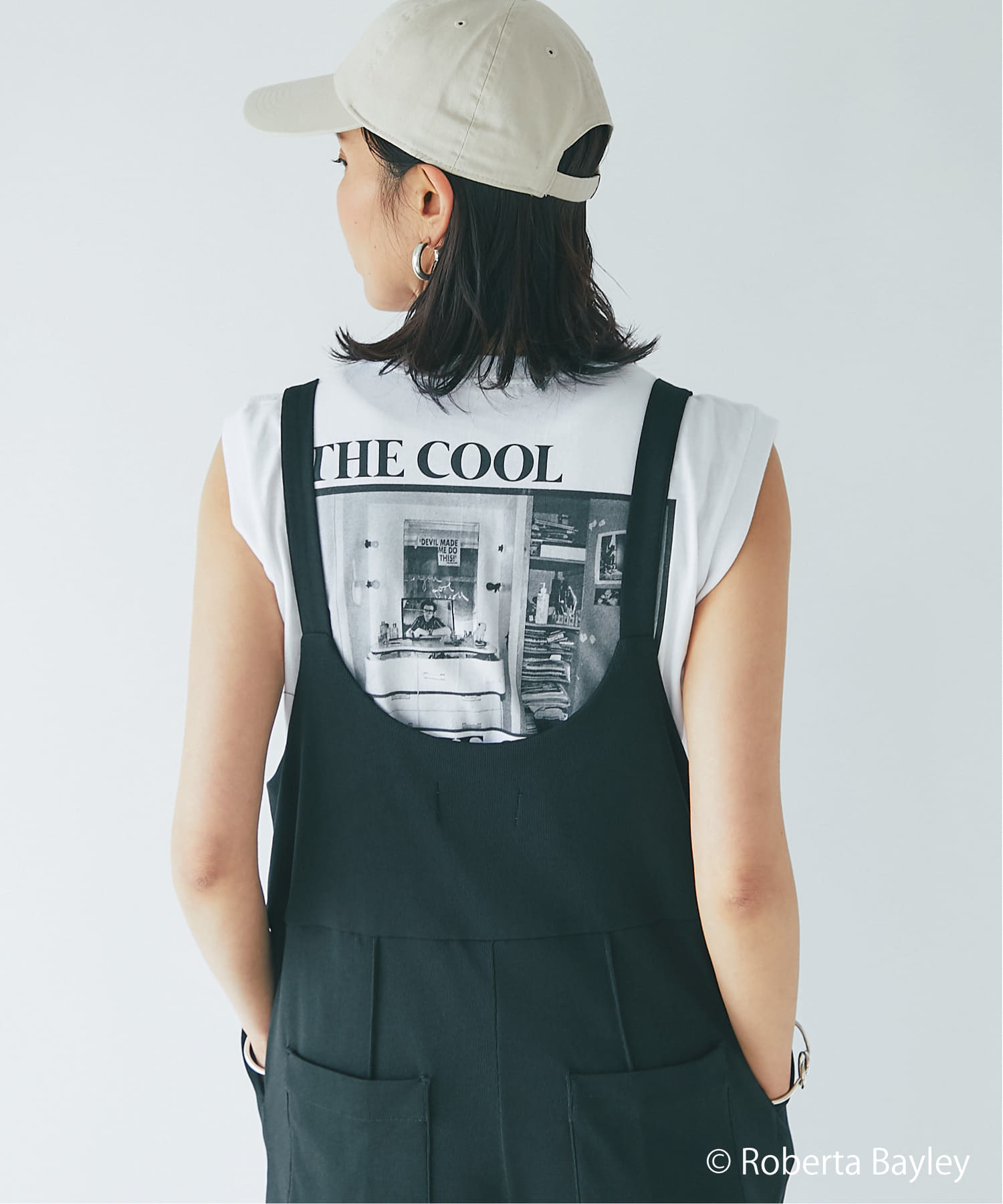 タイトすぎないシルエットと、透け感を気にせずに着られるほどよい厚みの生地が特徴のレディース・ノースリーブT。                                                                                                                                                                                                                            写真家「ロベルタ・ベイリー」のクールなフォトプリントが光る1枚は、この夏のマストアイテム。                                                                                                                      マシンウオッシュ可能です。